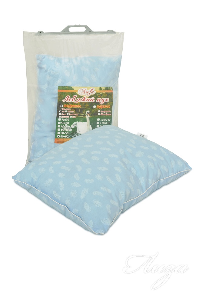 Подушка с наполнением из искусственного "Лебяжьего пуха". Гипоаллергенная, не требует специального ухода.