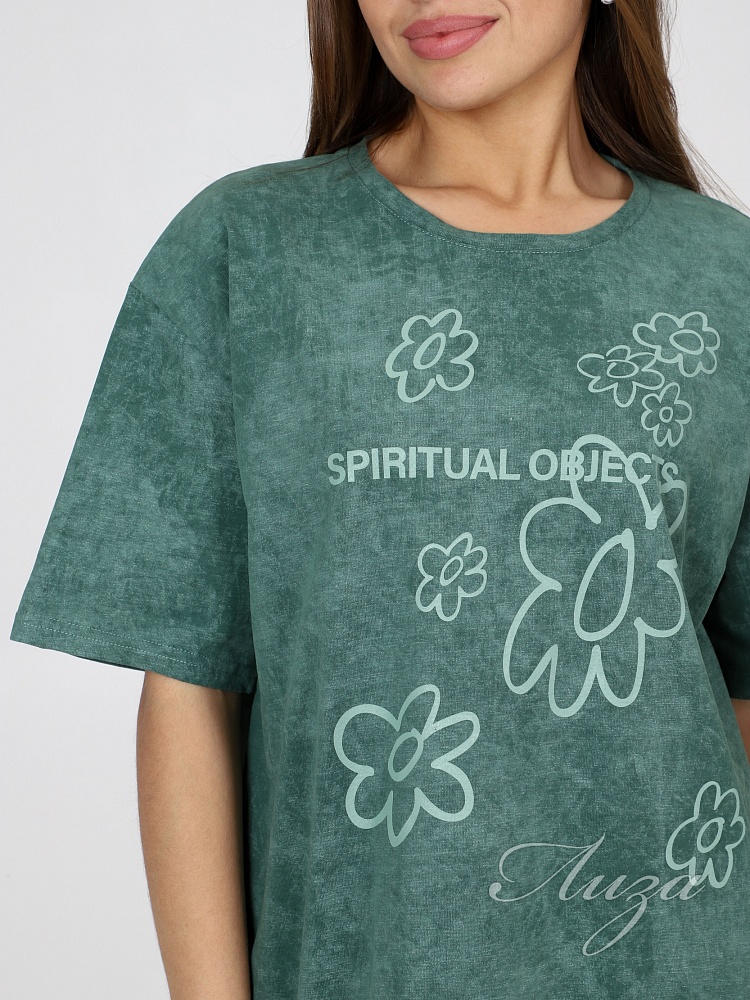 Футболка женская оверсайз выполнена из качественного 100% хлопка. Хлопковая ткань является легким, дышащим материалом, который приятен на ощупь, не вызывает раздражения и аллергии.