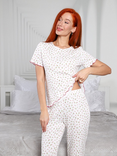 Пижама ажурная Рибана Аленький цветочек футболка + брюки (М-1031)