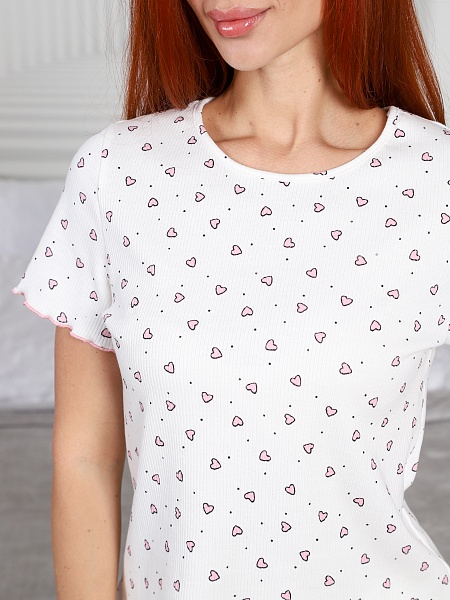 Пижама Трикотаж Рубчик Розовые сердечки (М-1032)