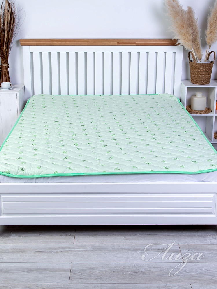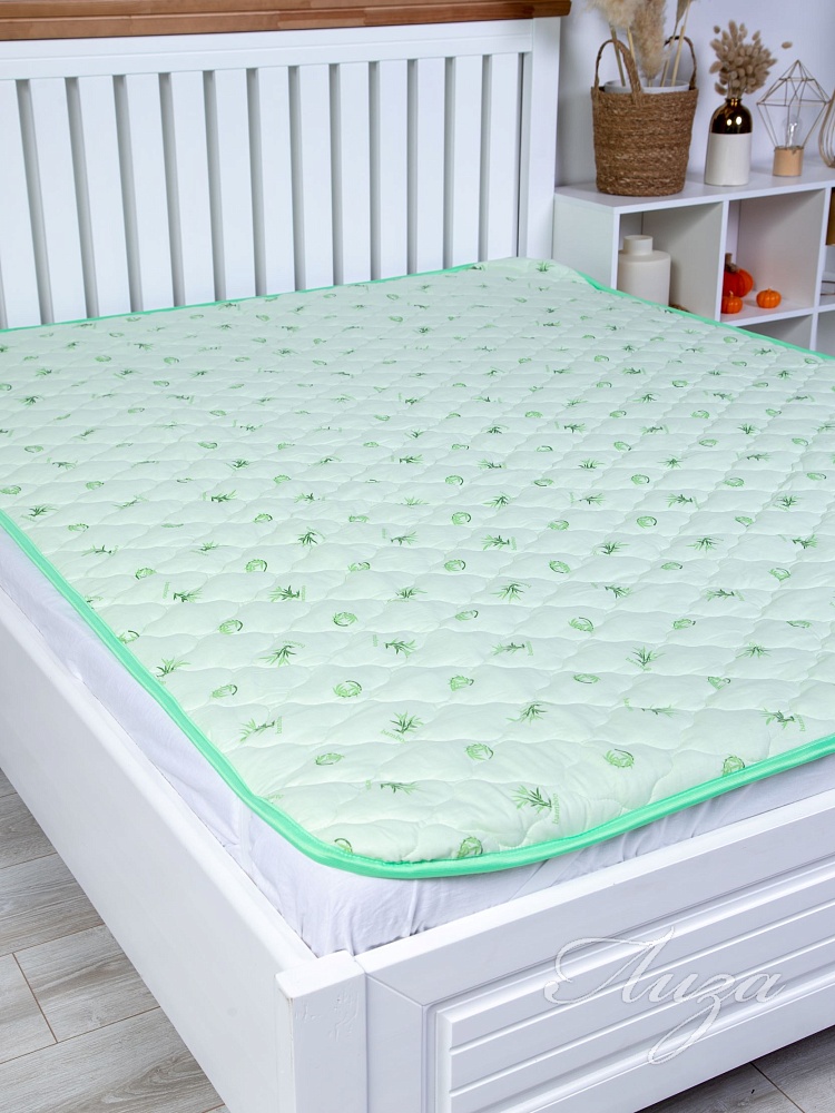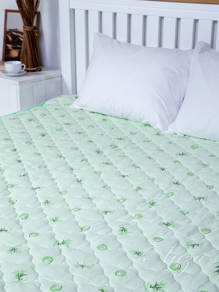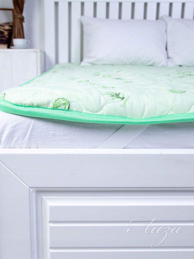 Наматрасник с наполнением из бамбукового волокна плотностью 300 гр/кв.м., окантован широкой тесьмой, по углам - резинка для фиксации на матрасе. Многоигольная стежка исключает смещение наполнителя внутри изделия, чехол из натурального хлопка, прекрасно пропускает воздух и впитывает влагу. Упаковка - тубус ПВХ с ручкой.