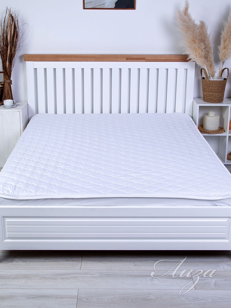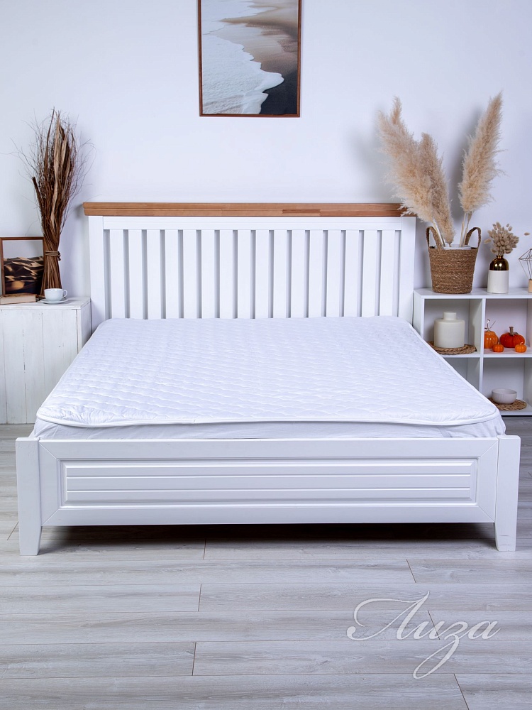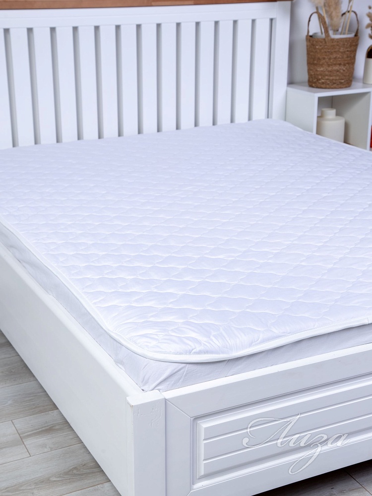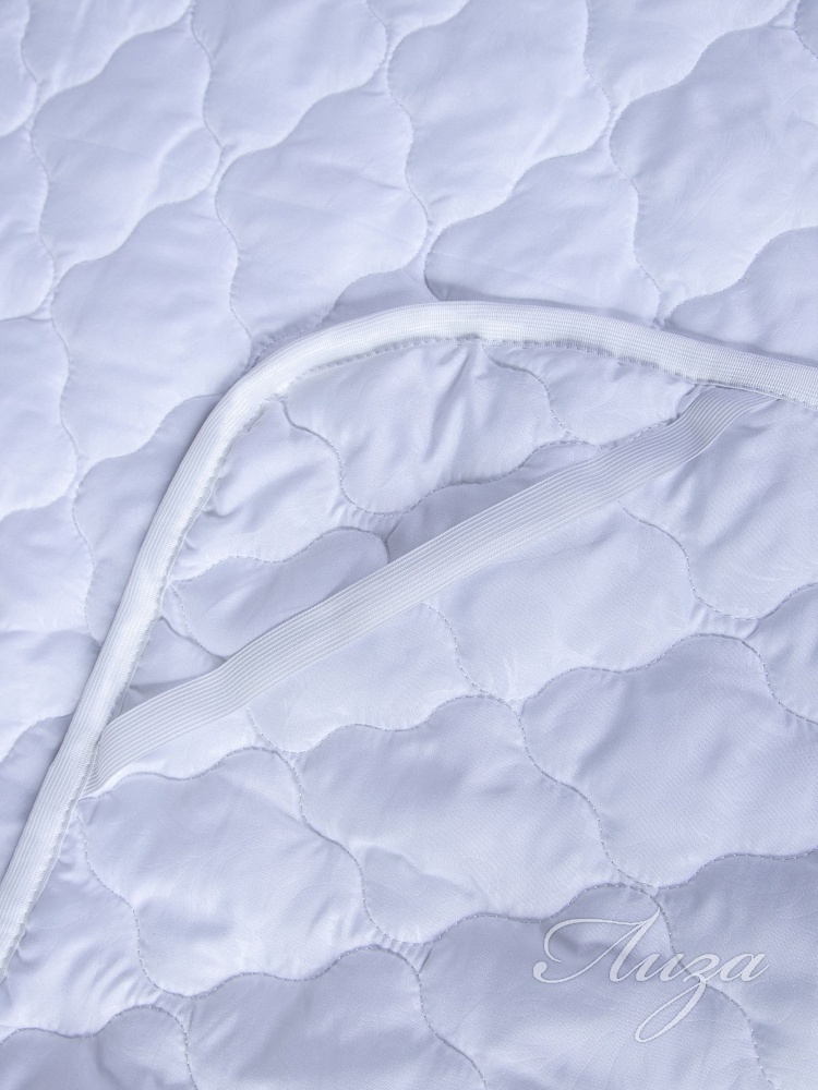 Наматрасник с наполнением из синтепона плотностью 150 гр/кв.м., окантован широкой тесьмой, по углам - резинка для фиксации на матрасе. Многоигольная стежка исключает смещение наполнителя внутри изделия, чехол устойчив к механическим воздействиям. Упаковка - тубус ПВХ с ручкой.