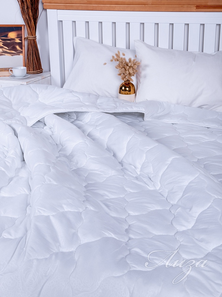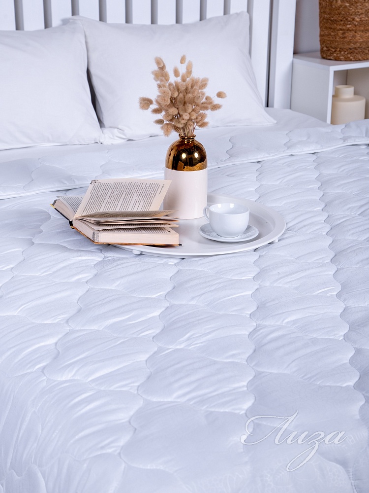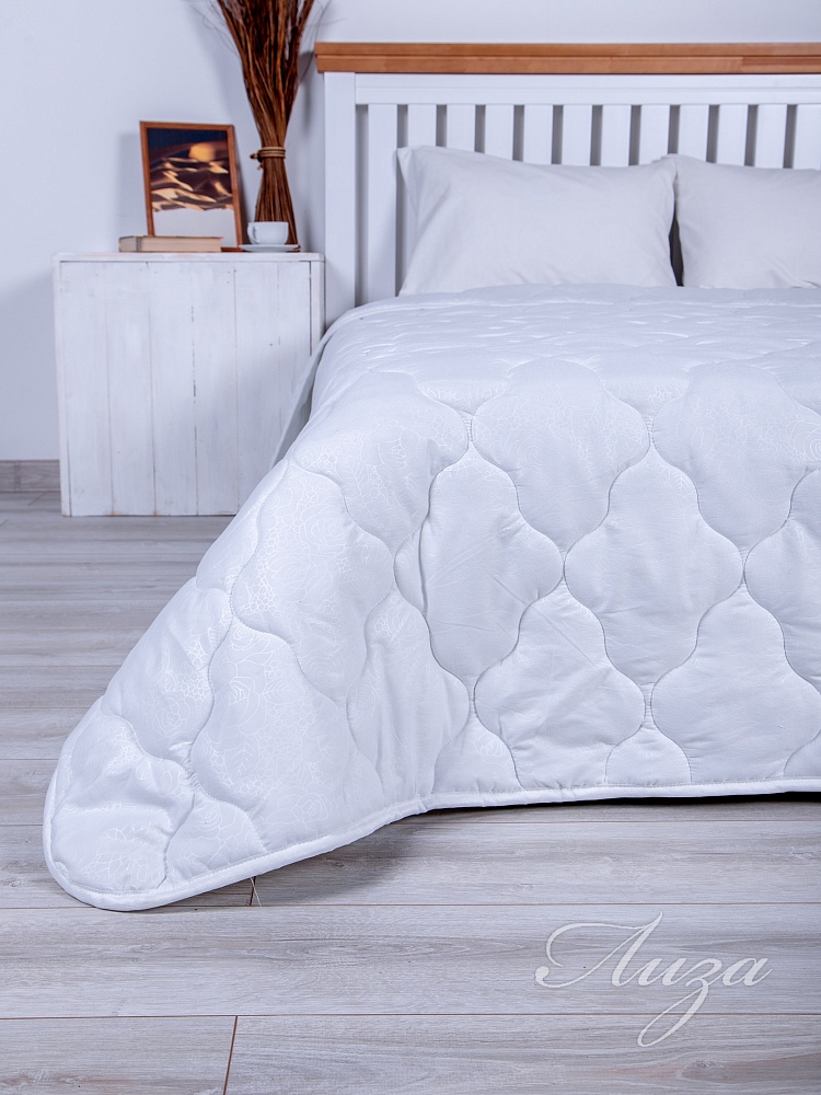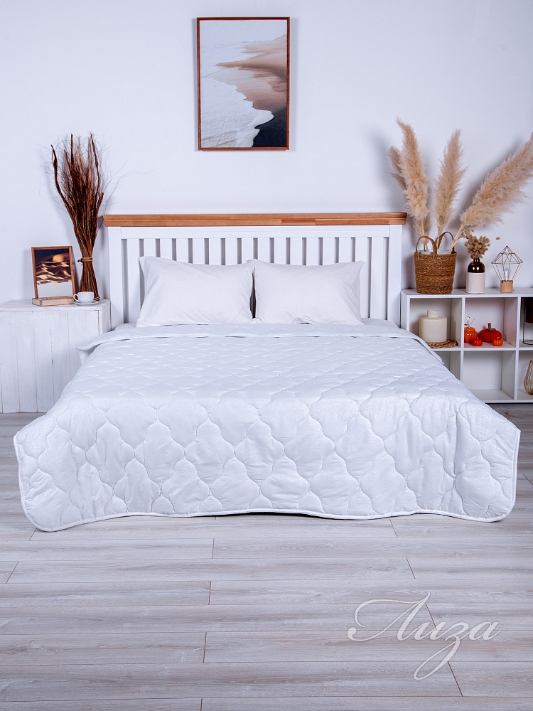 Одеяло 2-спальное с наполнением из синтепона плотностью 300 гр/кв.м. окантовано широкой тесьмой. Мягкое, шелковистое и приятное, не шуршит. Одеяло простегано средним размером рисунка. Можно использовать как покрывало. Изделие премиум-класса. Упаковка - сумка ПВХ с ручками.