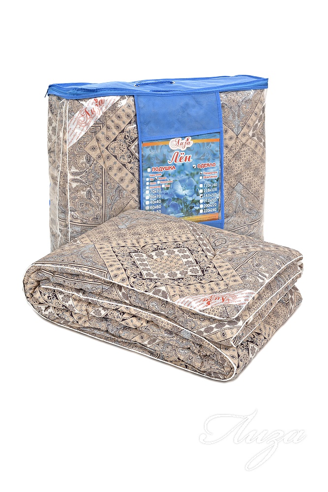 Одеяло Евро-мини с наполнением из термофиксированного льняного волокна плотностью 400 гр/кв.м. Волокна льна - это экологически чистый растительный наполнитель, не вызывающий аллергии. Одеяло прекрасно "дышит" и сохраняет тепло, легкое и мягкое. Изделие премиум-класса. Отделочный элемент - вшивной кант. Упаковка - сумка ПВХ с ручками.
