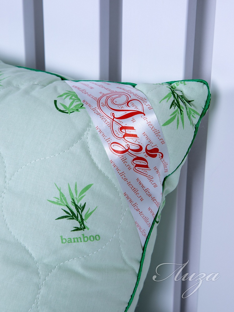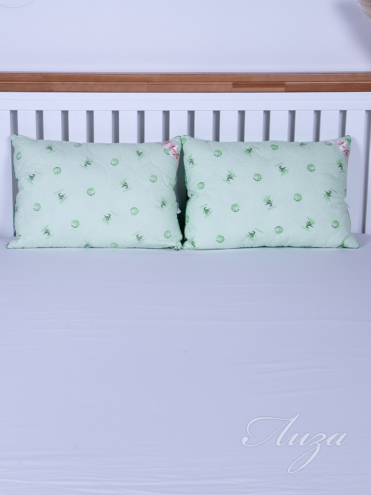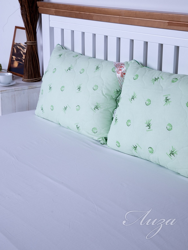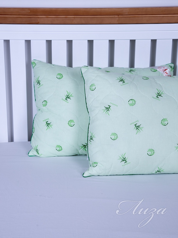 Подушка с содержанием бамбуковых волокон. Чехол простеган на многоигольной машине с термофиксированным полотном «Бамбук» плотностью 100г/кв.м