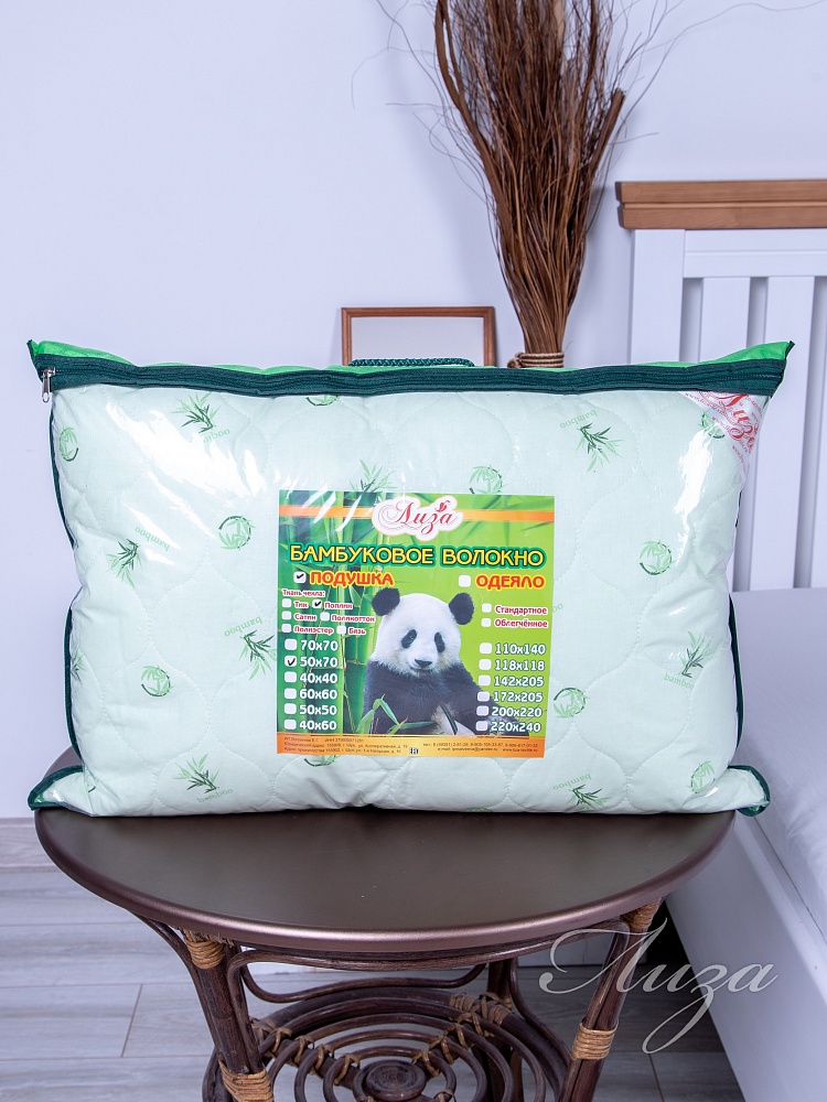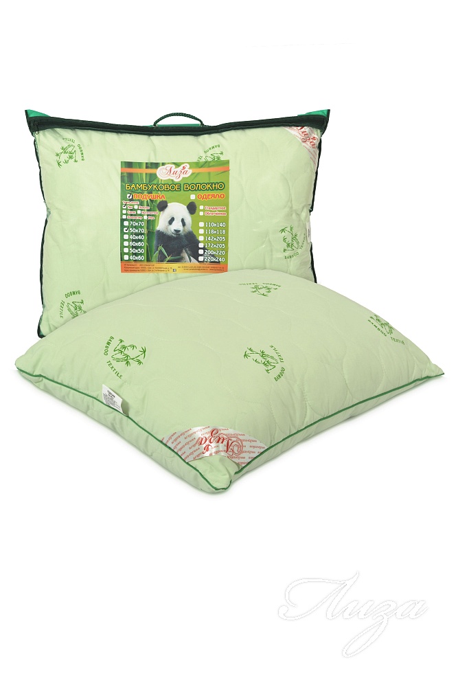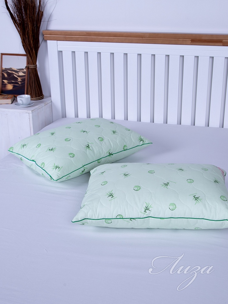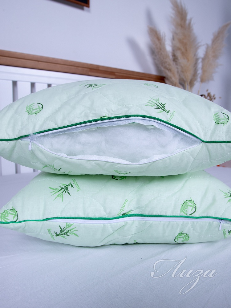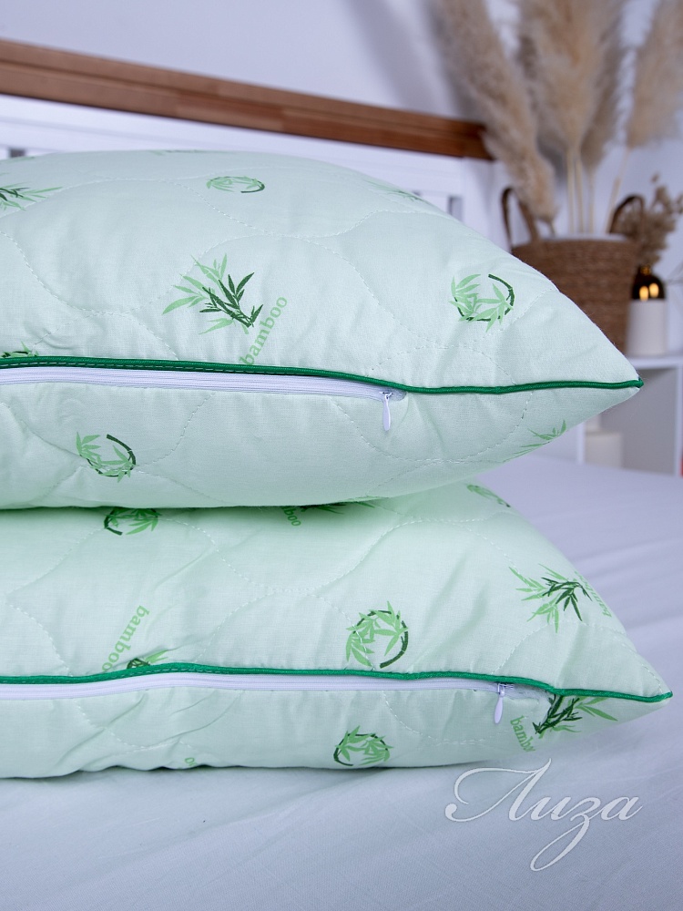 Подушка с содержанием бамбуковых волокон. Чехол простеган на многоигольной машине с термофиксированным полотном «Бамбук» плотностью 100г/кв.м