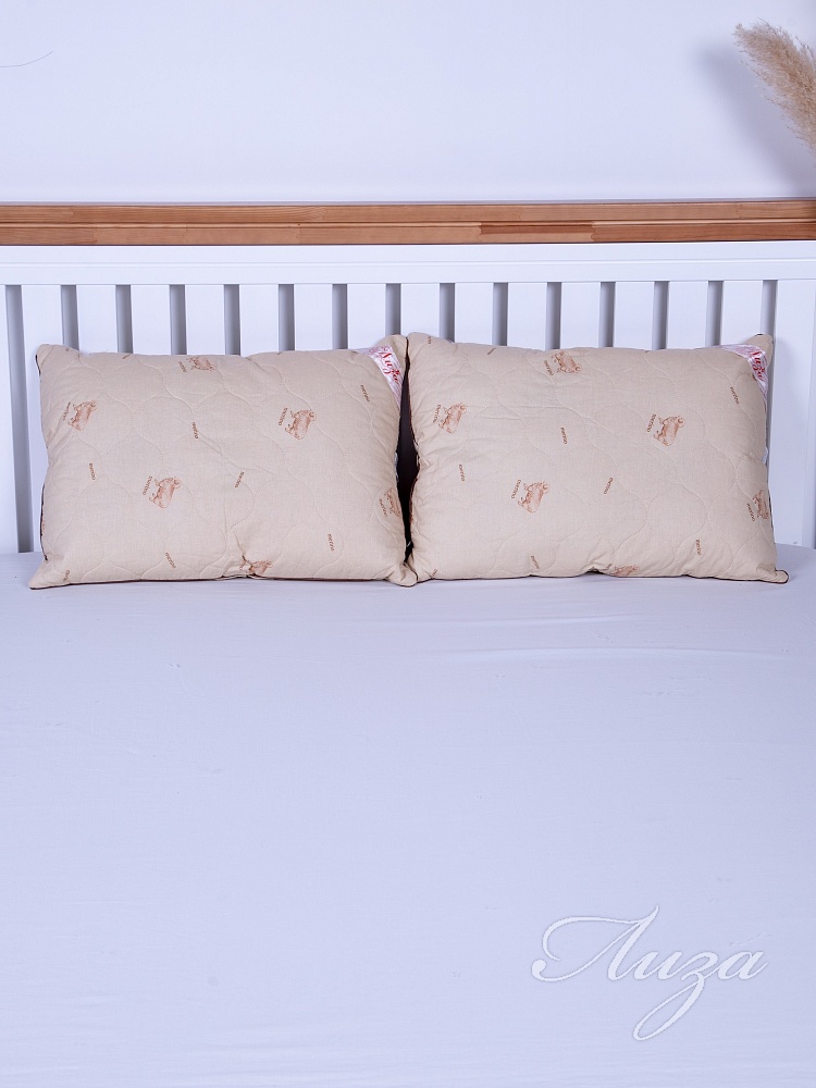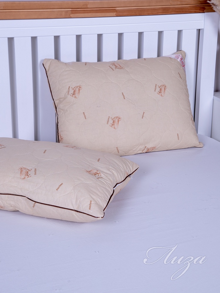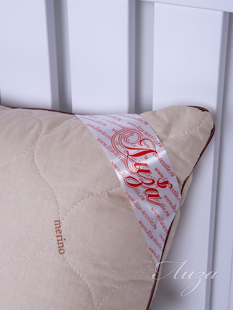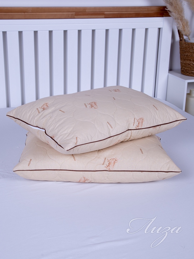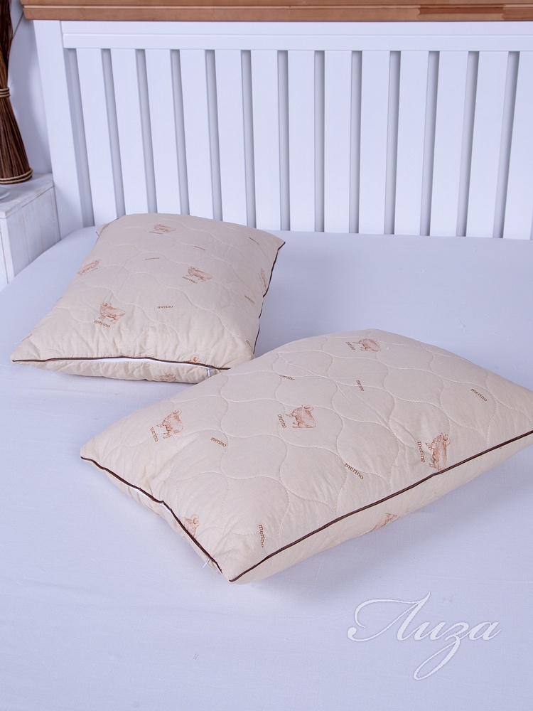 Подушка с содержанием волокон овечьей шерсти. Чехол простеган на многоигольной машине с термофиксированным полотном «Овца» плотностью 100г/кв.м