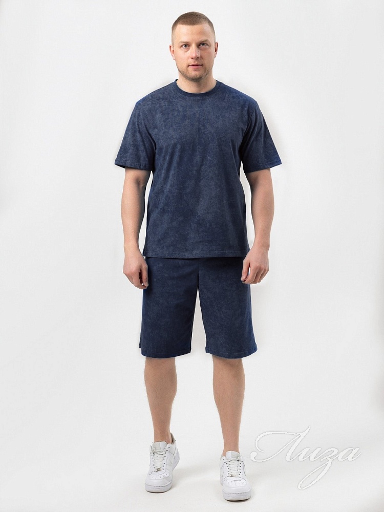 Мужской костюм состоит из футболки и шорт. Футболка свободного кроя с круглым вырезом горловины. Шорты - бермуды свободного кроя, с боковыми карманами