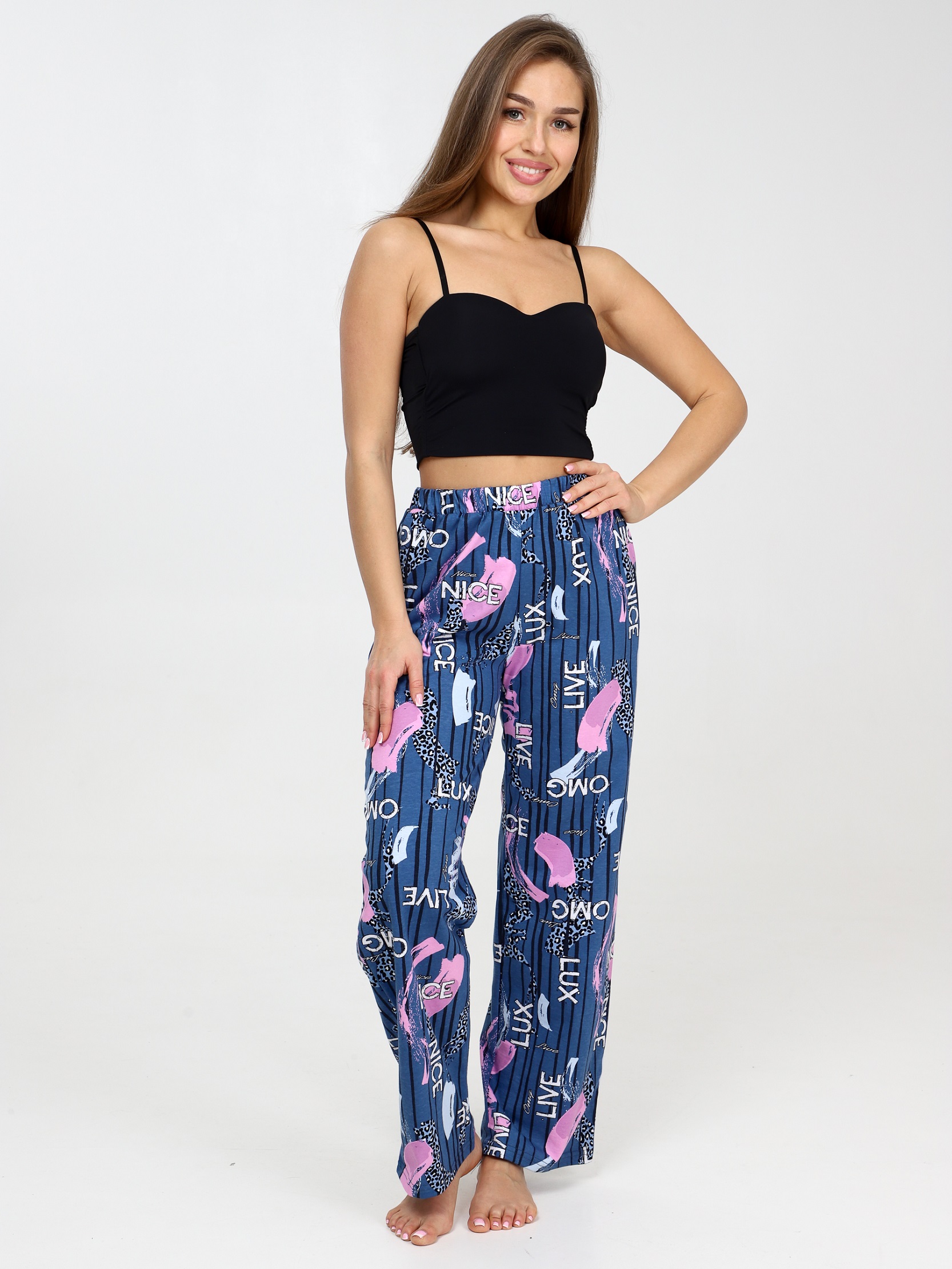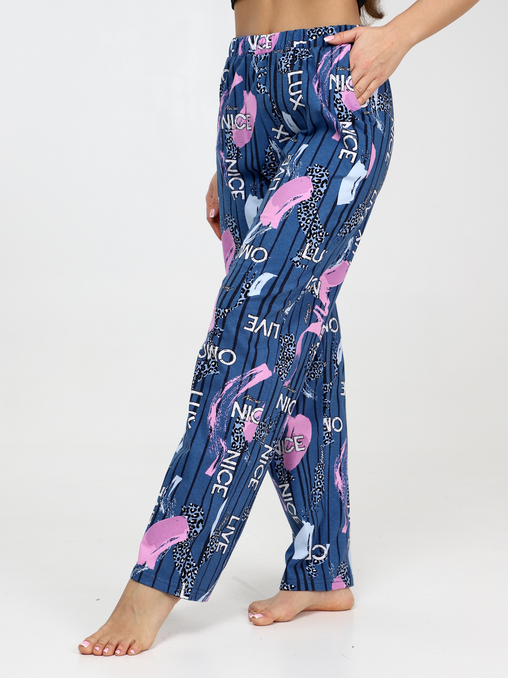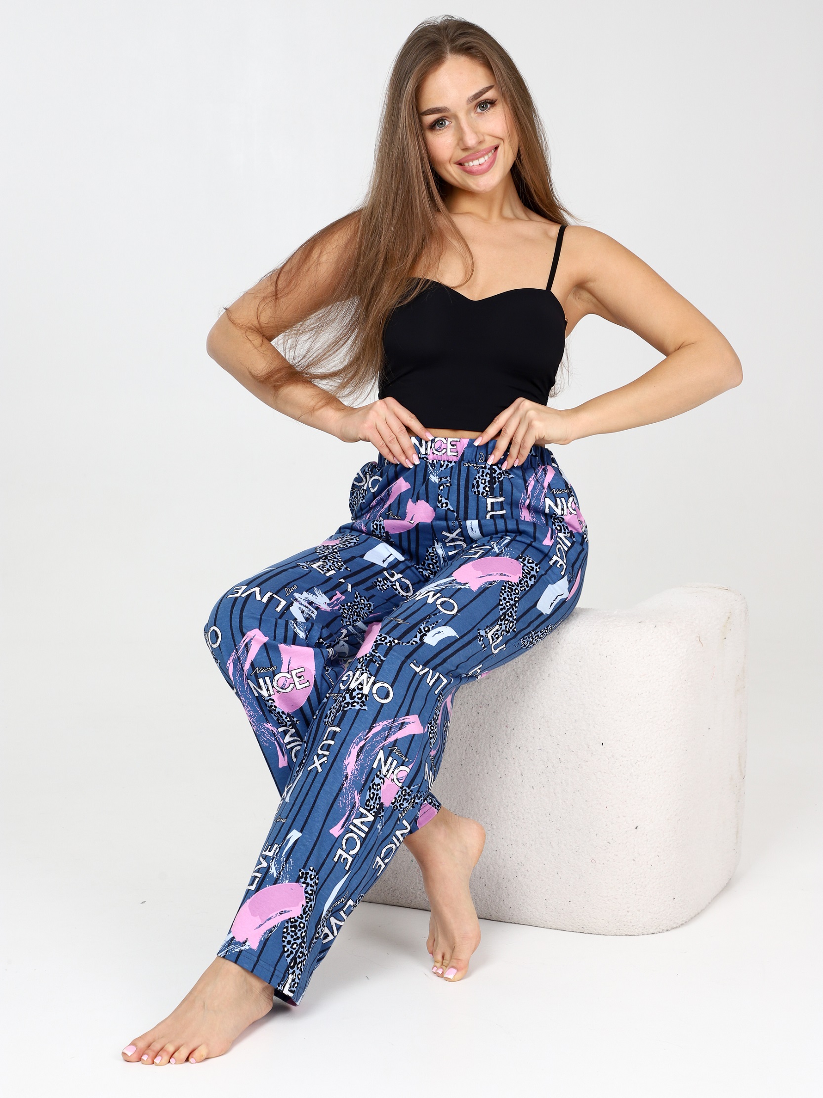 Брюки домашние женские хлопковые - это стильная и удобная часть гардероба, которая идеально подходит как для отдыха, так и для домашнего гардероба. Брюки имеют натуральный состав из хлопка. Ткань дышащая, мягкая и приятная к телу. Женские домашние штаны имеют свободный силуэт, что обеспечивает комфорт и свободу движениям. Хлопковые пижамные брюки подойдут как для комфортного сна, так и для домашней носки, дачи. Брюки из хлопка отличный вариант для тех, кто ценит комфорт и уют в домашней обстановке.