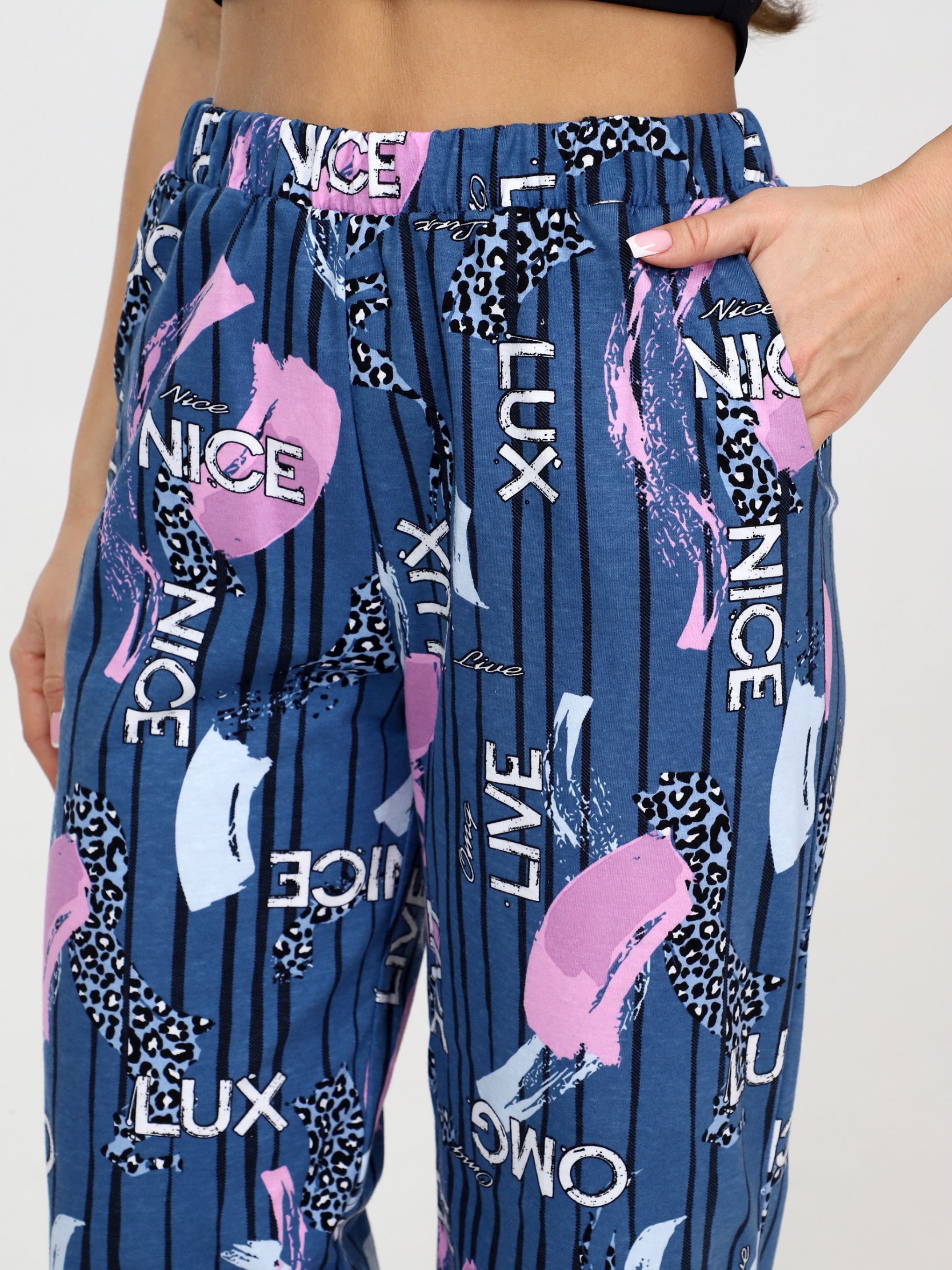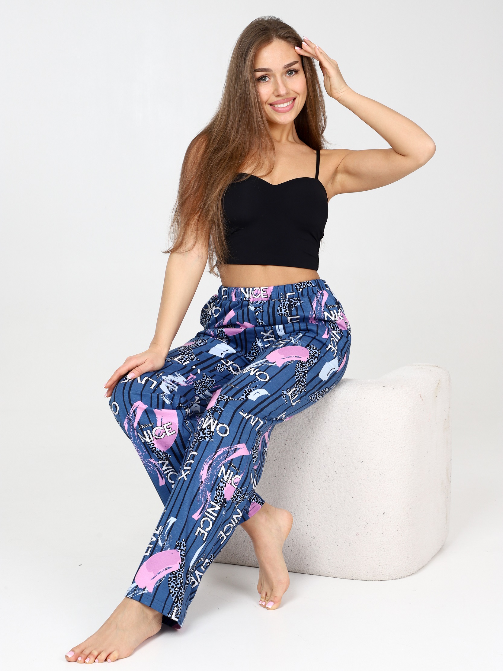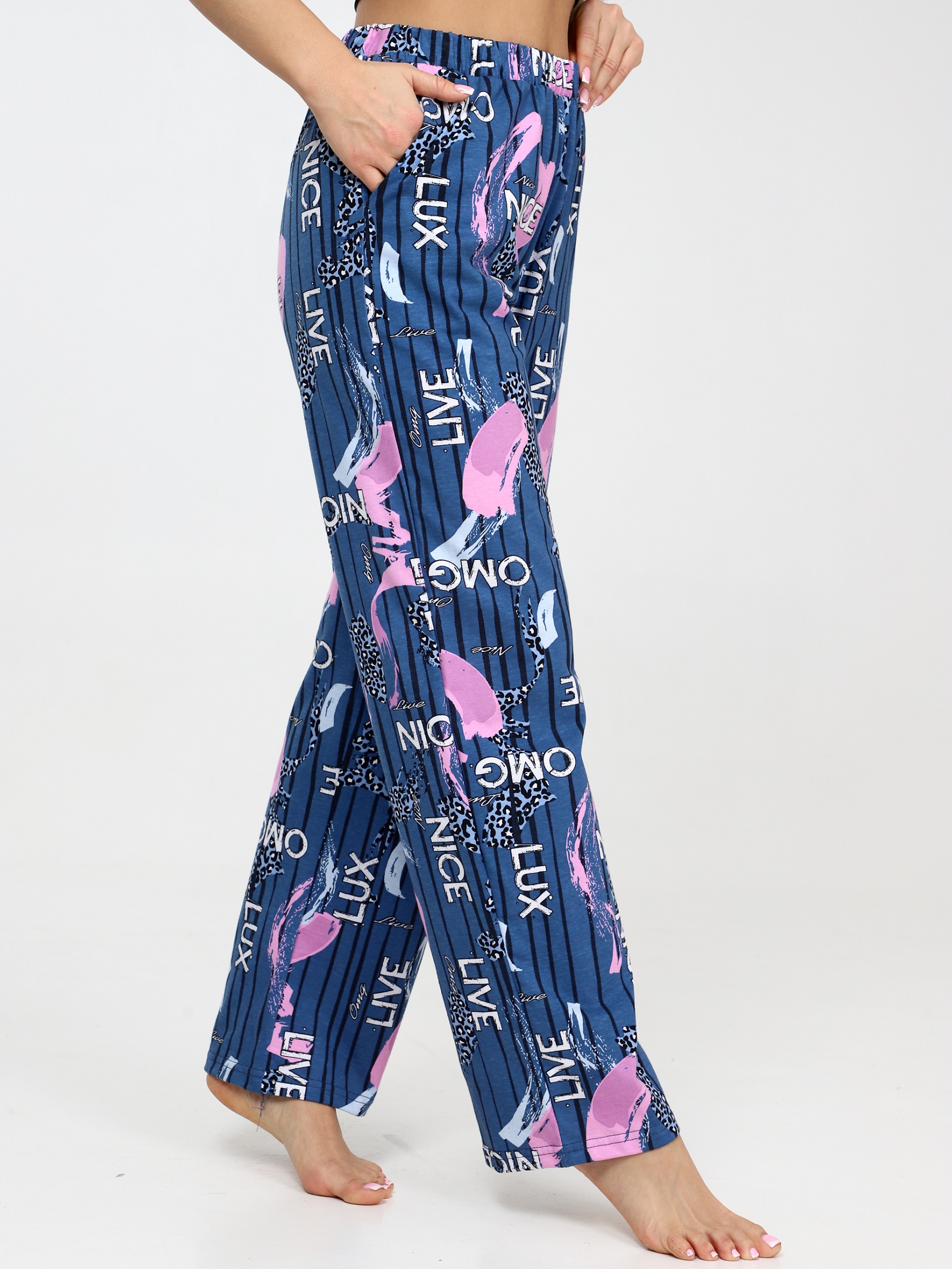 Брюки домашние женские хлопковые - это стильная и удобная часть гардероба, которая идеально подходит как для отдыха, так и для домашнего гардероба. Брюки имеют натуральный состав из хлопка. Ткань дышащая, мягкая и приятная к телу. Женские домашние штаны имеют свободный силуэт, что обеспечивает комфорт и свободу движениям. Хлопковые пижамные брюки подойдут как для комфортного сна, так и для домашней носки, дачи. Брюки из хлопка отличный вариант для тех, кто ценит комфорт и уют в домашней обстановке.