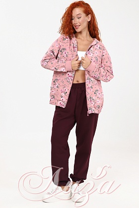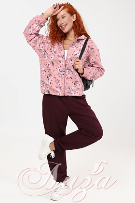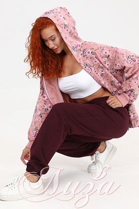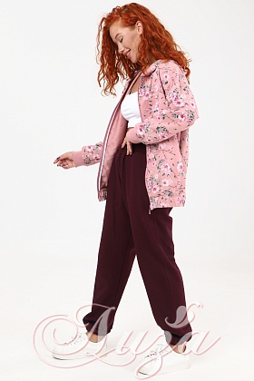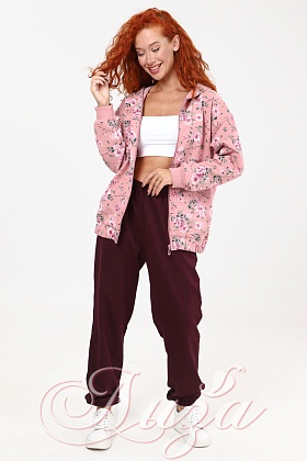 Костюм трикотажный Розовый с Бордовыми брюками (М-1003)