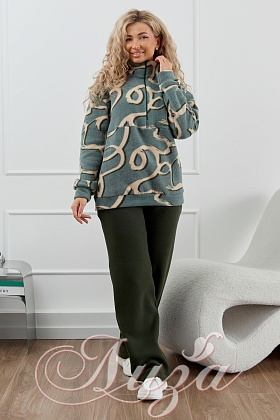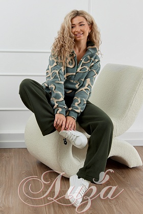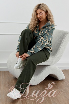 Костюм трикотажный "Цветок Хаки с темно-зелеными брюками" (М-1014)