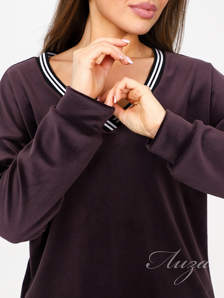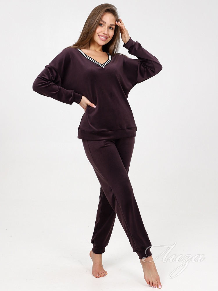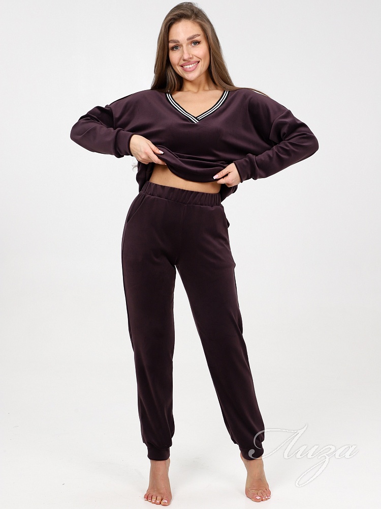 Домашний костюм из велюра – это идеальный вариант для тех, кто ищет комфорт и стиль в одежде. Стильный костюм с брюками очень удобный в носке и совершенно простой в уходе. Ткань легко стирается и гладится.