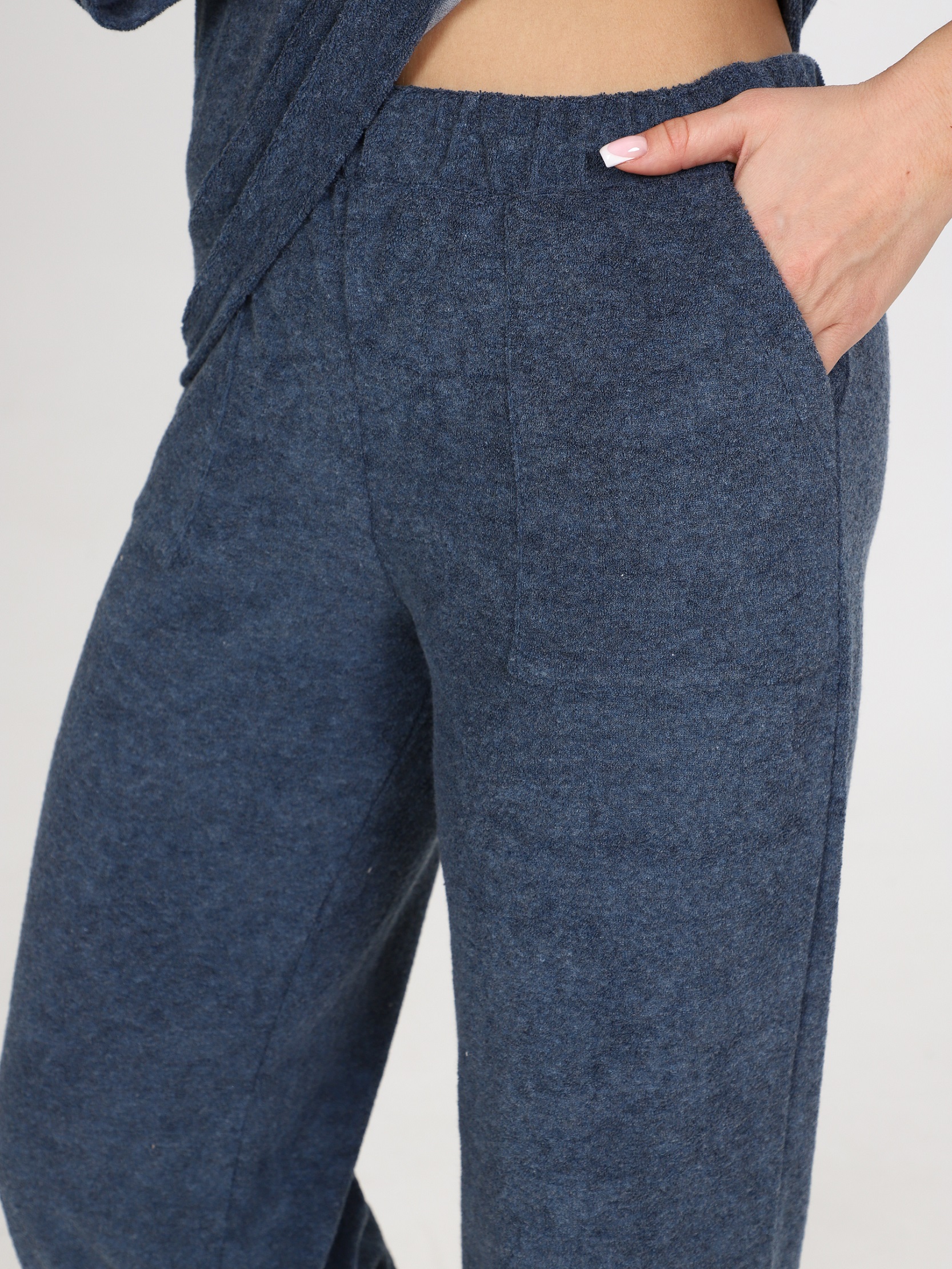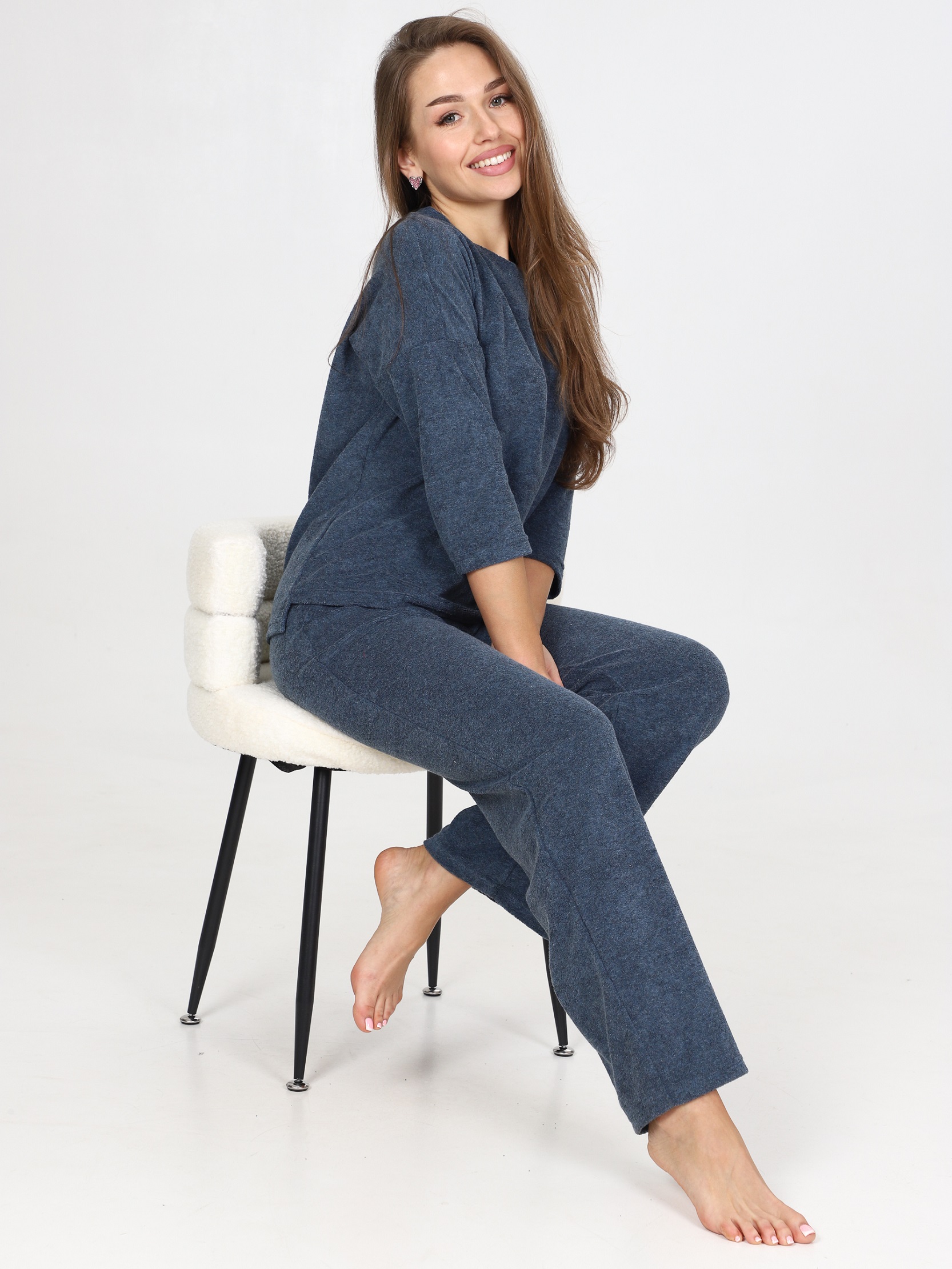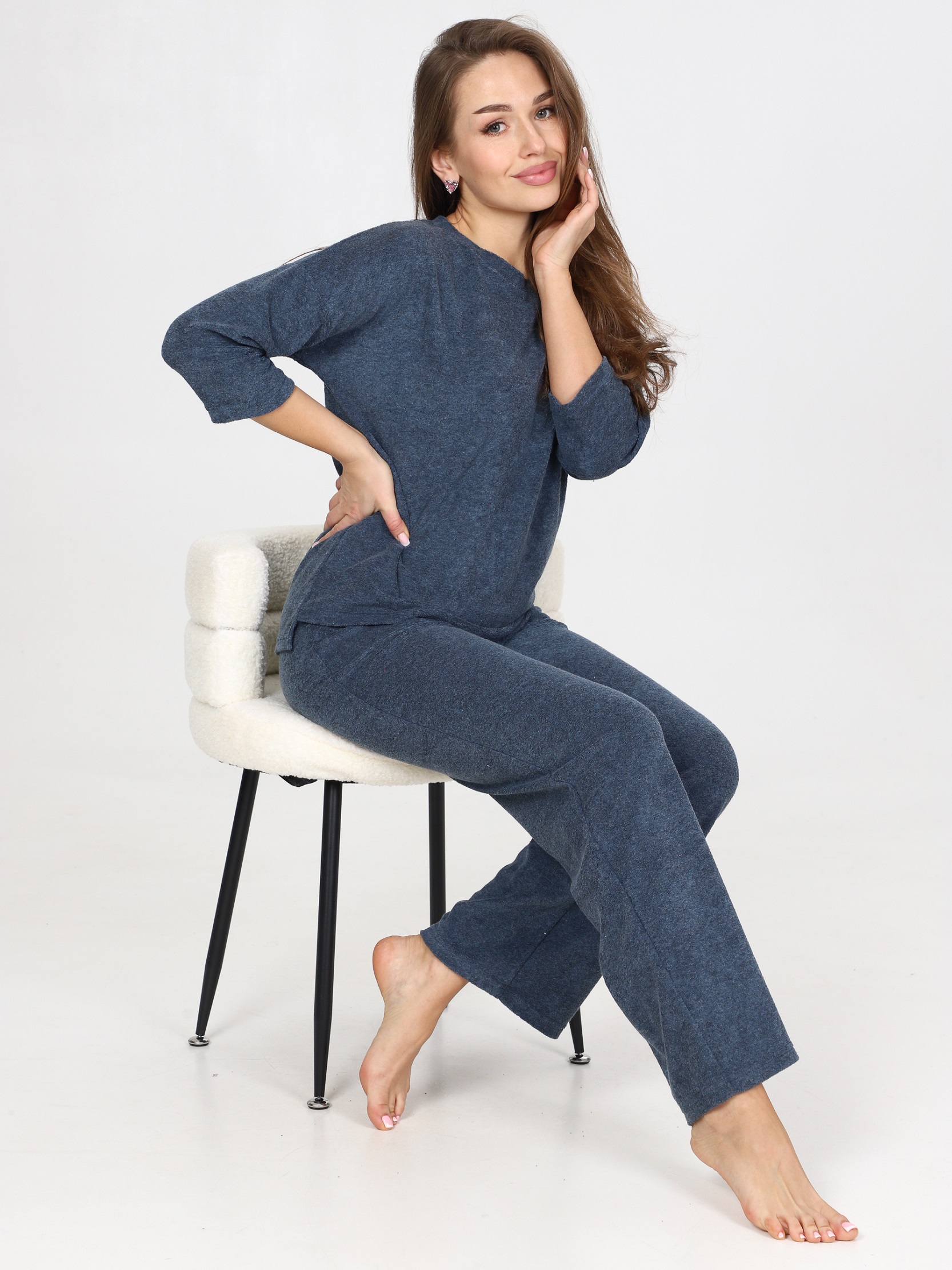 Костюм с кофтой и брюками-палаццо прекрасно подойдет в качестве костюма для дома. Джемпер со спущенным рукавом 3/4 и удлиненной спинкой. Брюки свободного кроя, с карманами. На поясе брюк - контрастная резинка. Костюм из облегчённой махры – это идеальный вариант для тех, кто ищет комфорт и стиль в одежде. Облегчённая махра является очень мягкой и приятной на ощупь, что делает этот костюм идеальным для домашнего отдыха. Изделия из этой ткани отлично сохраняет тепло, при этом обеспечивая отличную циркуляцию воздуха, что делает его подходящим для носки как в холодные, так и в тёплые дни. Одежда из облегченной махры легко стирается и гладится, не теряет форму. Костюм из облегчённой махры станет вашим надёжным спутником в повседневной жизни, предоставляя вам комфорт и удобство.