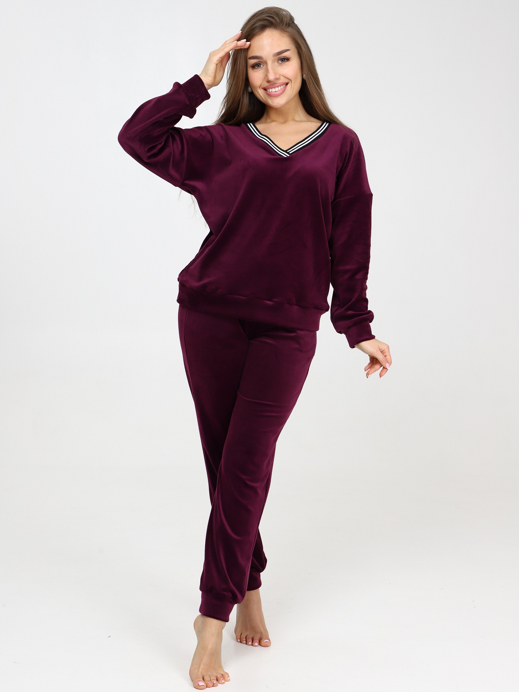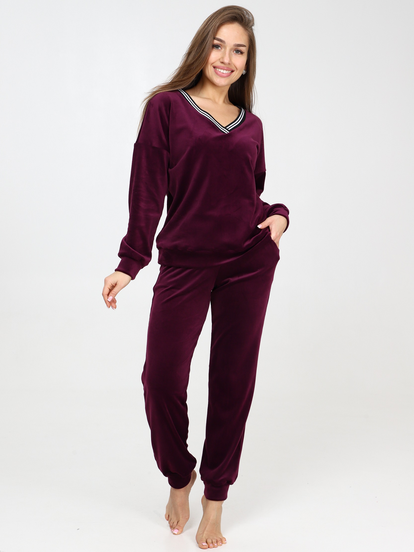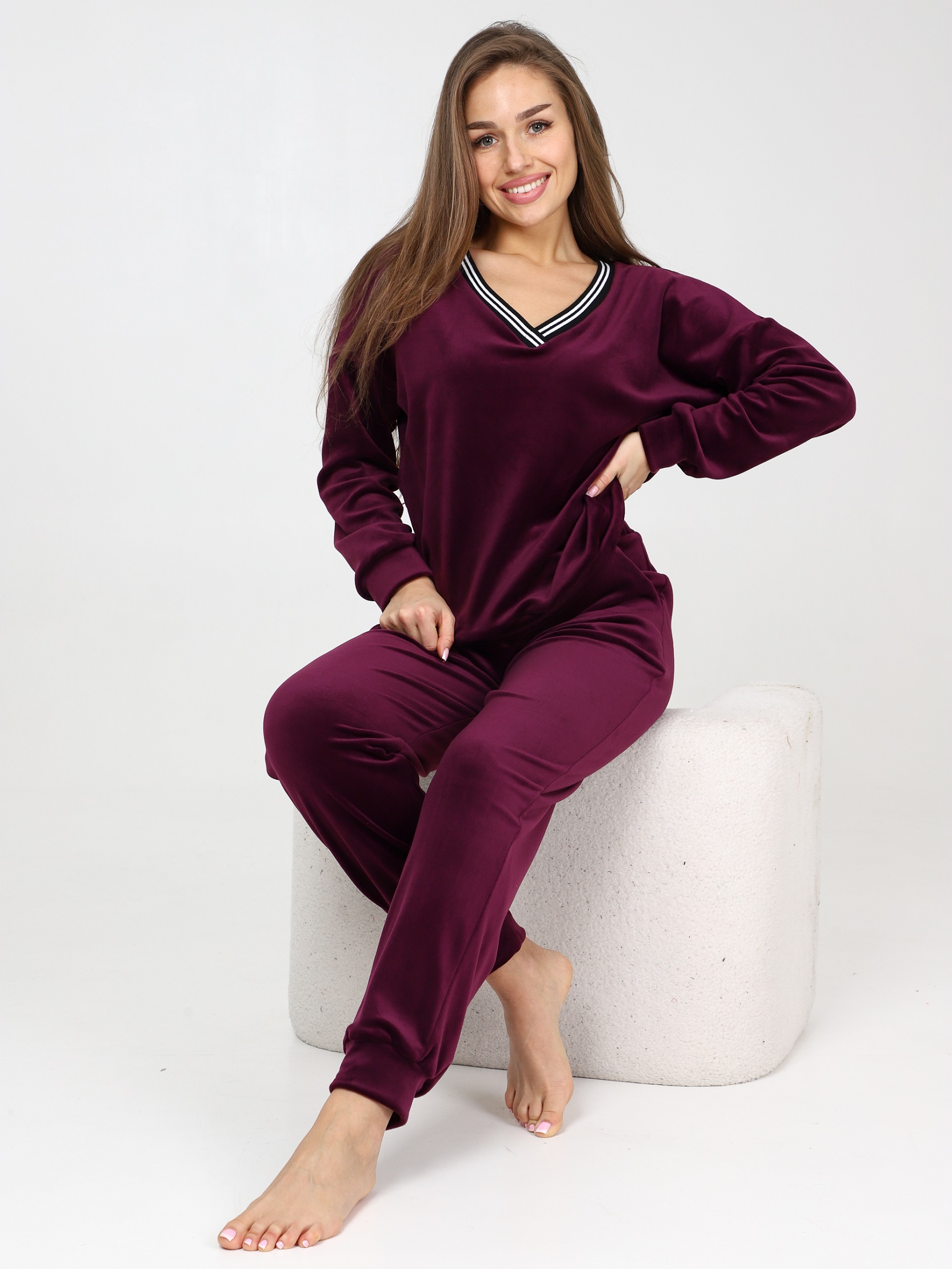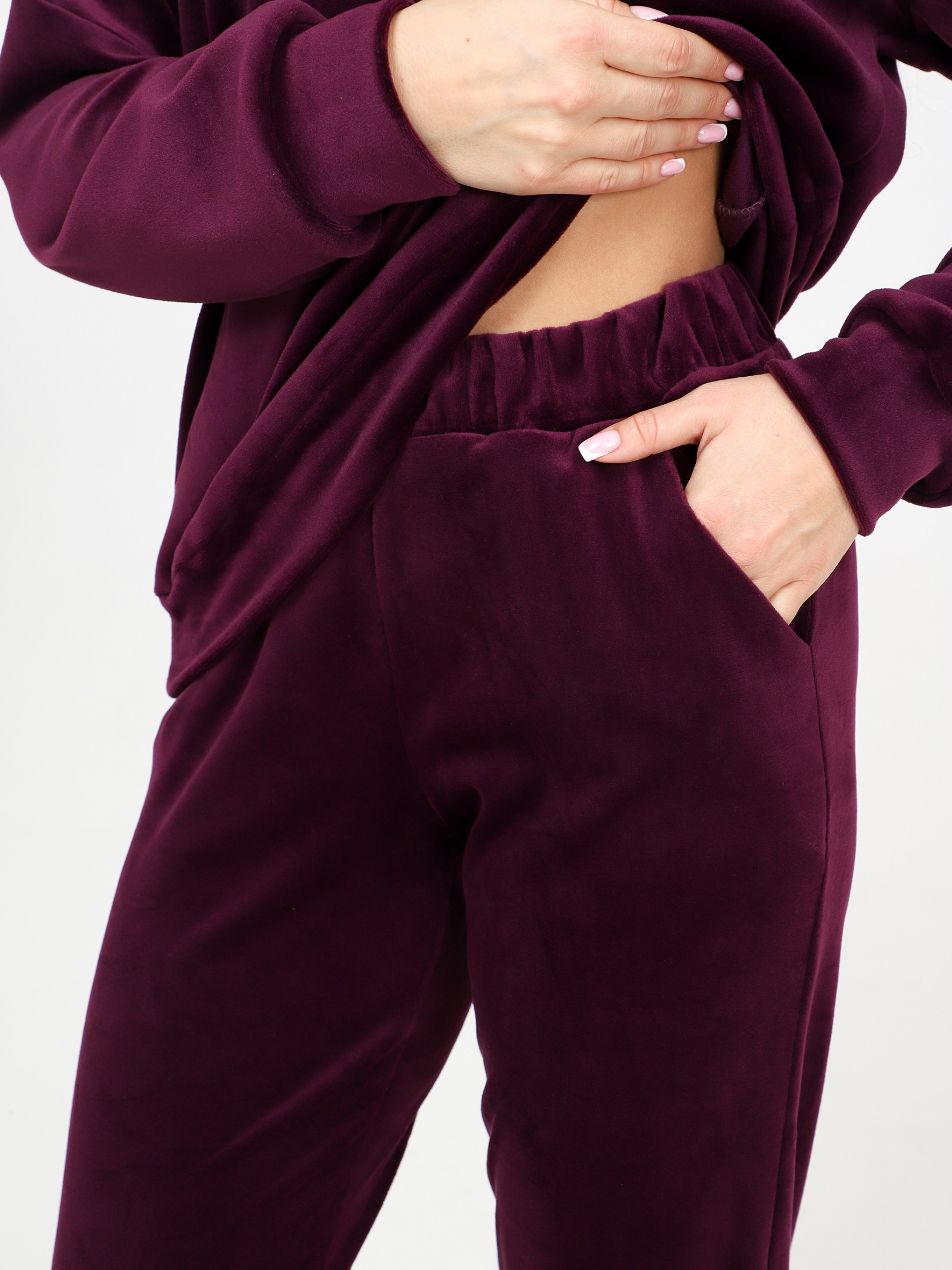 Велюровый костюм - это великолепное сочетание уюта, тепла и стиля, которое идеально подходит для дома. Костюм состоит из худи свободного кроя с длинным рукавом на манжете и брюк прямого кроя с карманами и манжетами внизу. Домашний костюм из велюра – это идеальный вариант для тех, кто ищет комфорт и стиль в одежде. Стильный костюм с брюками очень удобный в носке и совершенно простой в уходе. Ткань легко стирается и гладится.