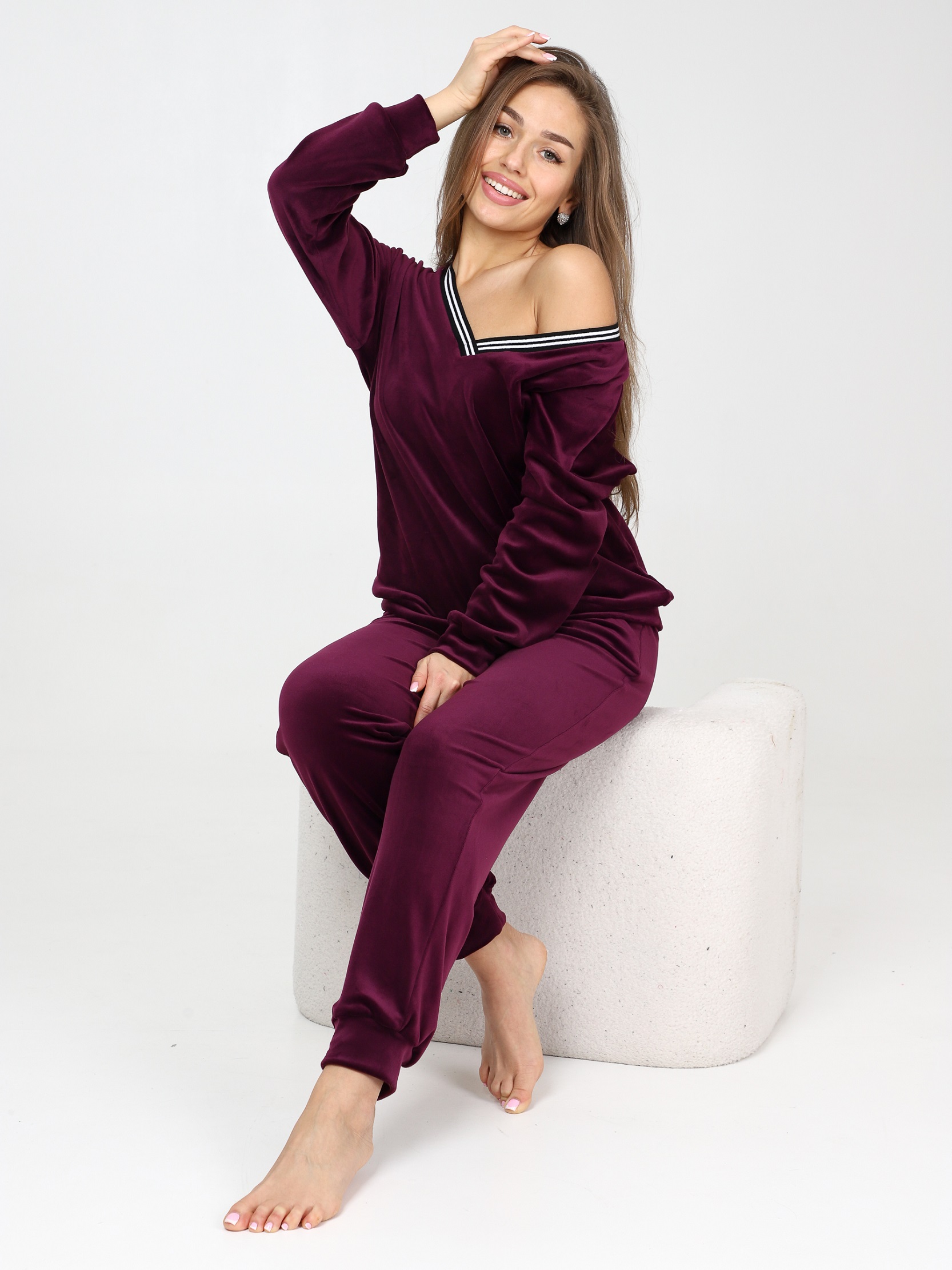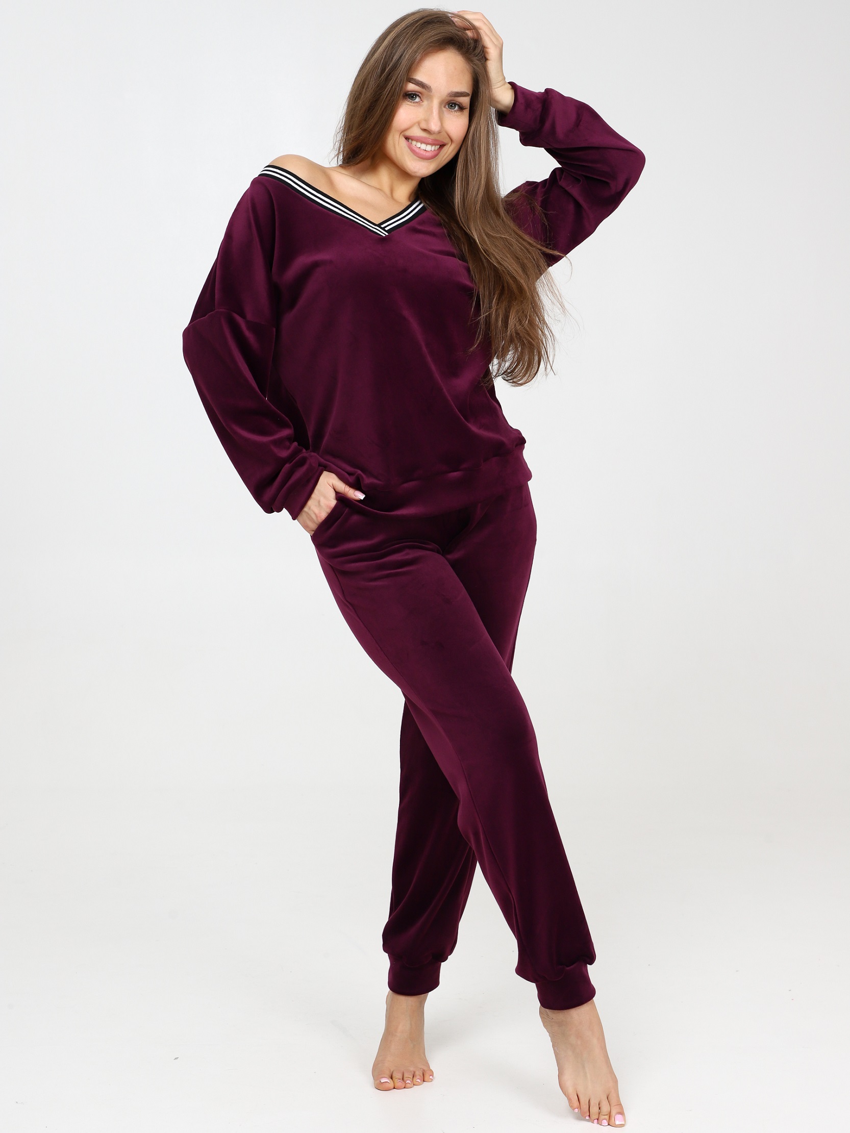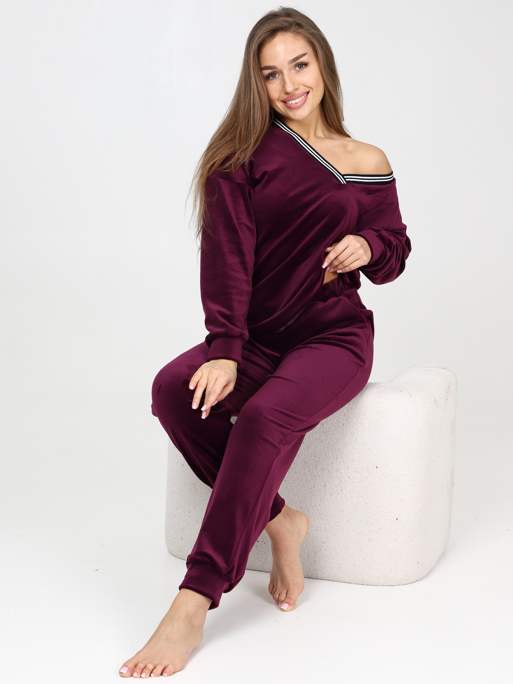 Велюровый костюм - это великолепное сочетание уюта, тепла и стиля, которое идеально подходит для дома. Костюм состоит из худи свободного кроя с длинным рукавом на манжете и брюк прямого кроя с карманами и манжетами внизу. Домашний костюм из велюра – это идеальный вариант для тех, кто ищет комфорт и стиль в одежде. Стильный костюм с брюками очень удобный в носке и совершенно простой в уходе. Ткань легко стирается и гладится.