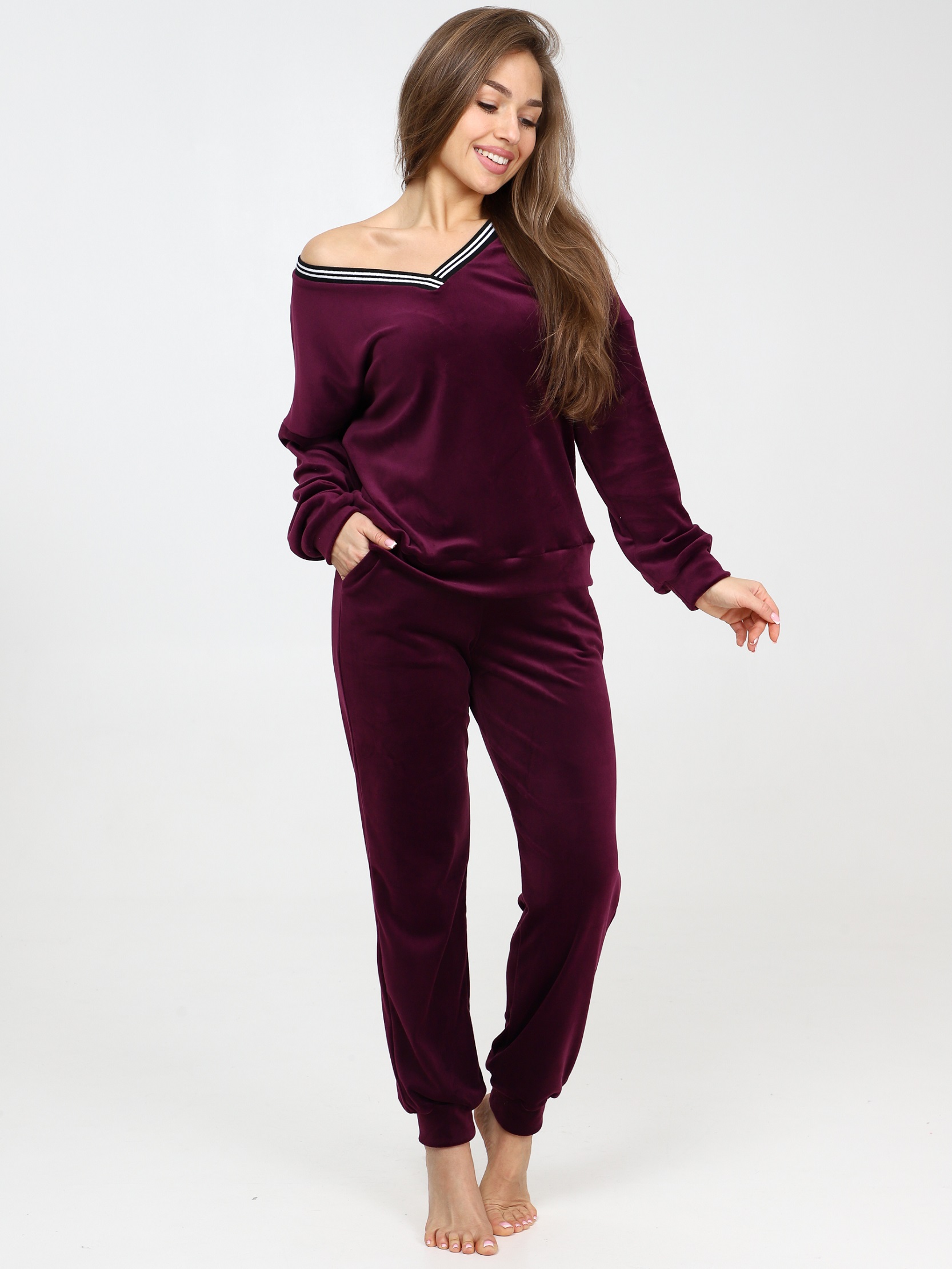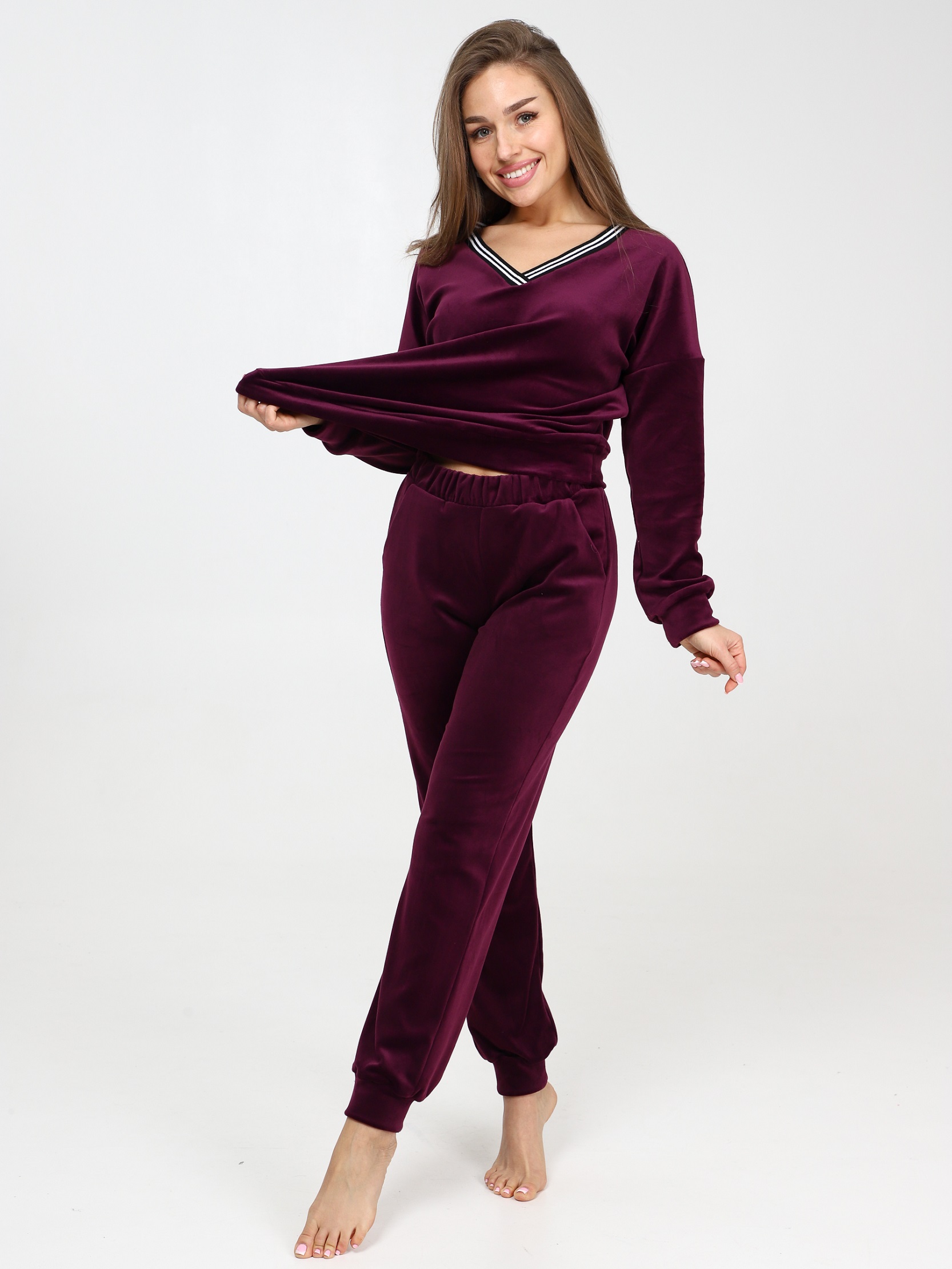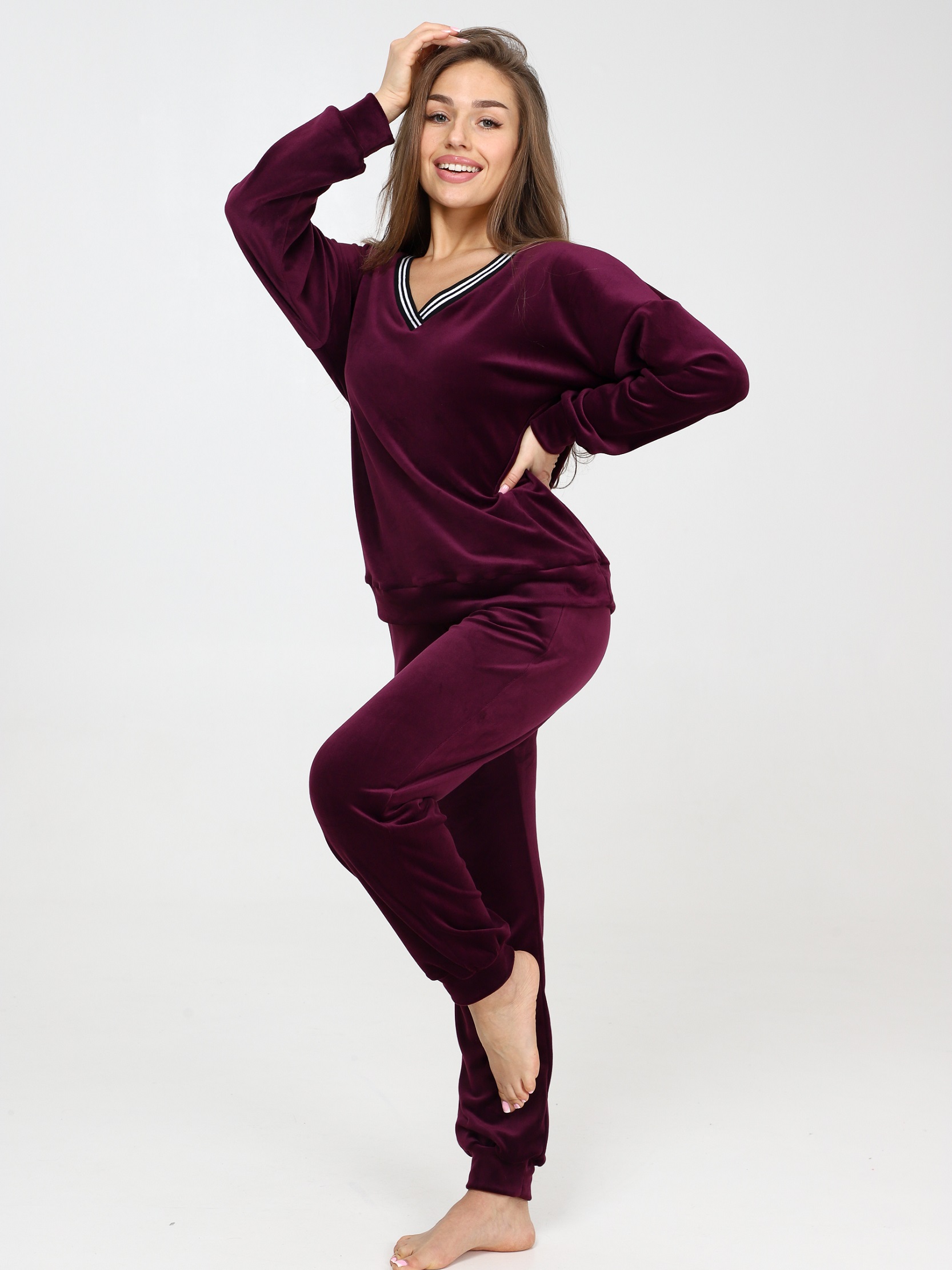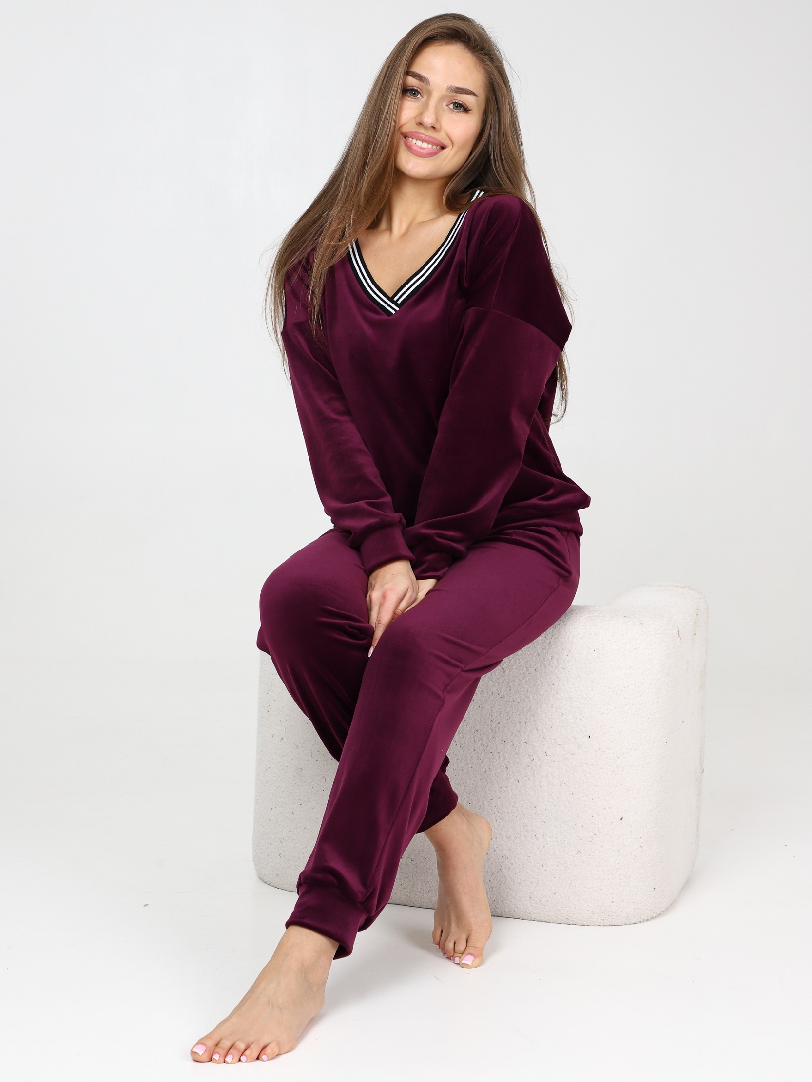 Велюровый костюм - это великолепное сочетание уюта, тепла и стиля, которое идеально подходит для дома. Костюм состоит из худи свободного кроя с длинным рукавом на манжете и брюк прямого кроя с карманами и манжетами внизу. Домашний костюм из велюра – это идеальный вариант для тех, кто ищет комфорт и стиль в одежде. Стильный костюм с брюками очень удобный в носке и совершенно простой в уходе. Ткань легко стирается и гладится.