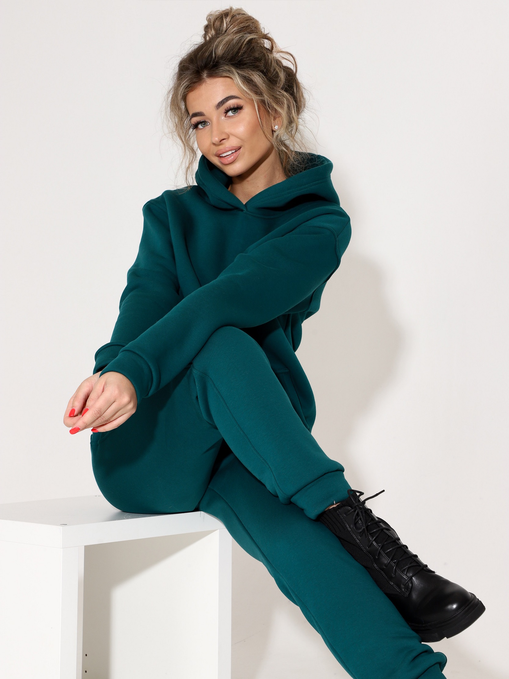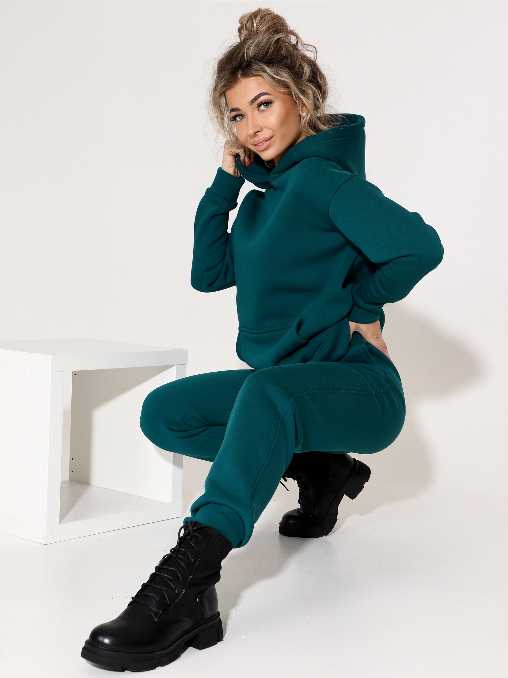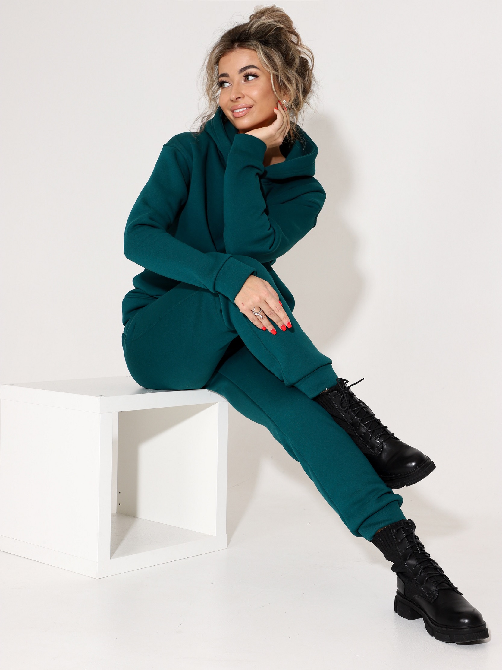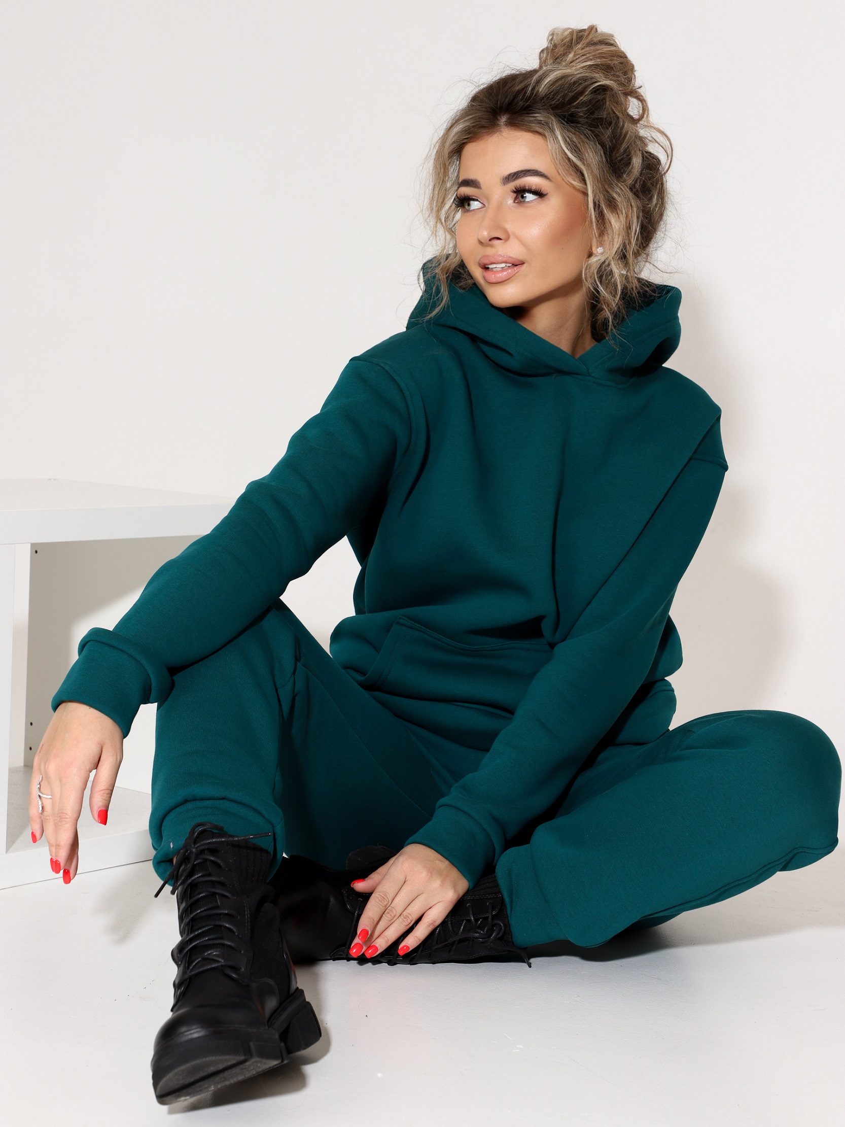 Теплый женский однотонный костюм из футера с начесом состоит из худи и брюк. Худи оверсайз с накладным карманом «Кенгуру». Капюшон двойной. Рукав со спущенным плечом и манжетой из основного материала. Стан с манжетой по низу из основного материала. Брюки-джоггеры с карманами завышенной талией .Благодаря удобной посадке, будет комфортно ноcить их каждый день. Низ брюк с манжетой из основного материала. Ткань футер с начесом очень приятная к телу, мягкая и гладкая. Натуральный хлопок с добавлением безопасных синтетических нитей прекрасно сохраняет форму, неприхотлив в уходе. Особая структура ворса и «начёс» внутри изделия позволяет девушке чувствовать себя словно в коконе. Это не только комфортно, но и тепло. Многие носят спортивный костюм в зимний период, не надевая термобелья или другого дополнительного слоя одежды. А для мамочек с детьми нет более комфортной одежды. Удобный крой позволит свободно играть с ребёнком на площадке.