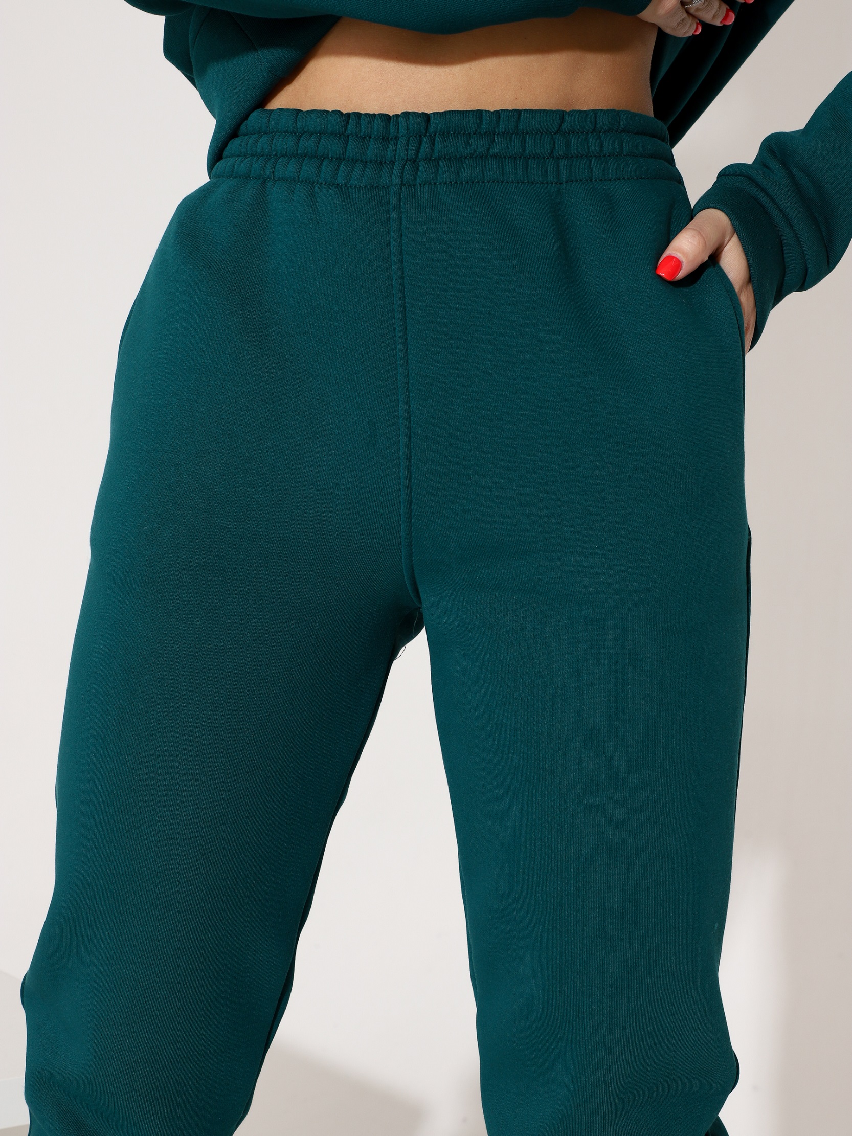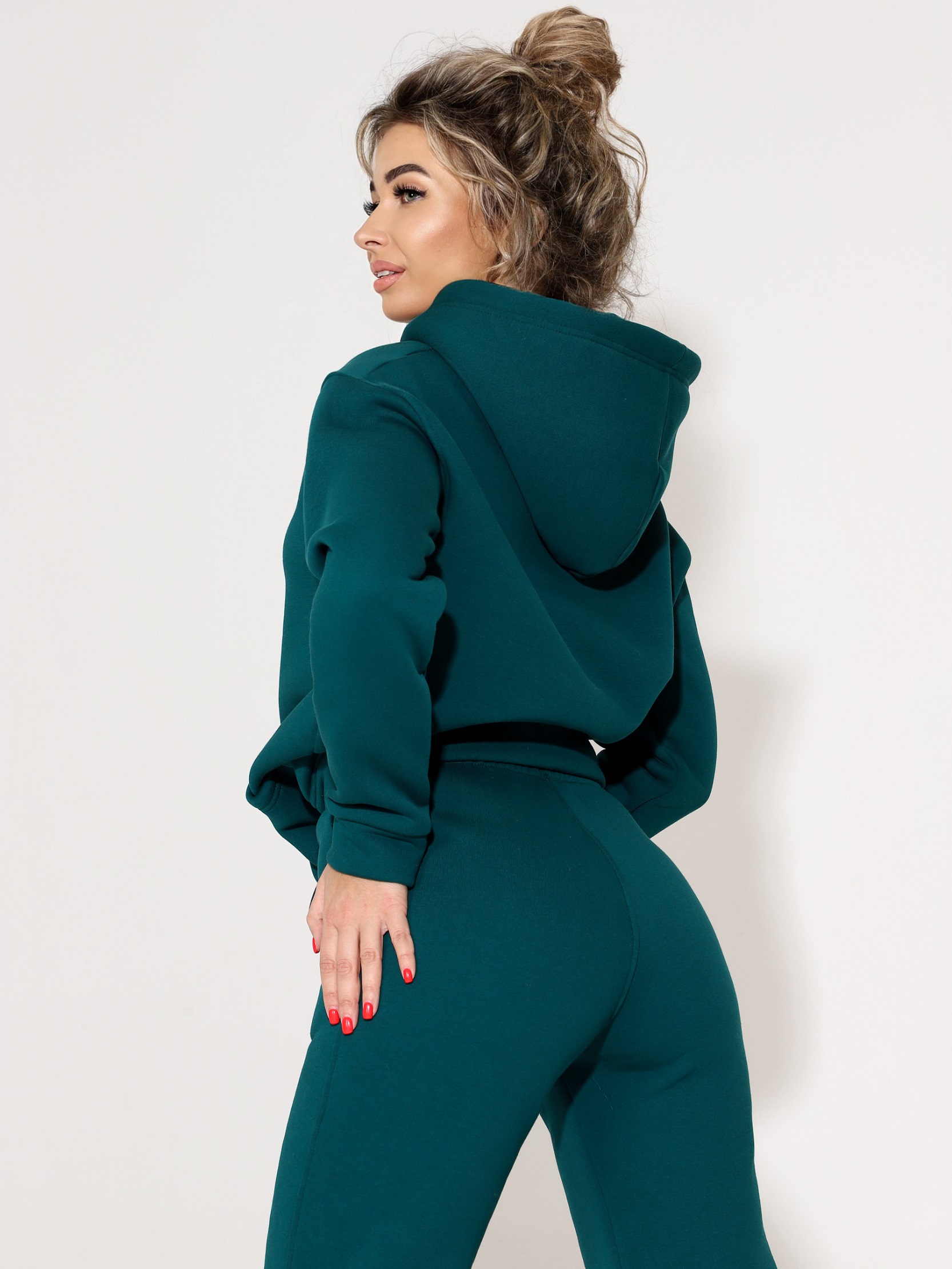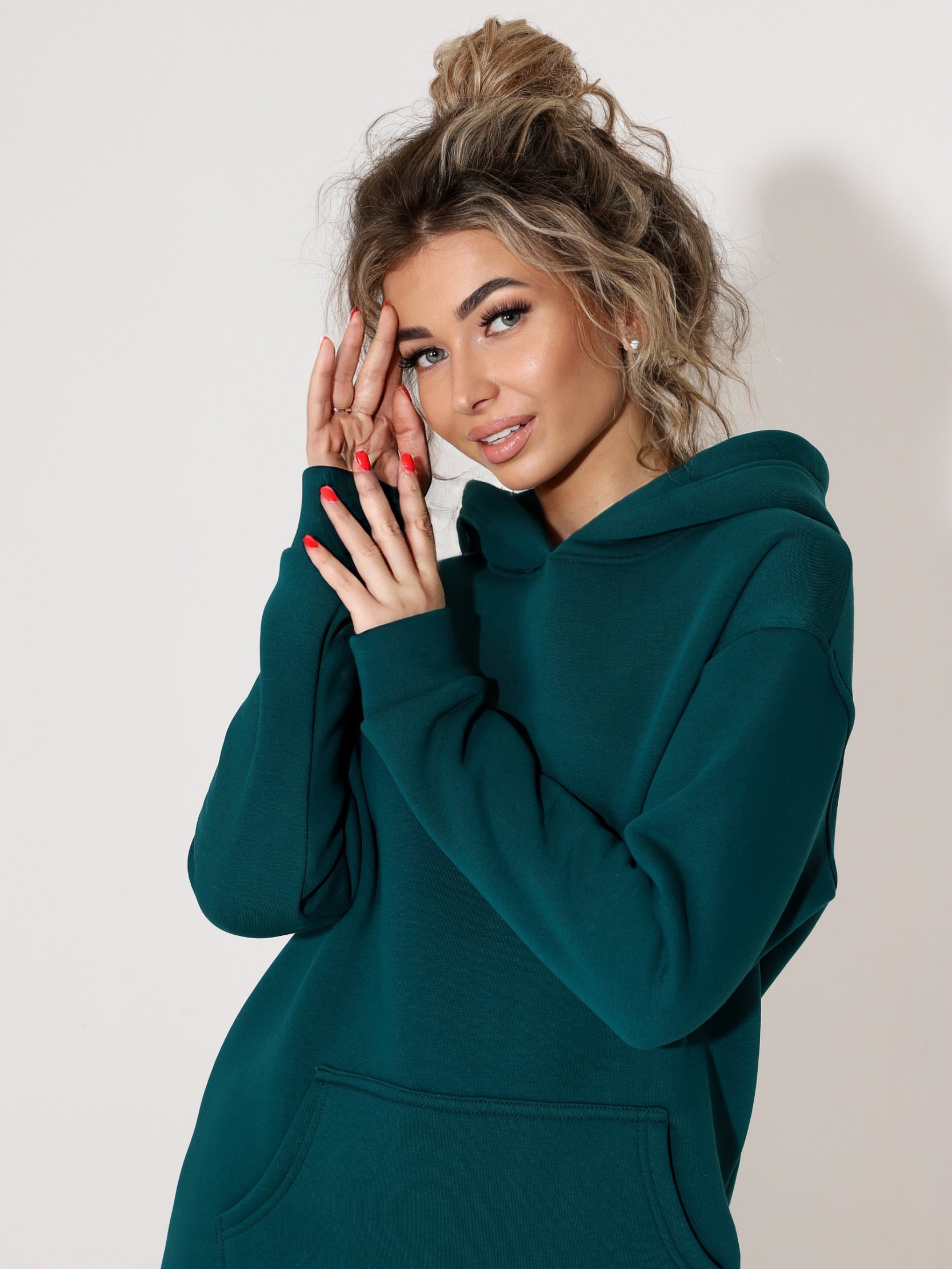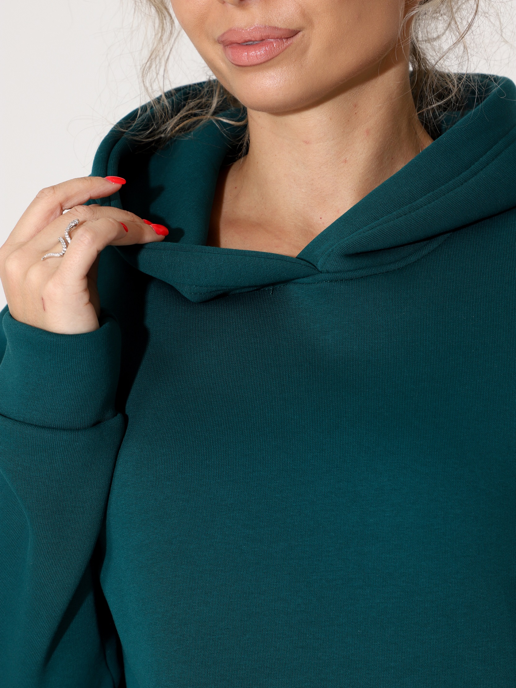 Теплый женский однотонный костюм из футера с начесом состоит из худи и брюк. Худи оверсайз с накладным карманом «Кенгуру». Капюшон двойной. Рукав со спущенным плечом и манжетой из основного материала. Стан с манжетой по низу из основного материала. Брюки-джоггеры с карманами завышенной талией .Благодаря удобной посадке, будет комфортно ноcить их каждый день. Низ брюк с манжетой из основного материала. Ткань футер с начесом очень приятная к телу, мягкая и гладкая. Натуральный хлопок с добавлением безопасных синтетических нитей прекрасно сохраняет форму, неприхотлив в уходе. Особая структура ворса и «начёс» внутри изделия позволяет девушке чувствовать себя словно в коконе. Это не только комфортно, но и тепло. Многие носят спортивный костюм в зимний период, не надевая термобелья или другого дополнительного слоя одежды. А для мамочек с детьми нет более комфортной одежды. Удобный крой позволит свободно играть с ребёнком на площадке.