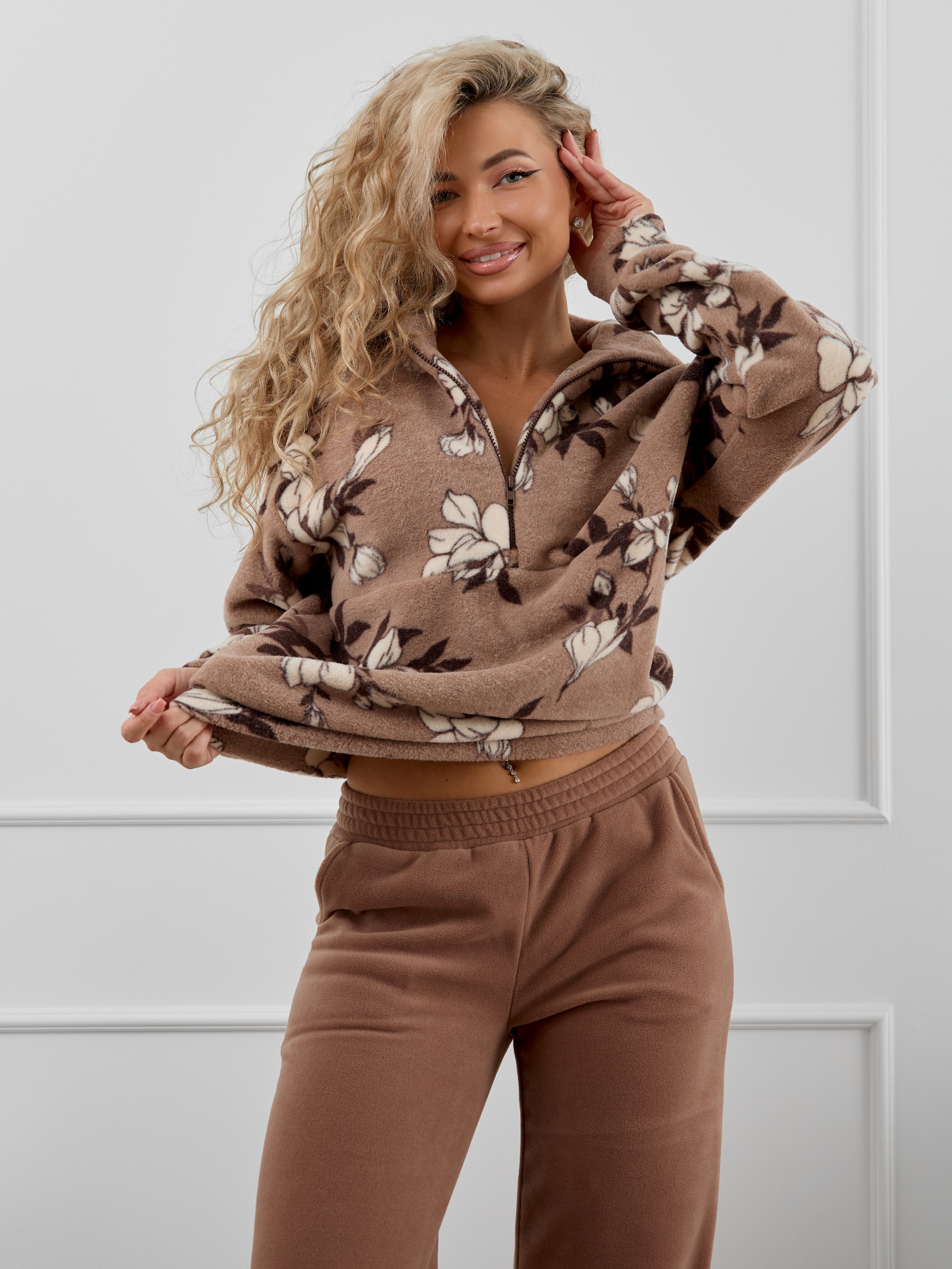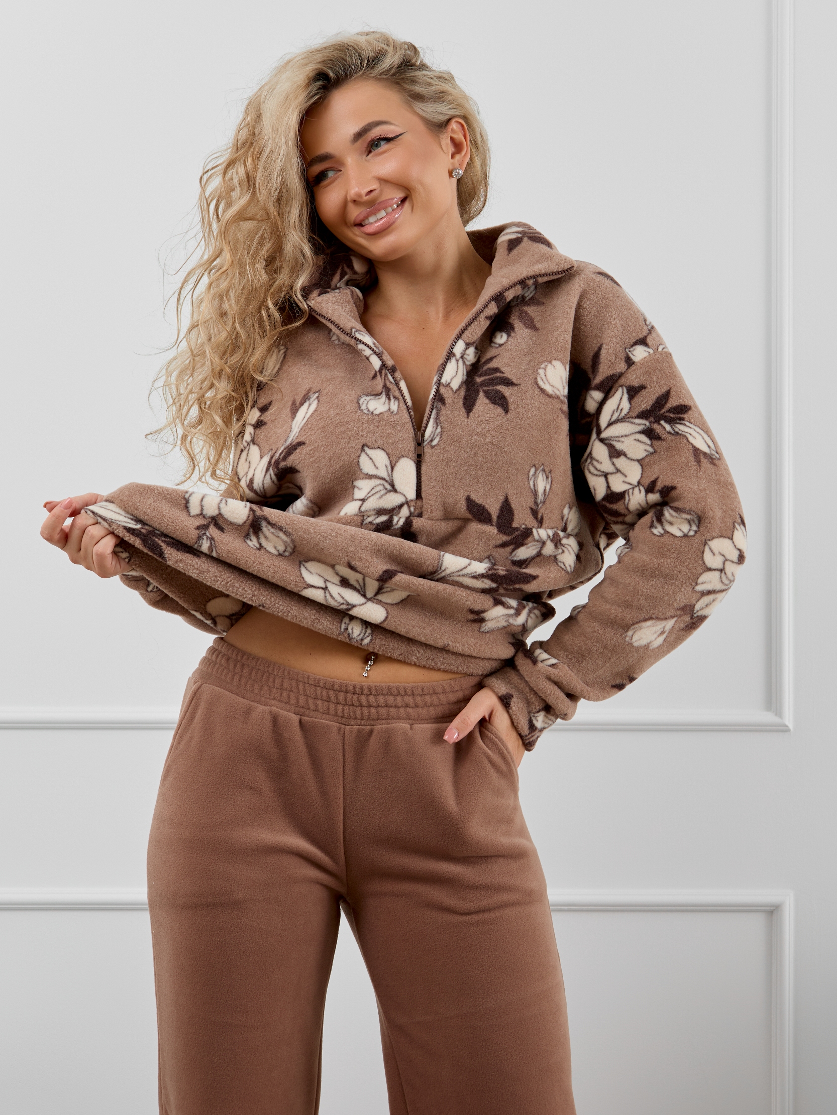 Женский флисовый костюм – стиль и тепло в одном комплекте. Мягкий и плотный флис надежно сохраняет тепло, делая костюм идеальным для холодной осени и зимы. Этот костюм - универсальное решение для различных ситуаций. Он может использоваться как пижама для сна и отдыха, как домашний костюм, а также как повседневная одежда для прогулок и спорта. Женский домашний костюм состоит из толстовки с воротником-стойкой на молнии и прямых брюк с карманами. Костюм сидит свободно и не сковывает движения, что делает его идеальным вариантом для активного образа жизни. Разнообразие расцветок и широкий размерный ряд позволит любой девушке и женщине подобрать себе и своим любимым подходящий флисовый спортивный костюм.