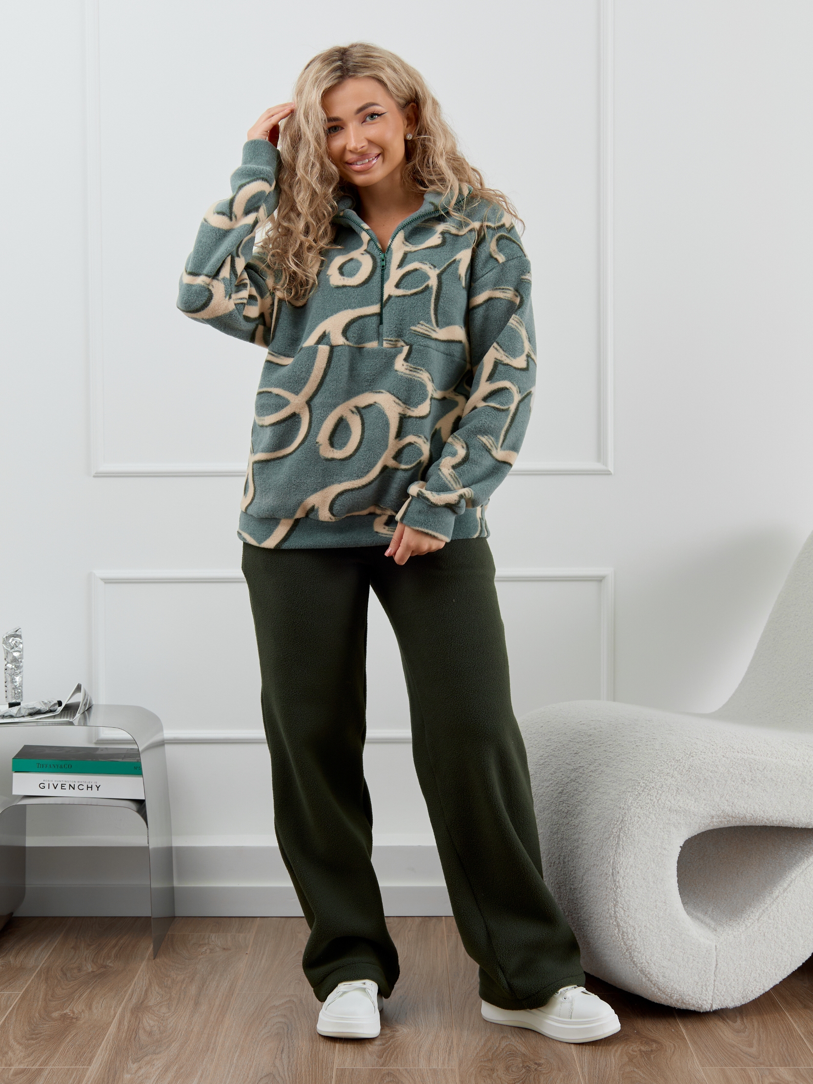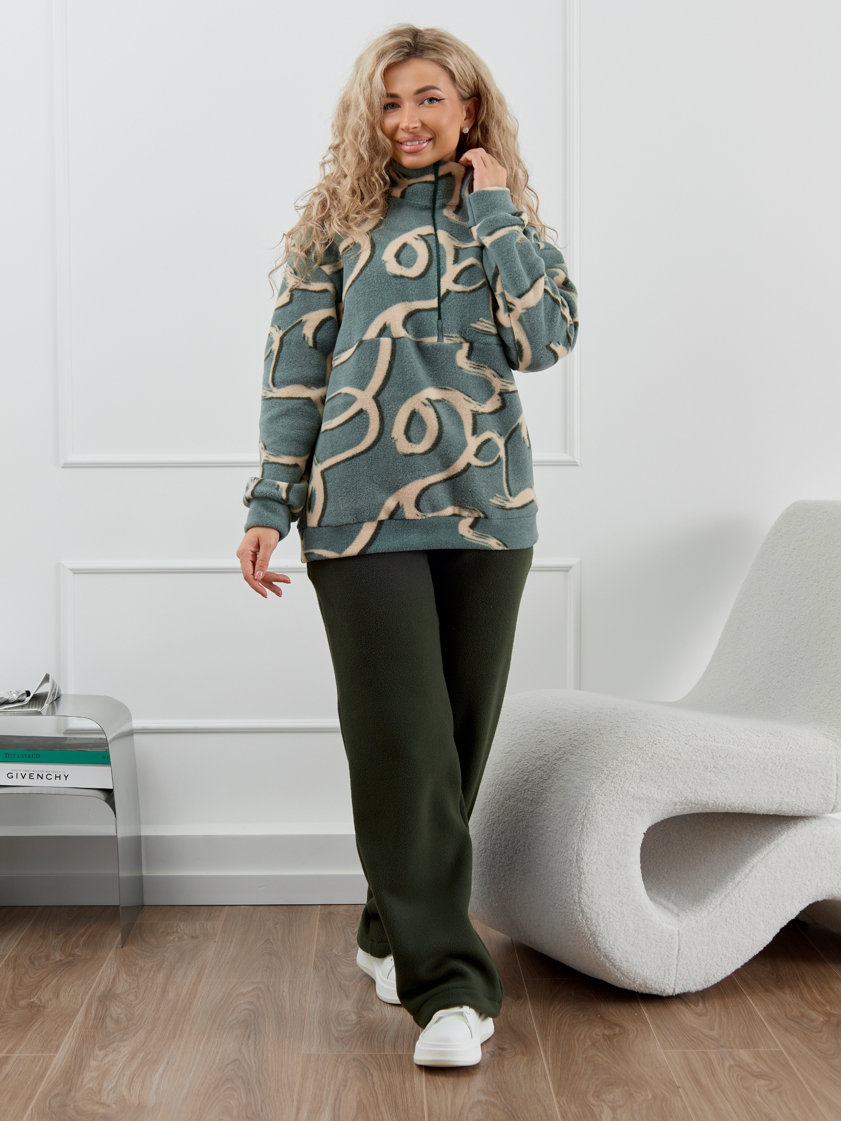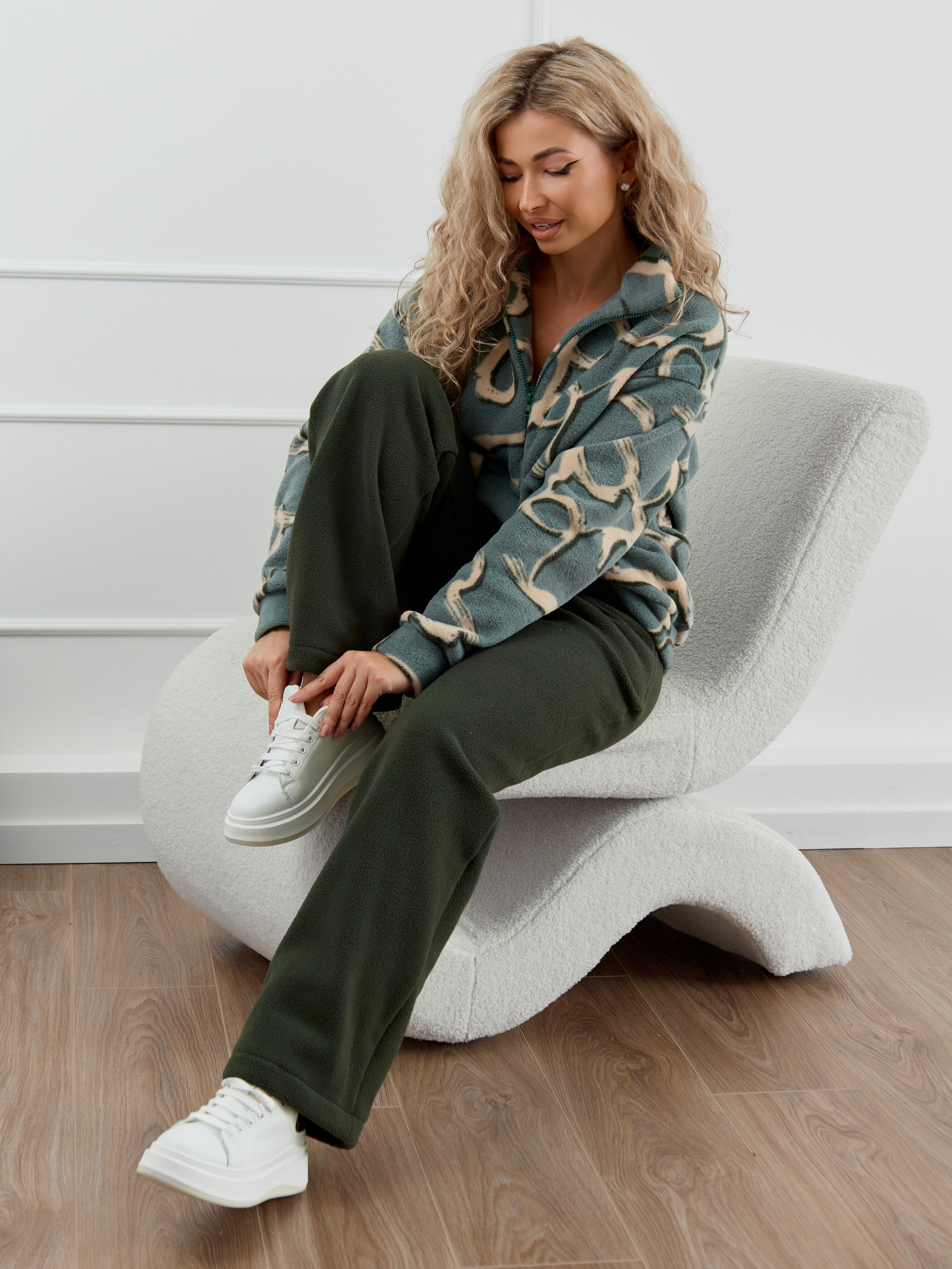 Женский флисовый костюм – стиль и тепло в одном комплекте. Мягкий и плотный флис надежно сохраняет тепло, делая костюм идеальным для холодной осени и зимы. Этот костюм - универсальное решение для различных ситуаций. Он может использоваться как пижама для сна и отдыха, как домашний костюм, а также как повседневная одежда для прогулок и спорта. Женский домашний костюм состоит из толстовки с воротником-стойкой на молнии и прямых брюк с карманами. Костюм сидит свободно и не сковывает движения, что делает его идеальным вариантом для активного образа жизни. Разнообразие расцветок и широкий размерный ряд позволит любой девушке и женщине подобрать себе и своим любимым подходящий флисовый спортивный костюм.