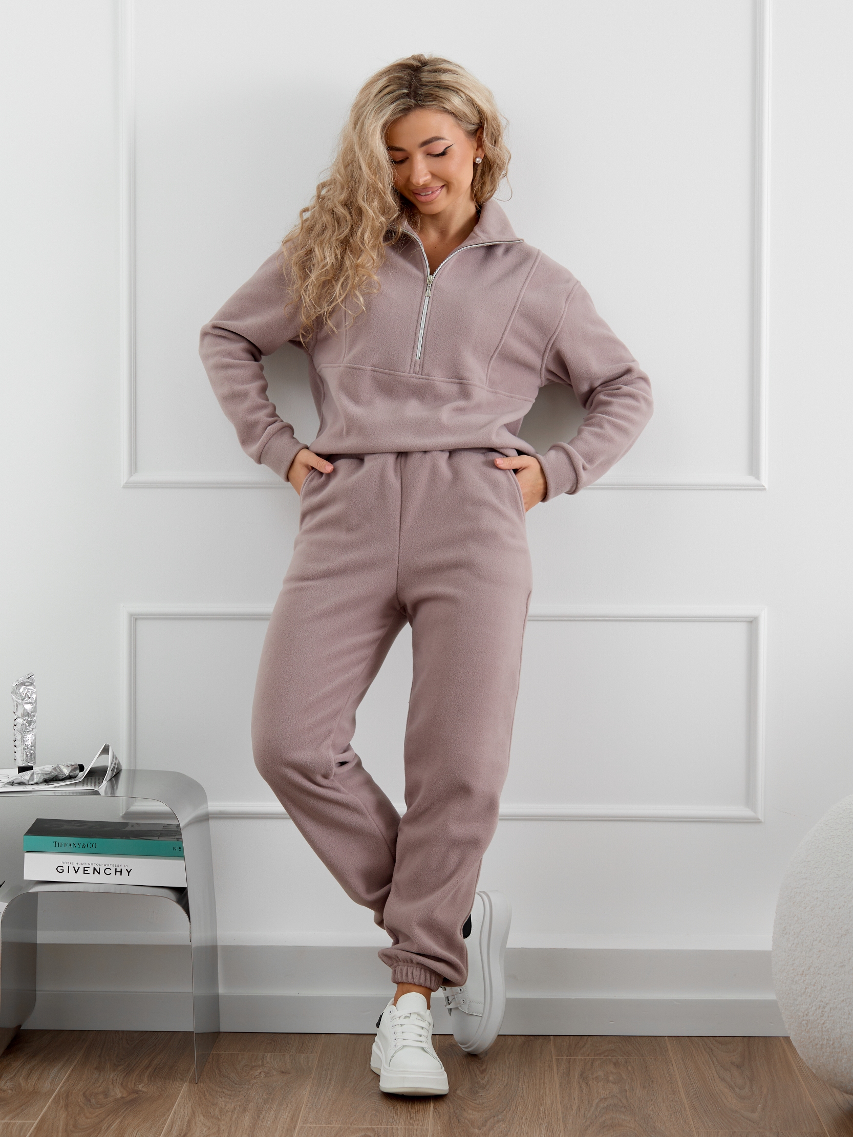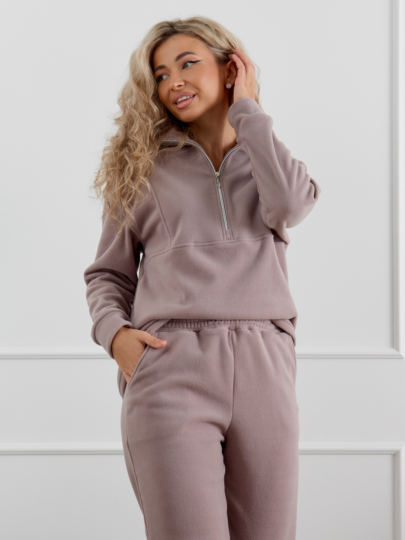 Флисовый спортивный костюм женский - выбор для комфортной осени! Он выполнен из высококачественного флисового материала. Флис отлично удерживает тепло и при этом обладает хорошей воздухопроницаемостью. Костюм из флиса также хорошо сохраняет свою форму и цвет после стирки, что позволяет вам наслаждаться своей покупкой долгое время. Женский флисовый костюм состоит из толстовки с воротником-стойкой на молнии и брюк джогеров. Костюм сидит свободно и не сковывает движения, что делает его идеальным вариантом для активного образа жизни. Женский флисовый спортивный костюм отлично подойдет для активного отдыха на природе, походов, а также как домашняя одежда. Благодаря широкому размерному ряду изделие можно подобрать как для стройных, так и для девушек и женщин больших размеров.