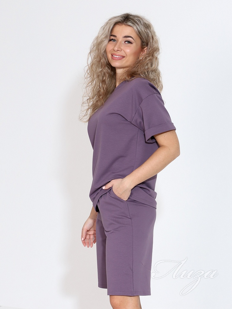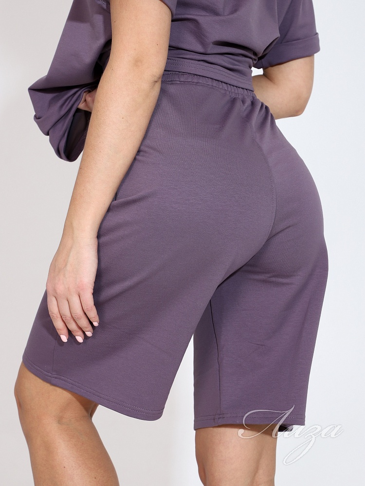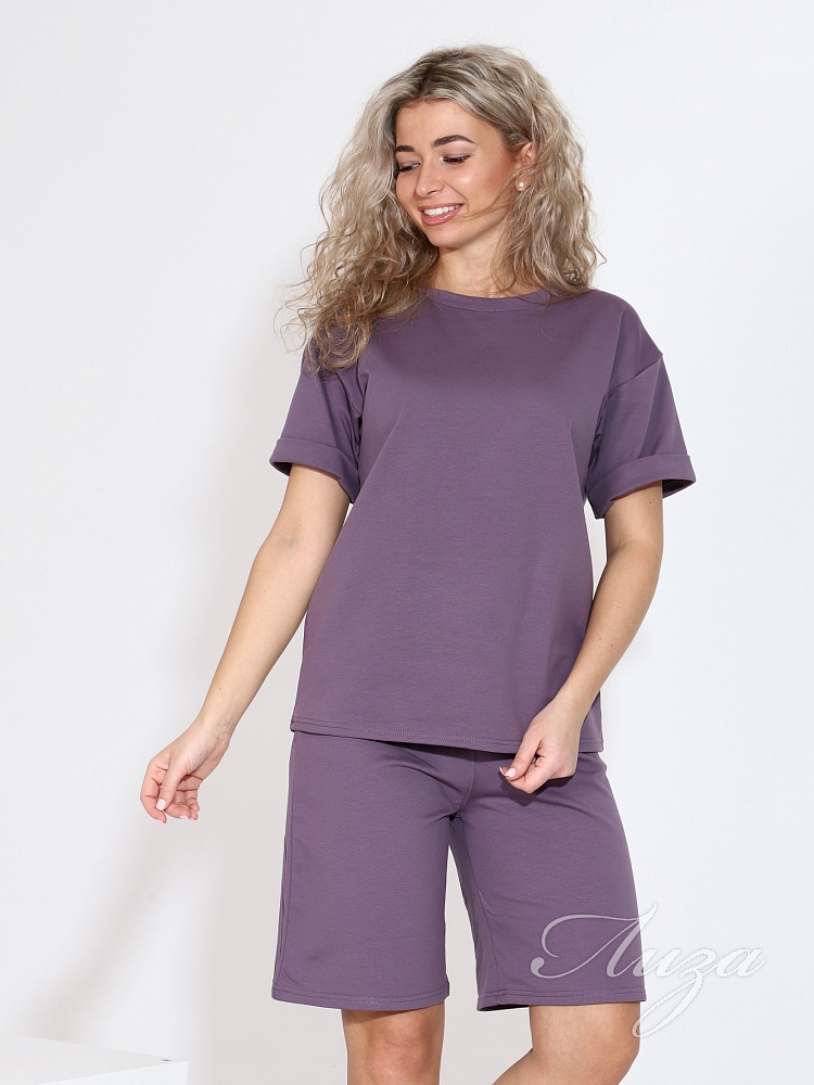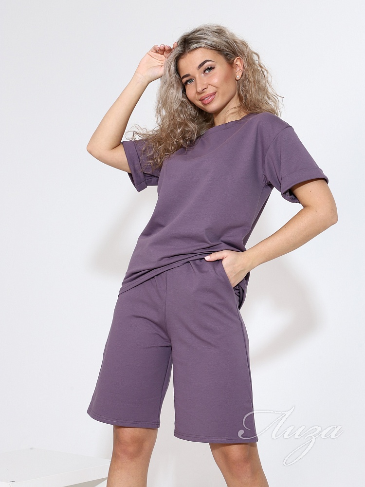Костюм женский с шортами-бермудами и футболкой. Изготовлен из качественного футера 2-х нитка. Ткань дышащая, приятная к телу, простая в уходе и после множества стирок не потеряет свой первоначальный вид и цвет.