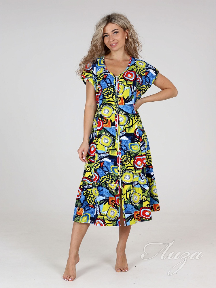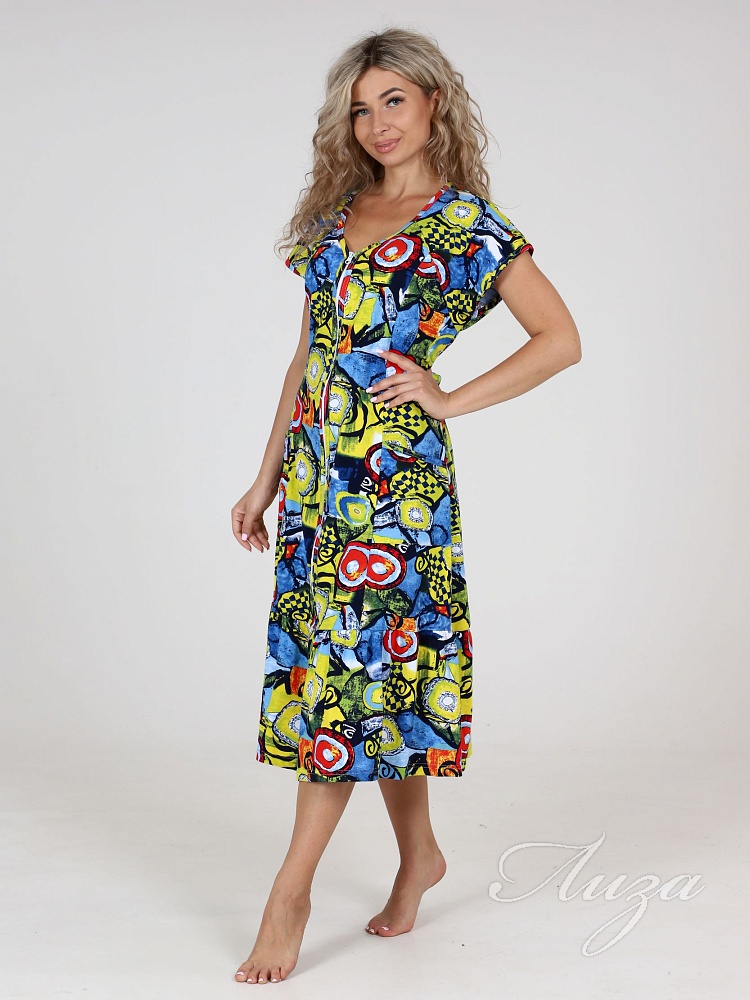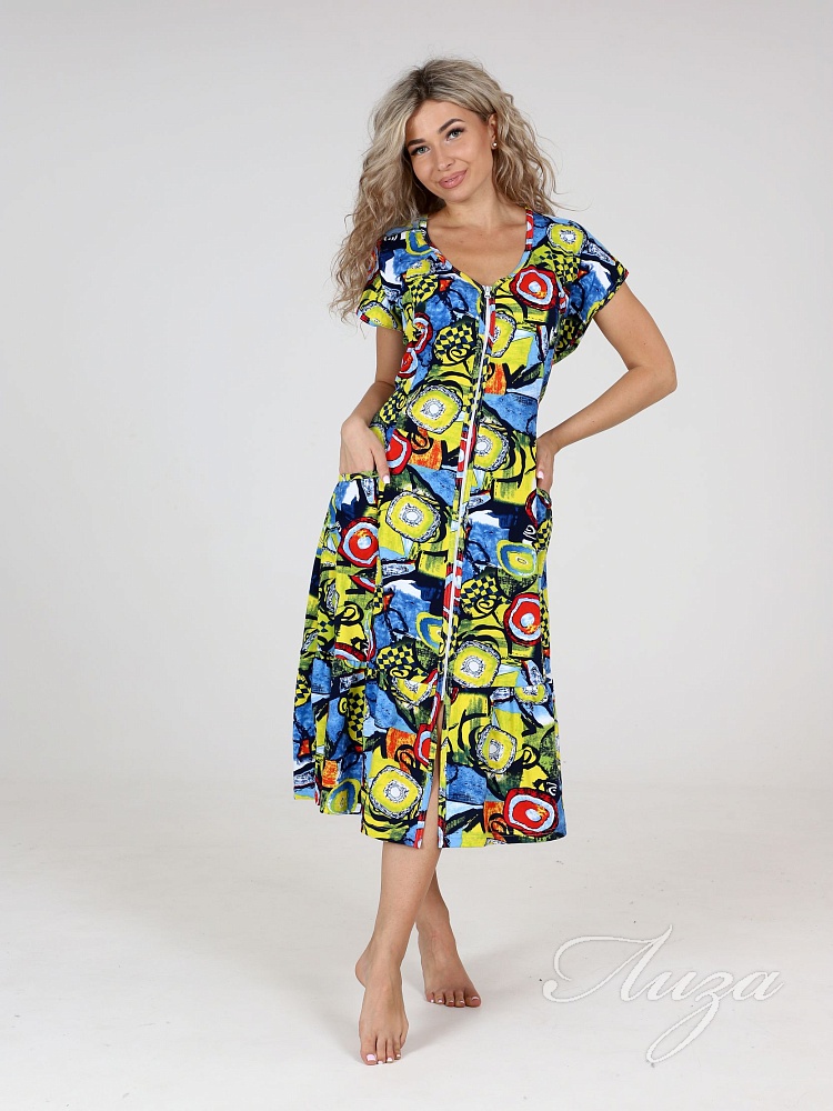 Женский трикотажный халат с центральной бортовой застёжкой на молнию,
