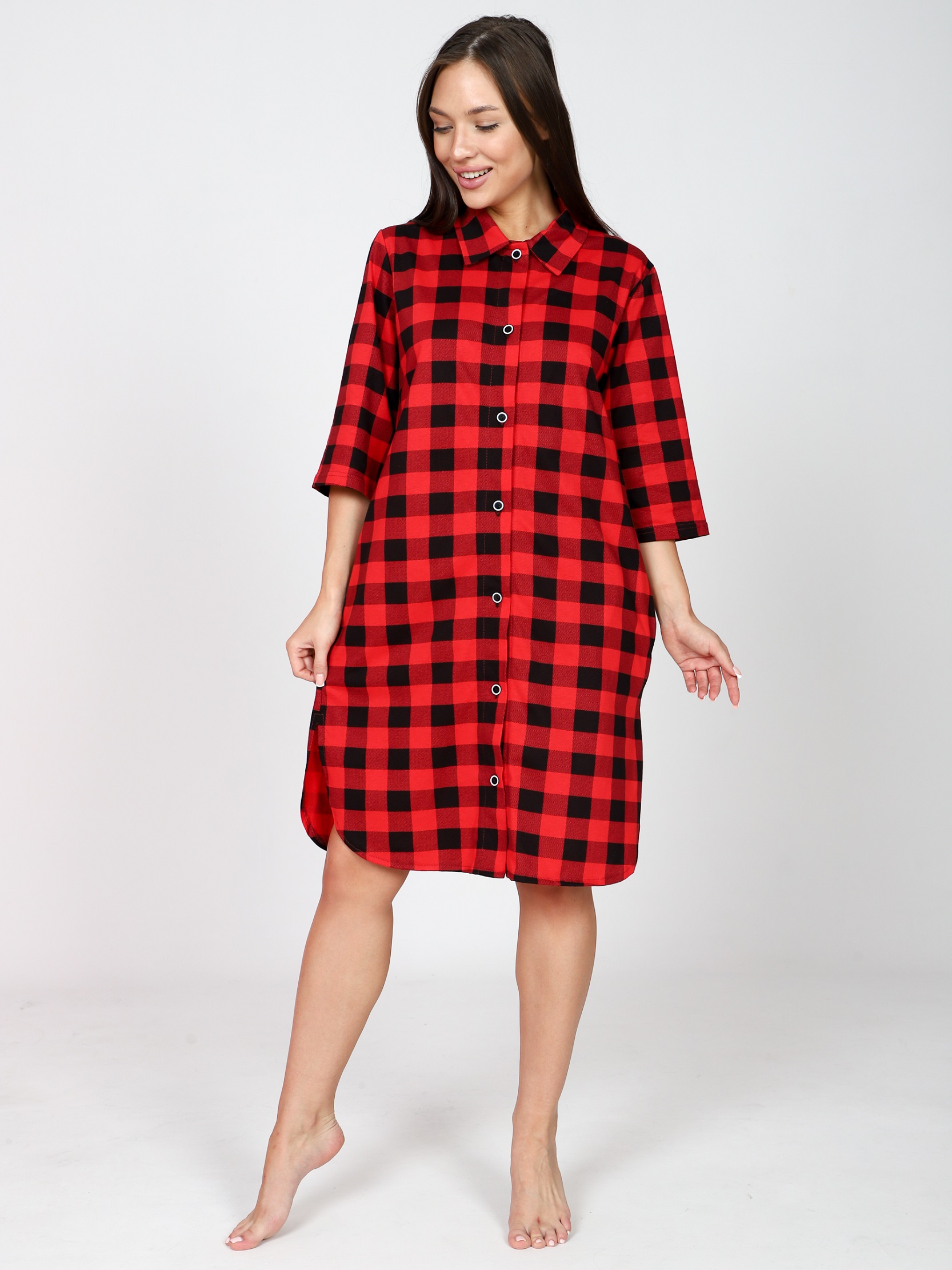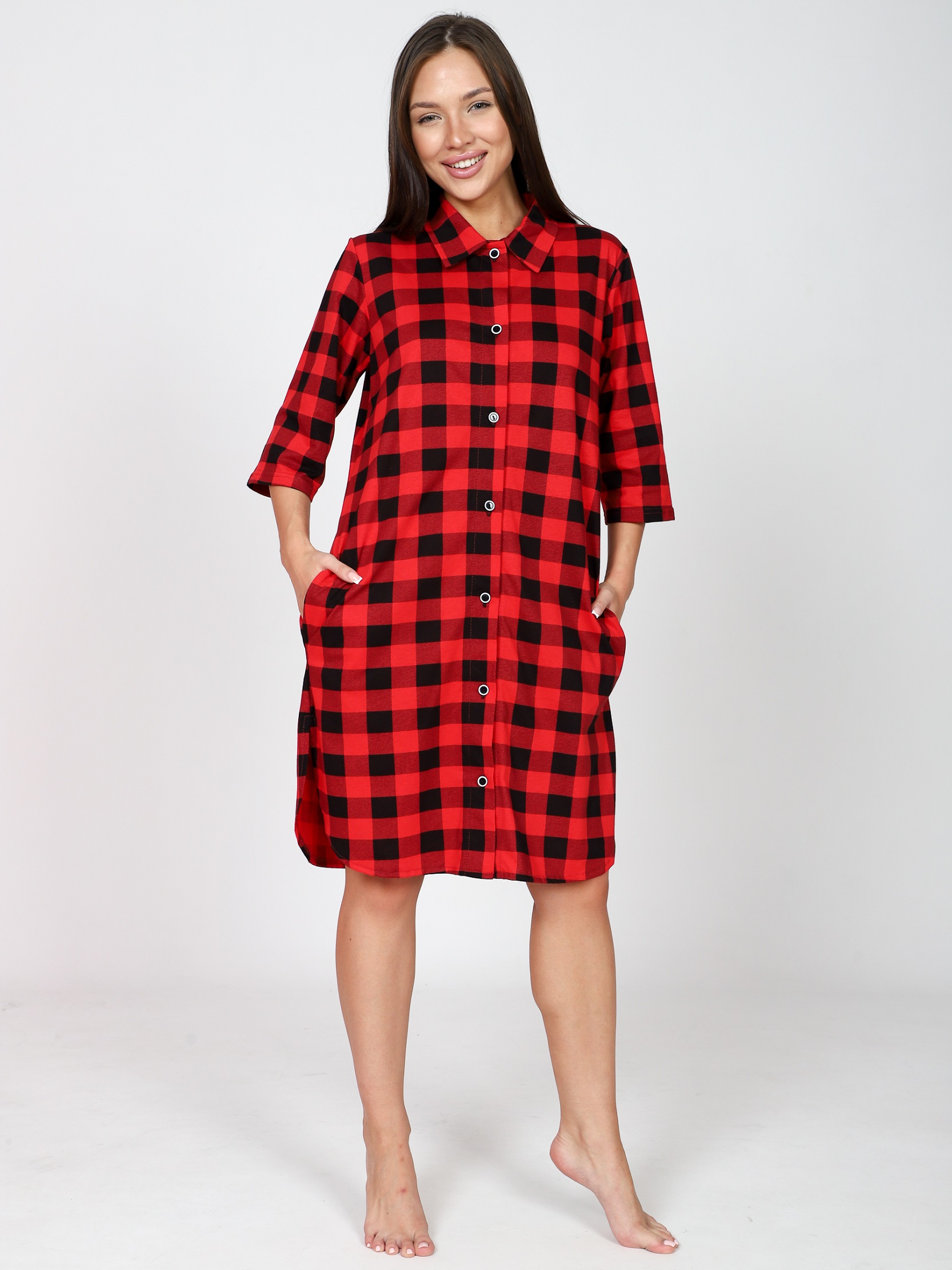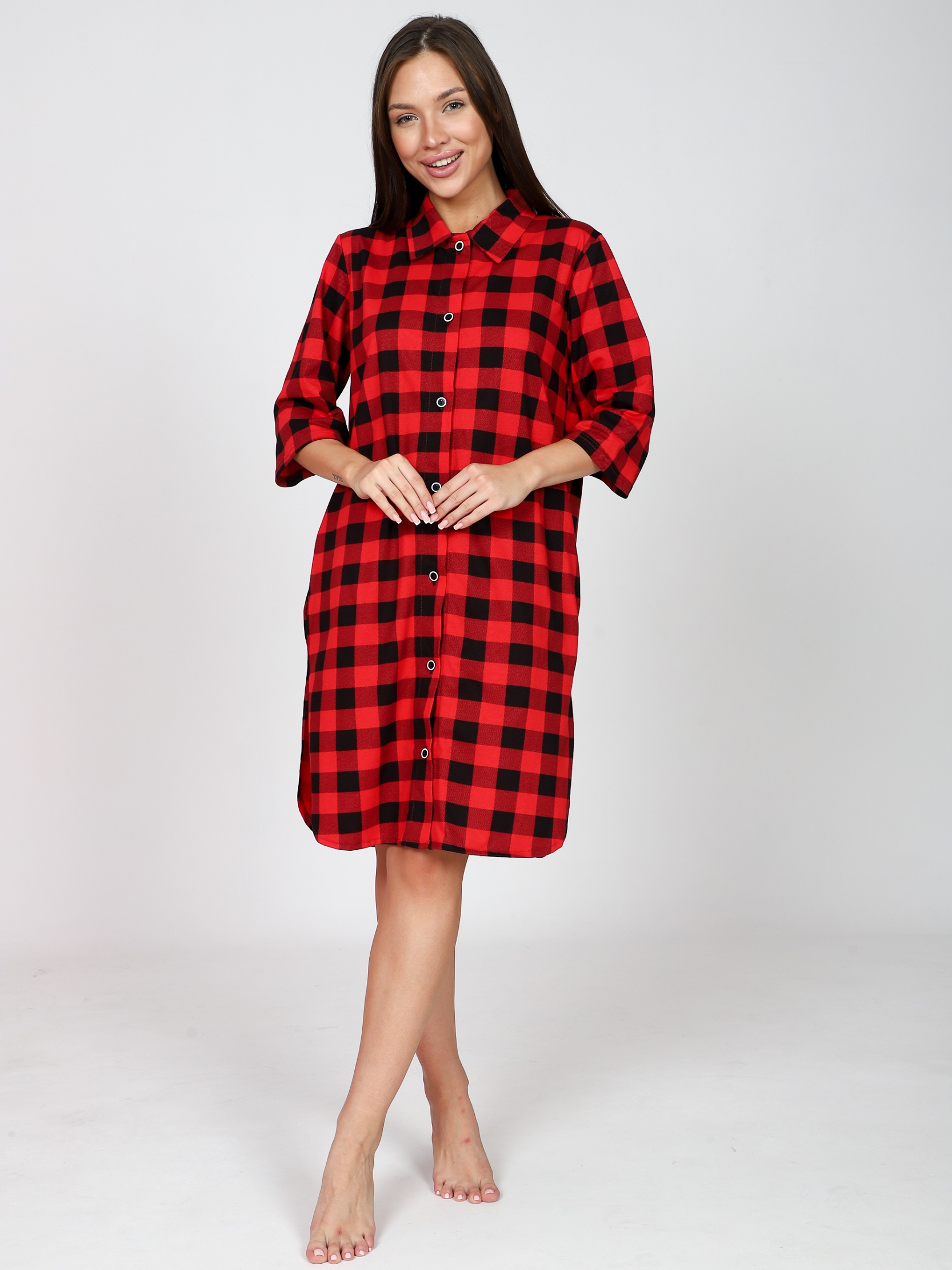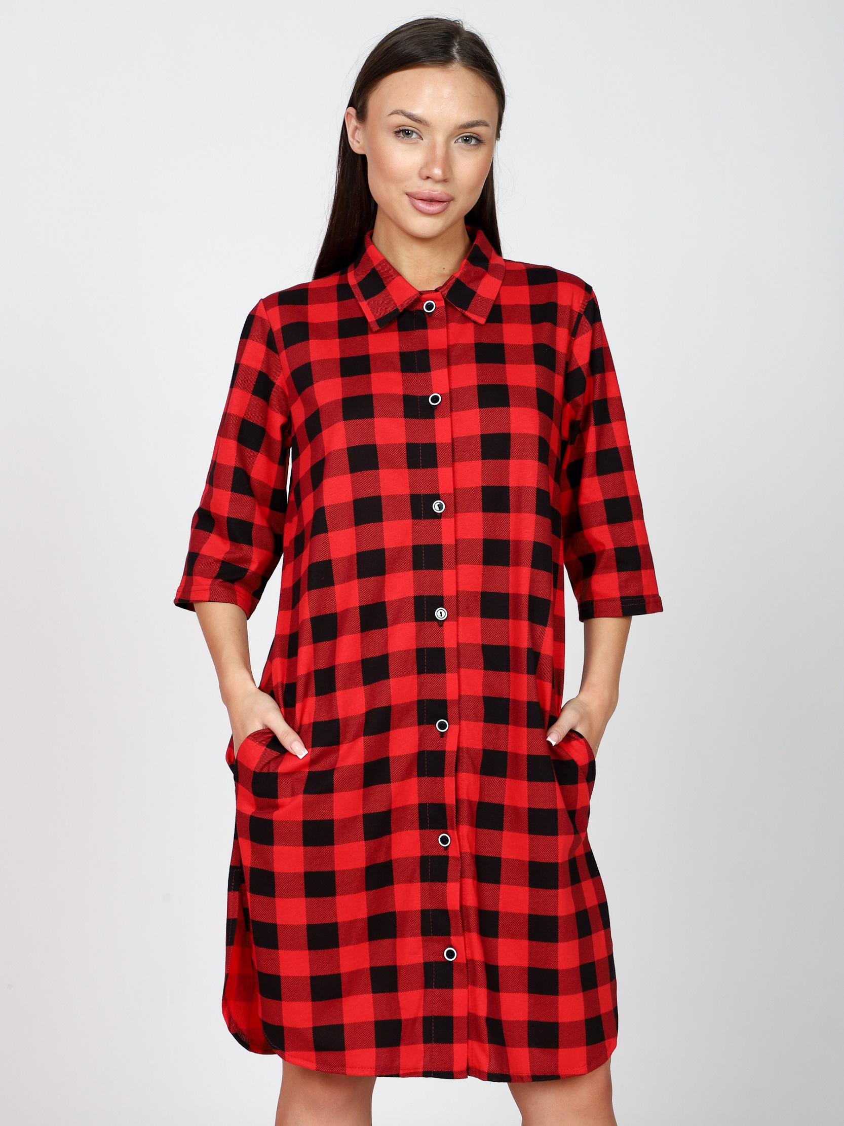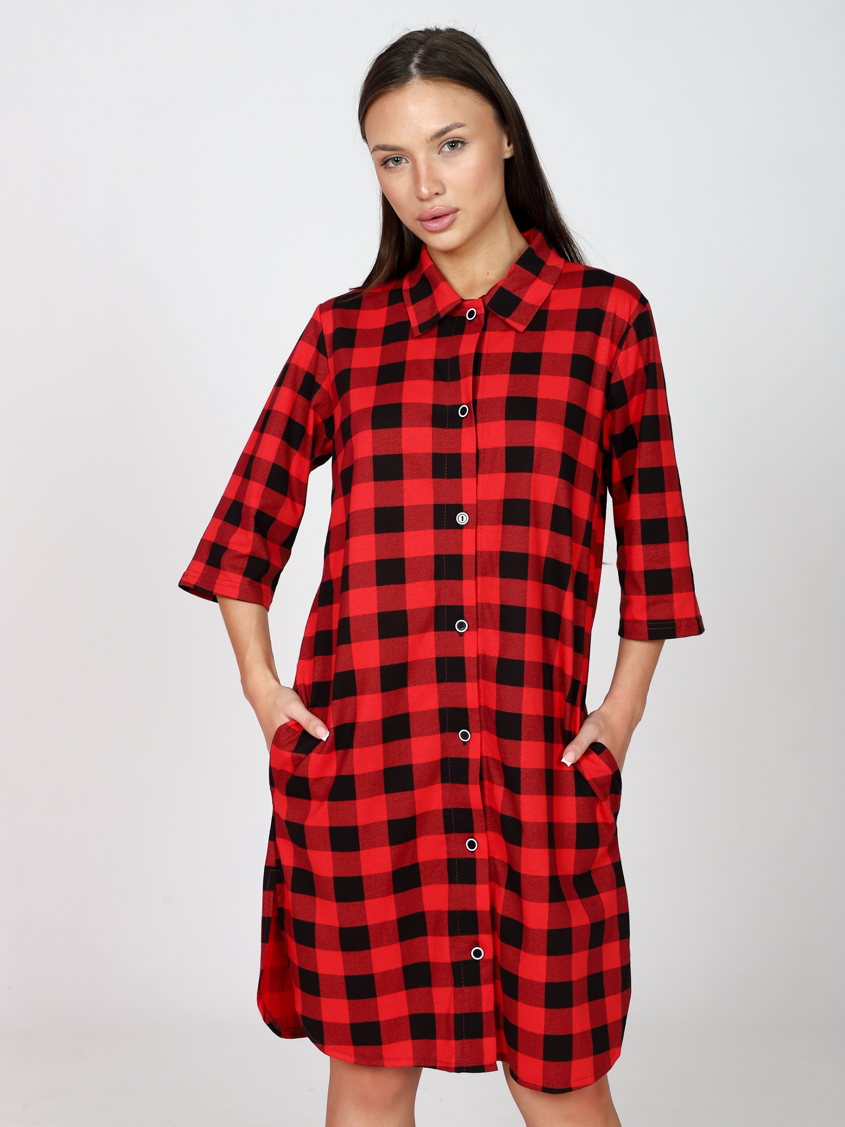 Главная >Каталог >Одежда из трикотажа >Халаты трикотажные >Халат - туника "Красная клетка" (М-679)