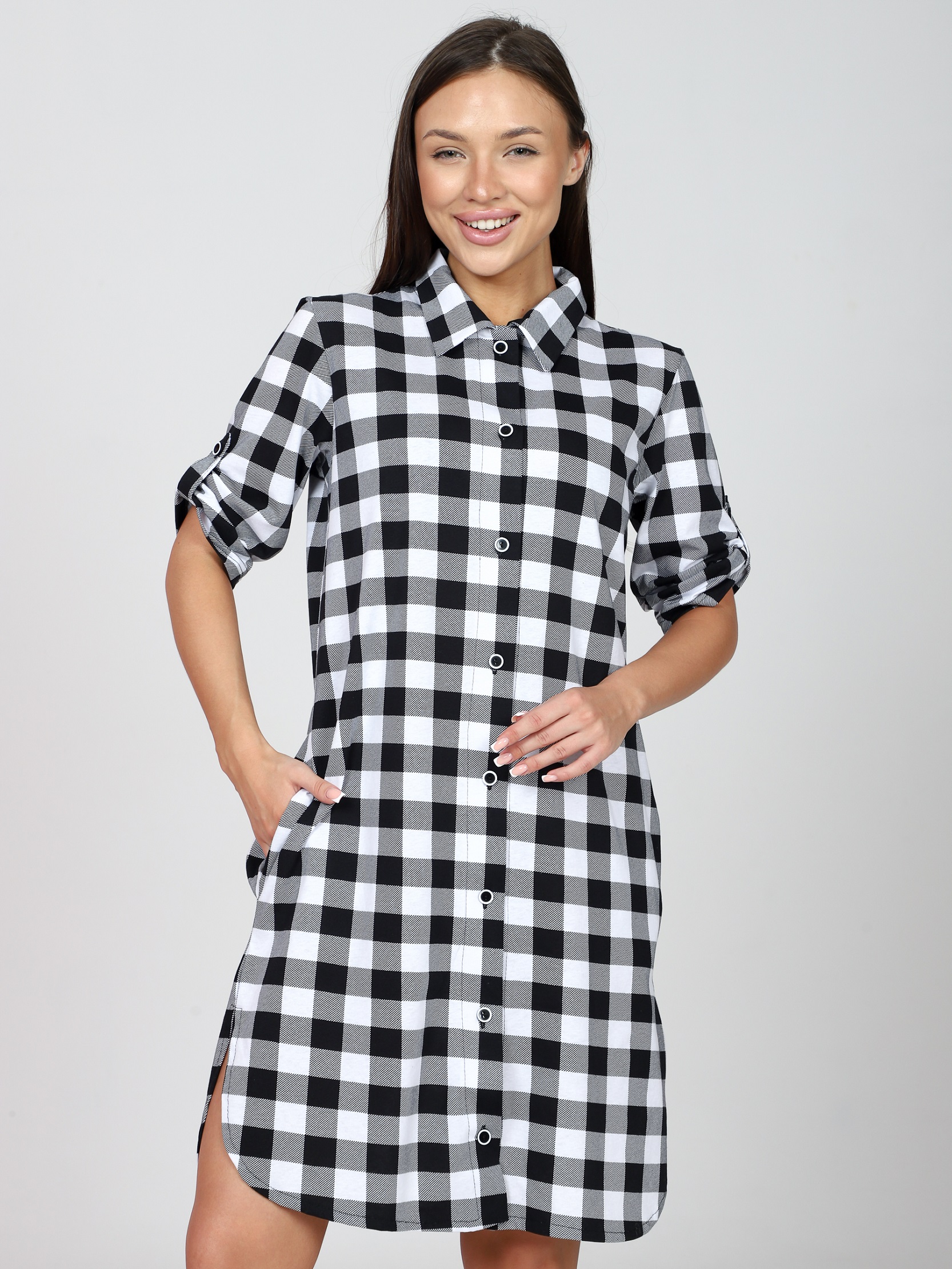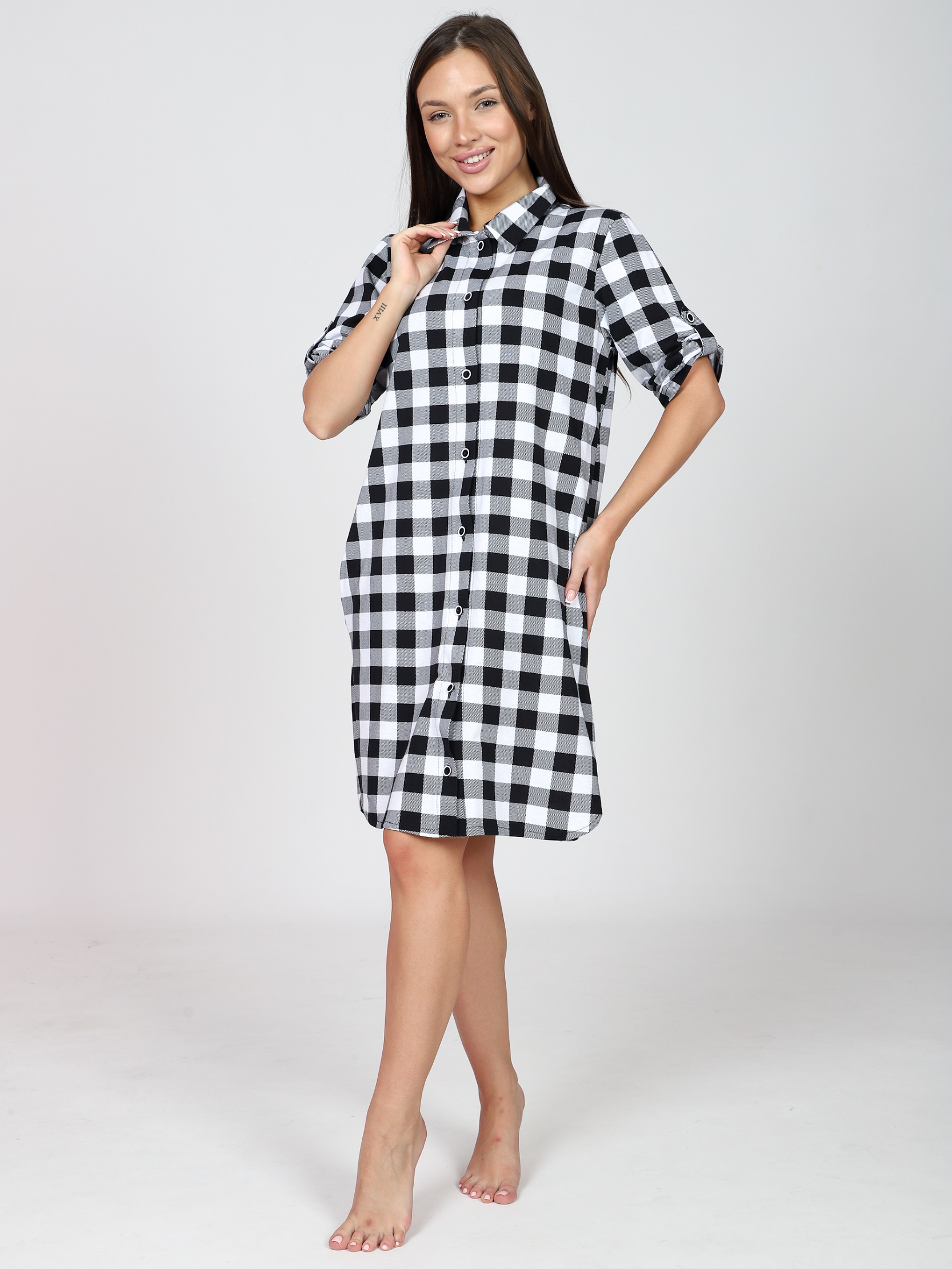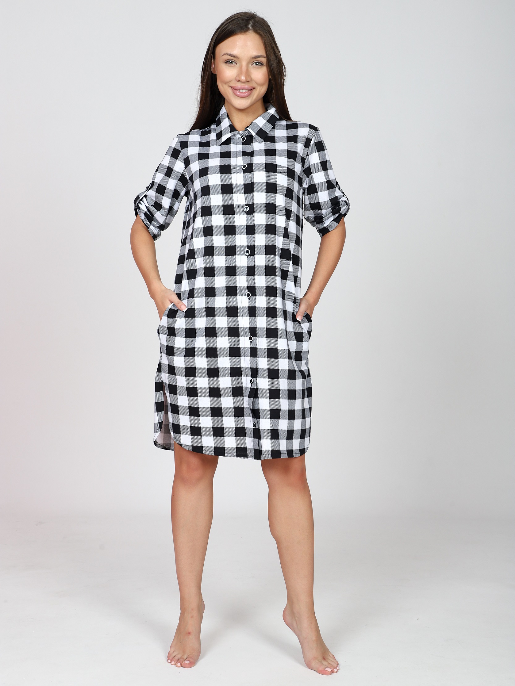 Главная >Каталог >Одежда из трикотажа >Халаты трикотажные >Халат - туника "Серая клетка" (М-679)