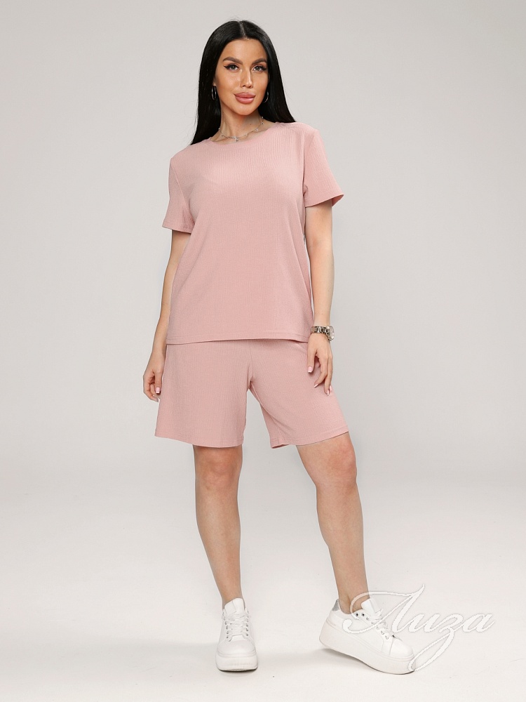 Женский костюм из жатки– отличный выбор для комфортного и стильного летнего образа. Летний, легкий костюм состоит из футболки и шорт с удобной посадкой и резинкой на поясе.