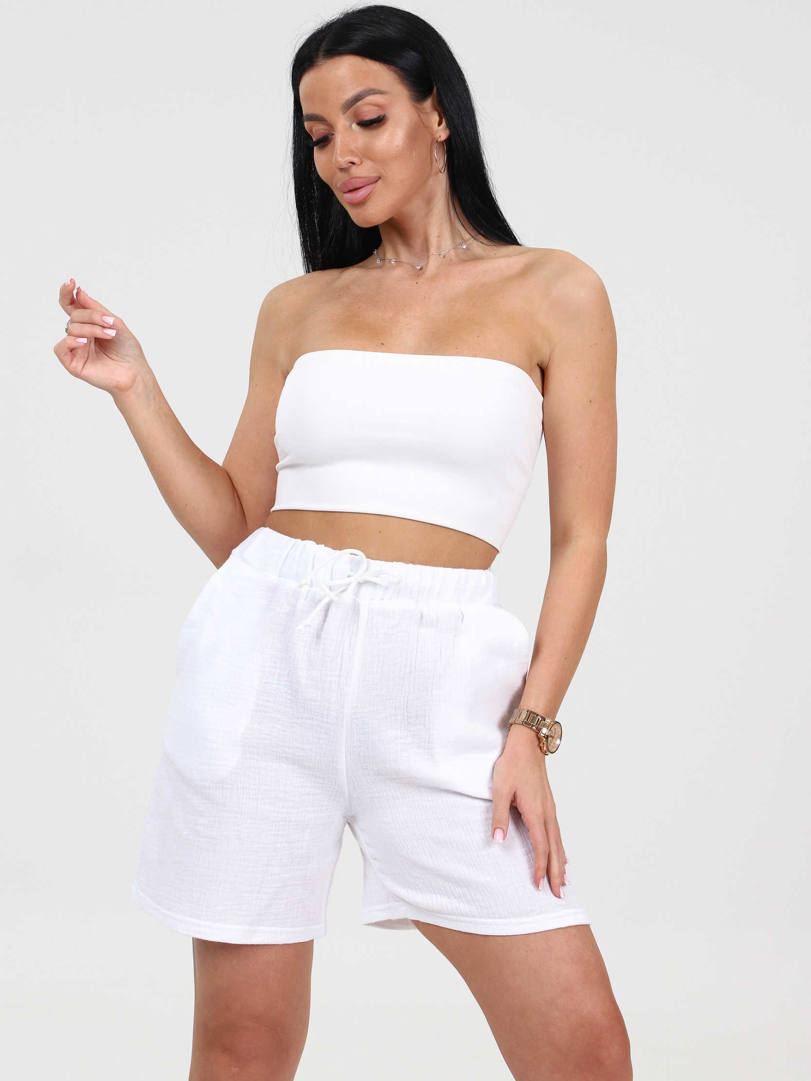 Главная >Каталог >Одежда из трикотажа >Майки и шорты >Бермуды трикотажные "Белые" (М-908)