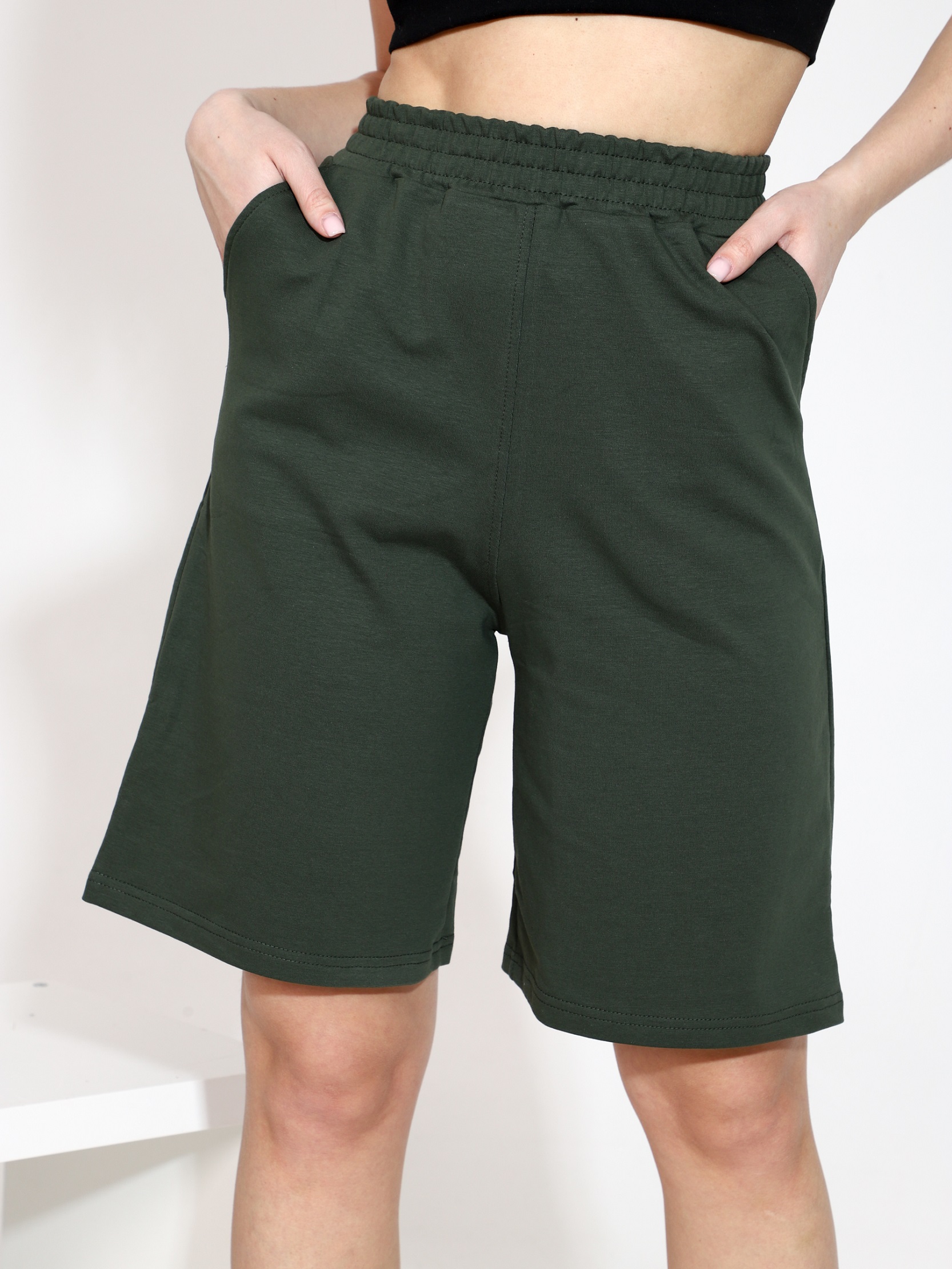Шорты - бермуды женские настоящая находка для девушек и женщин, ценящих комфорт, стильный внешний вид и безупречное качество. Бермуды отлично подойдут для летних прогулок, для активного отдыха, в качестве домашней одежды. Шорты женские с высокой посадкой выполненные из футера 2х-нитки. Мягкая эластичная резинка на поясе не врезается в талию, обеспечивая комфортные ощущения при носке в течение всего дня. Бермуды женские трикотажные имеют боковые карманы, благодаря которым удобно держать нужные вещи всегда под рукой. Удлиненные шорты из футера двунитки будут идеальным выбором для активных людей, которые ценят комфорт и стиль. Шорты женские летние имеют высокую посадку, удачный крой, выгодно подчеркнут фигуру и помогут оставаться женственной. Благодаря широкому размерному ряду изделие можно подобрать как для стройных, так и для девушек и женщин больших размеров.