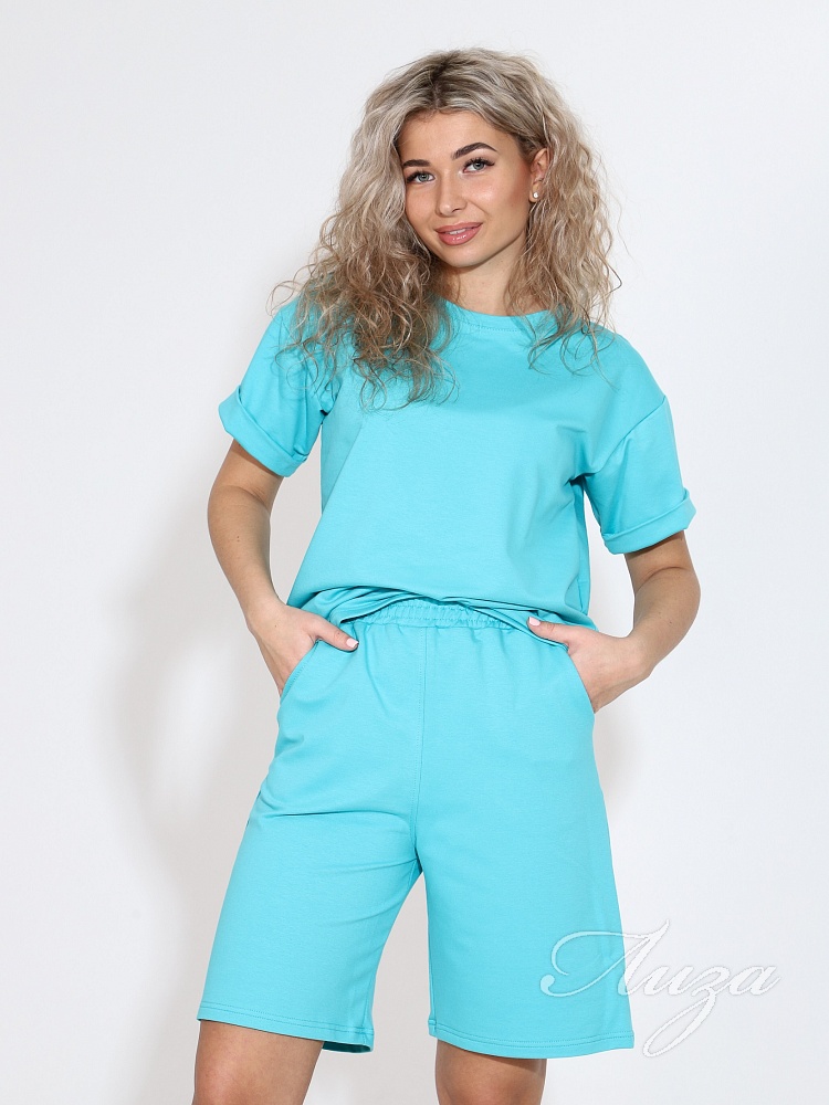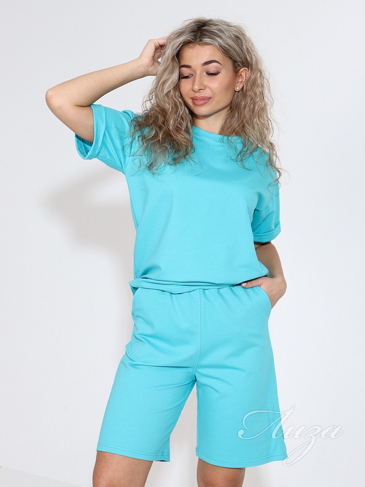 Костюм женский с шортами-бермудами и футболкой. Изготовлен из качественного футера 2-х нитка. Ткань дышащая, приятная к телу, простая в уходе и после множества стирок не потеряет свой первоначальный вид и цвет.