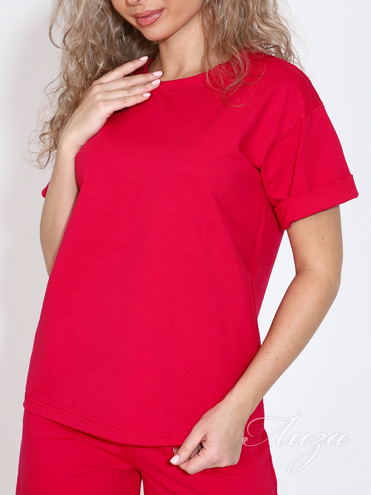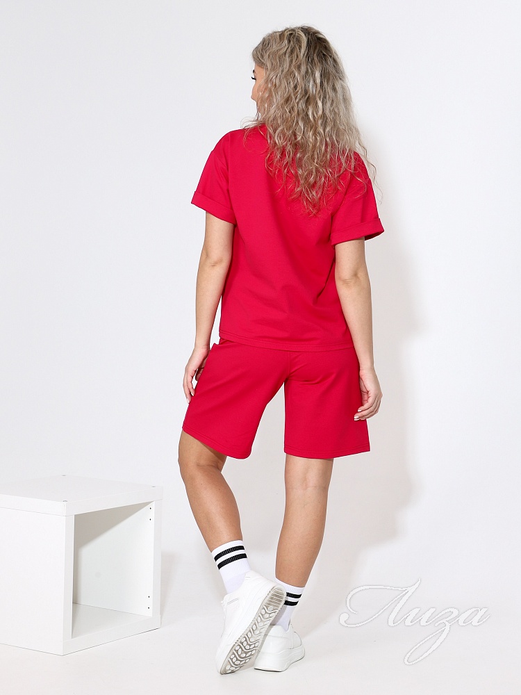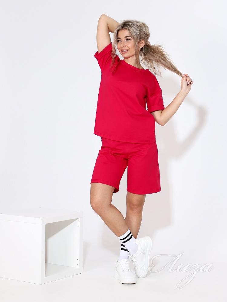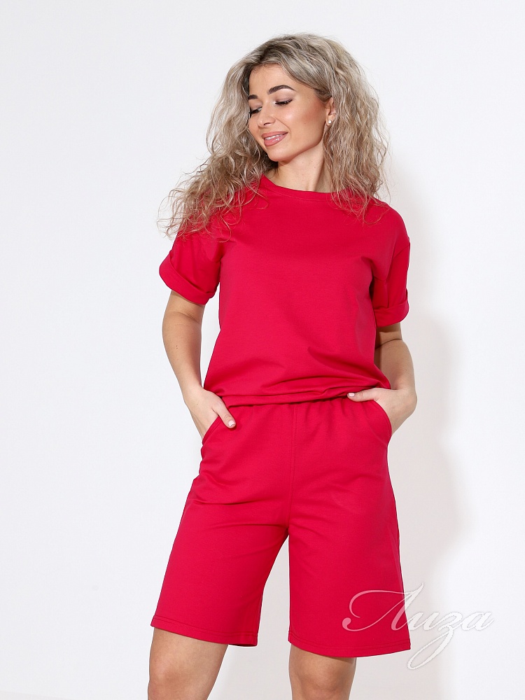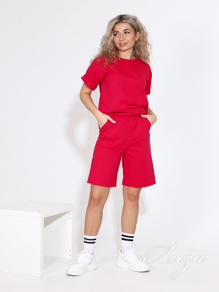Костюм женский с шортами-бермудами и футболкой. Изготовлен из качественного футера 2-х нитка. Ткань дышащая, приятная к телу, простая в уходе и после множества стирок не потеряет свой первоначальный вид и цвет.