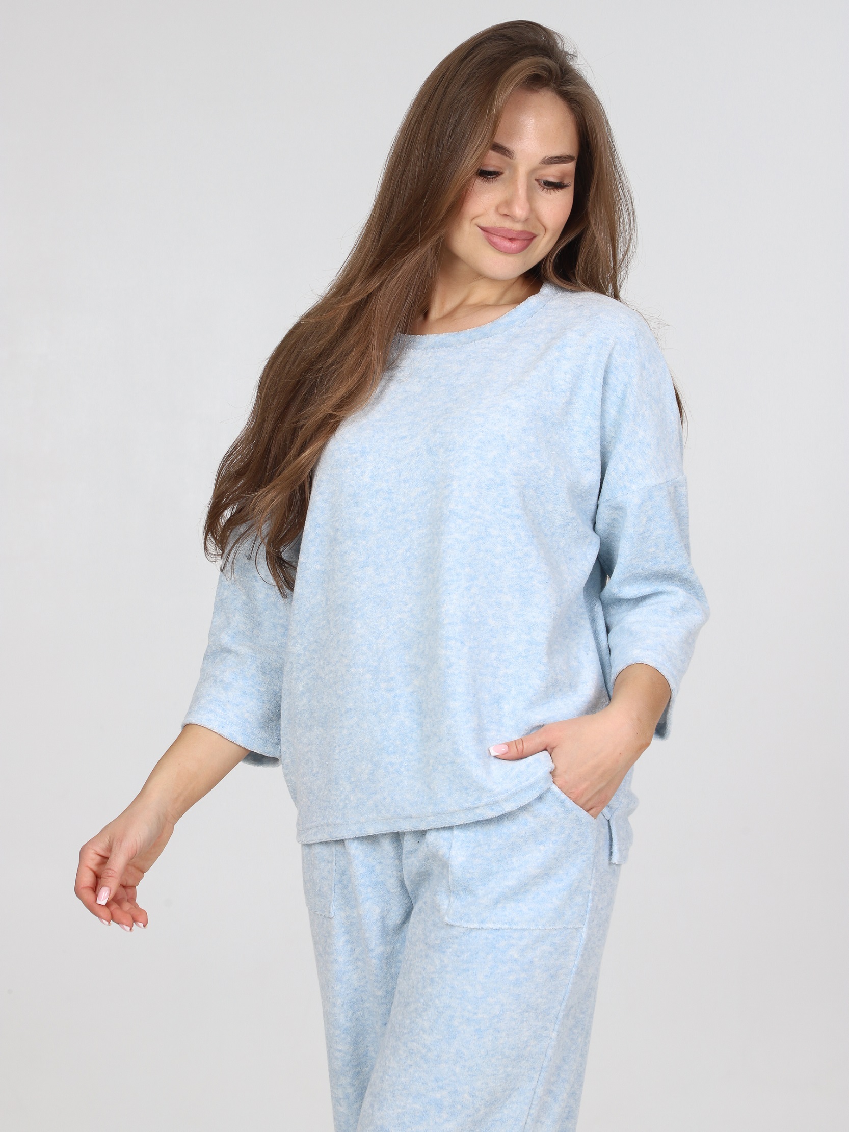Костюм из облегчённой махры – это идеальный вариант для тех, кто ищет комфорт и стиль в одежде. Облегчённая махра является очень мягкой и приятной на ощупь, что делает этот костюм идеальным для домашнего отдыха. Изделия из этой ткани отлично сохраняет тепло, при этом обеспечивая отличную циркуляцию воздуха, что делает его подходящим для носки как в холодные, так и в тёплые дни. Одежда из облегченной махры легко стирается и гладится, не теряет форму.