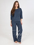 Костюм с кофтой и брюками-палаццо прекрасно подойдет в качестве костюма для дома. Джемпер со спущенным рукавом 3/4 и удлиненной спинкой. Брюки свободного кроя, с карманами. На поясе брюк - контрастная резинка.