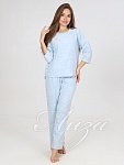 Костюм с кофтой и брюками-палаццо прекрасно подойдет в качестве костюма для дома. Джемпер со спущенным рукавом 3/4 и удлиненной спинкой. Брюки свободного кроя, с карманами. На поясе брюк - контрастная резинка.