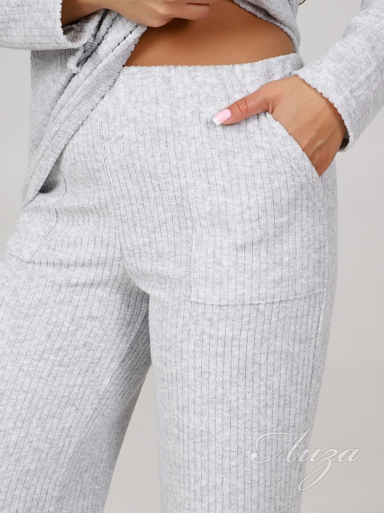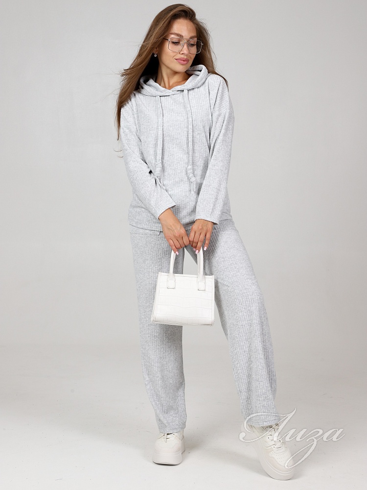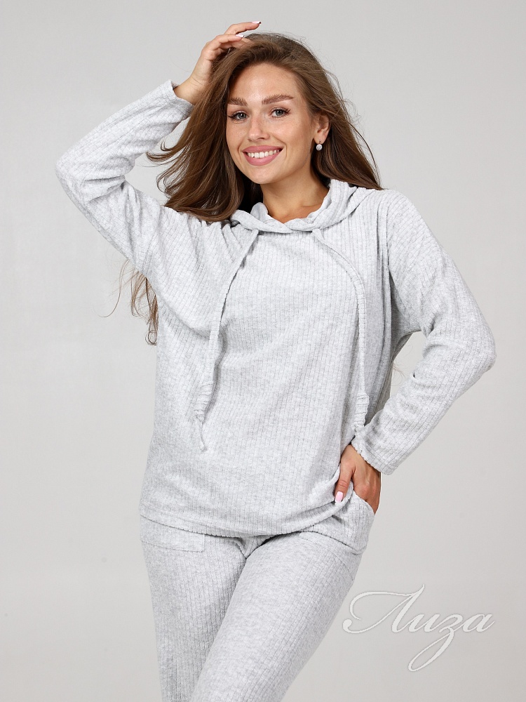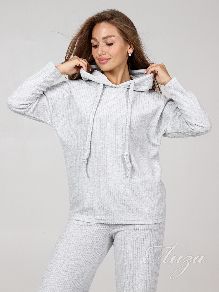 Махровый костюм в рубчик - это великолепное сочетание уюта, тепла и стиля, которое идеально подходит для дома. Костюм состоит из худи свободного кроя с длинным рукавом со спущенным плечом и брюк прямого кроя с карманами.