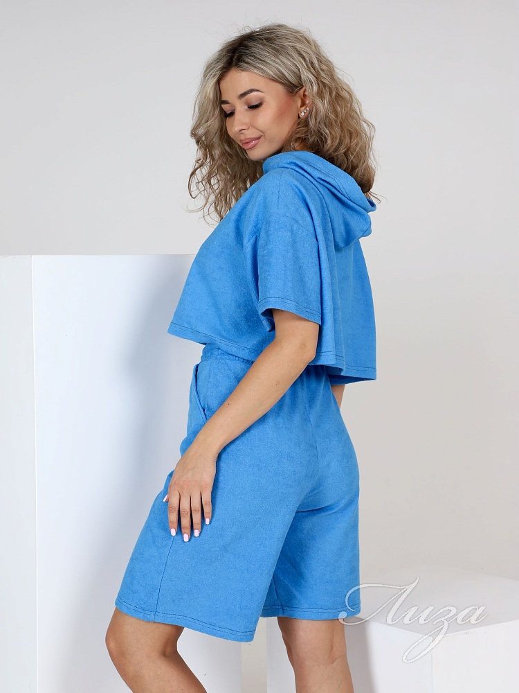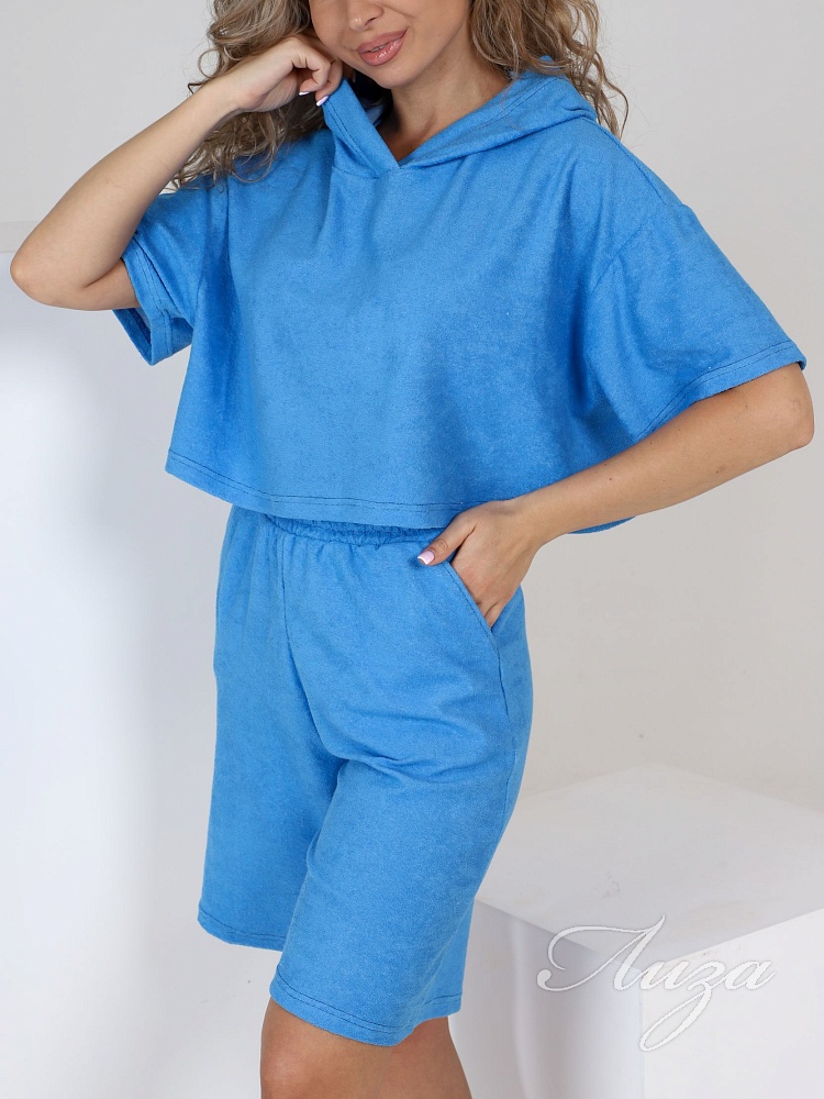 Пижама кроп-топ с шортами "Неженка" лазурная (М-865)