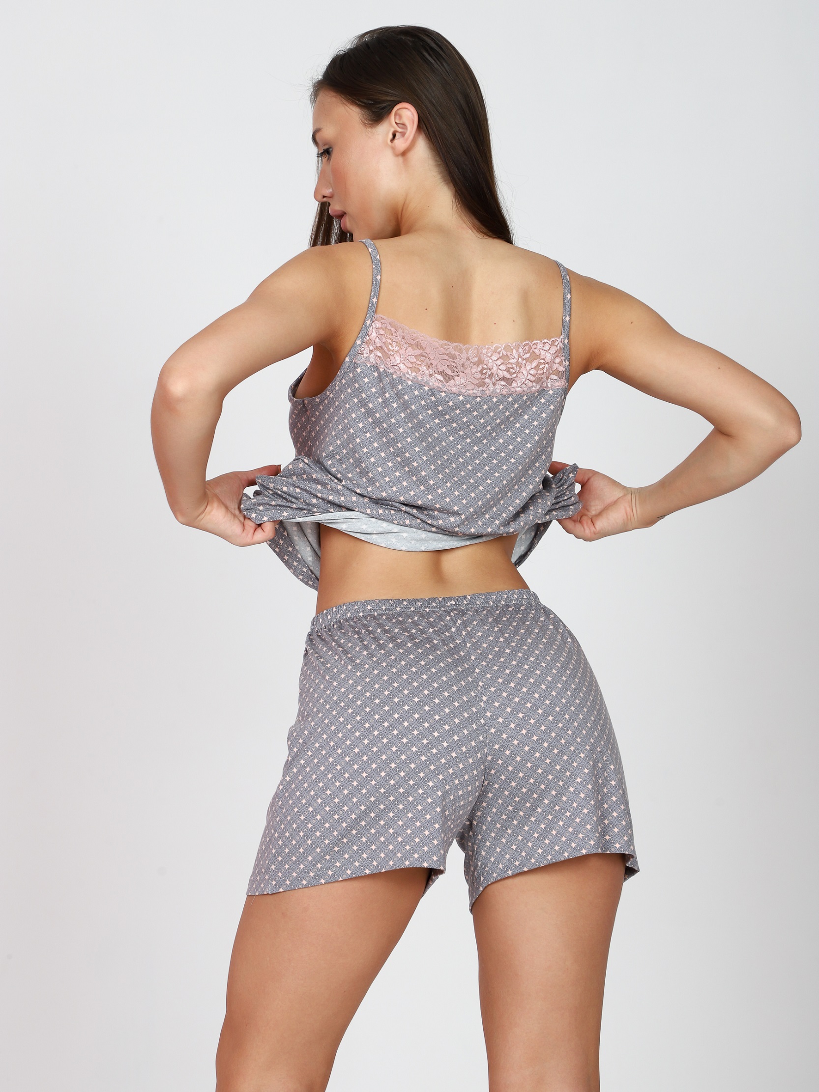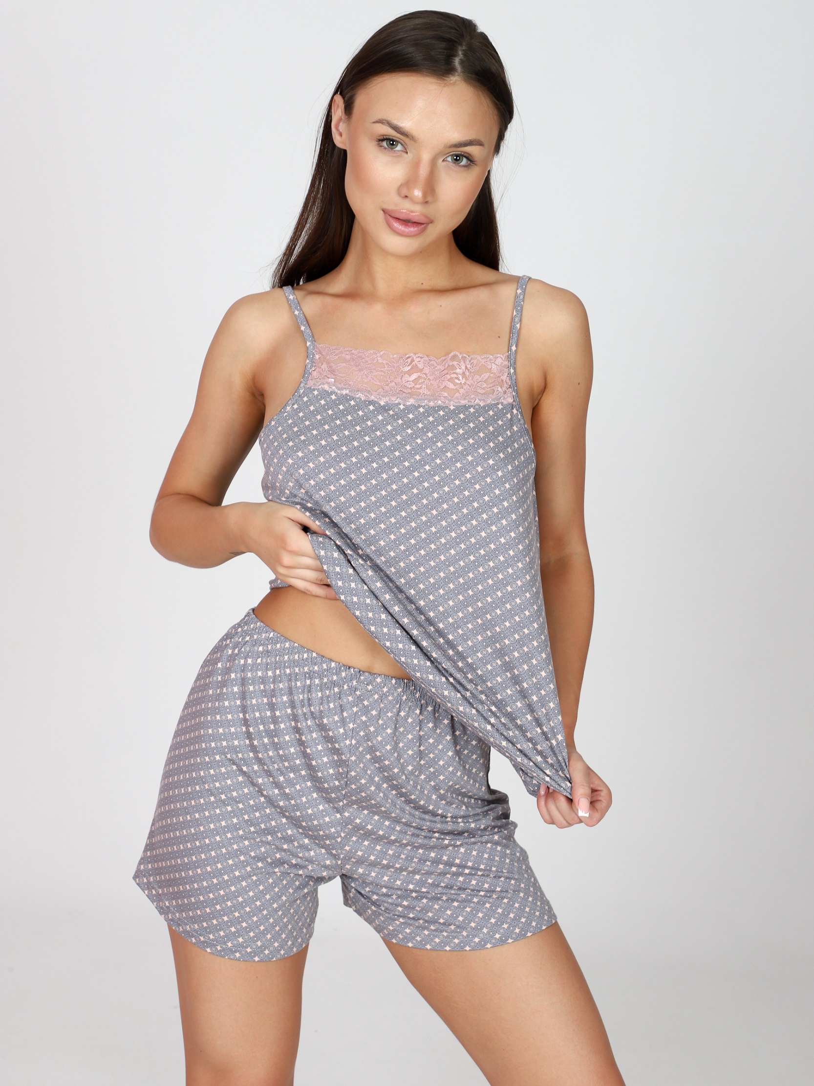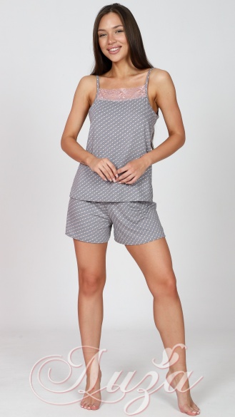 Женская пижама с шортами — это отличный выбор для тех, кто ценит комфорт и стиль в домашней одежде. Пижама состоит из майки и шорт. Топ на тонких бретельках, украшен кружевом. Домашний комплект двойка изготовлен из вискозы. Ткань мягкая, приятная на ощупь и отлично пропускает воздух, что обеспечивает комфорт во время сна. Пижама из вискозы станет не только удобным, но и красивым дополнением вашего гардероба, позволяя вам чувствовать себя комфортно и уверенно в любое время суток. Выбор такой одежды — это забота о себе и своем комфорте, а также возможность расслабиться после долгого дня.