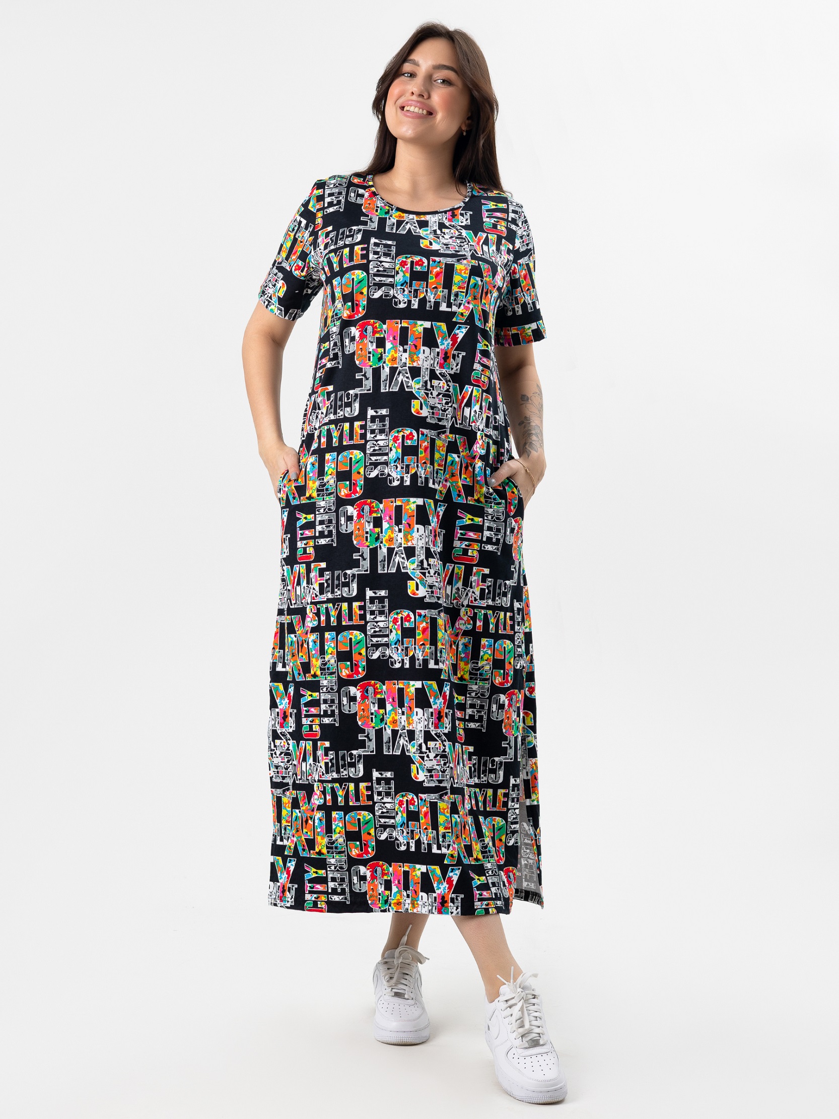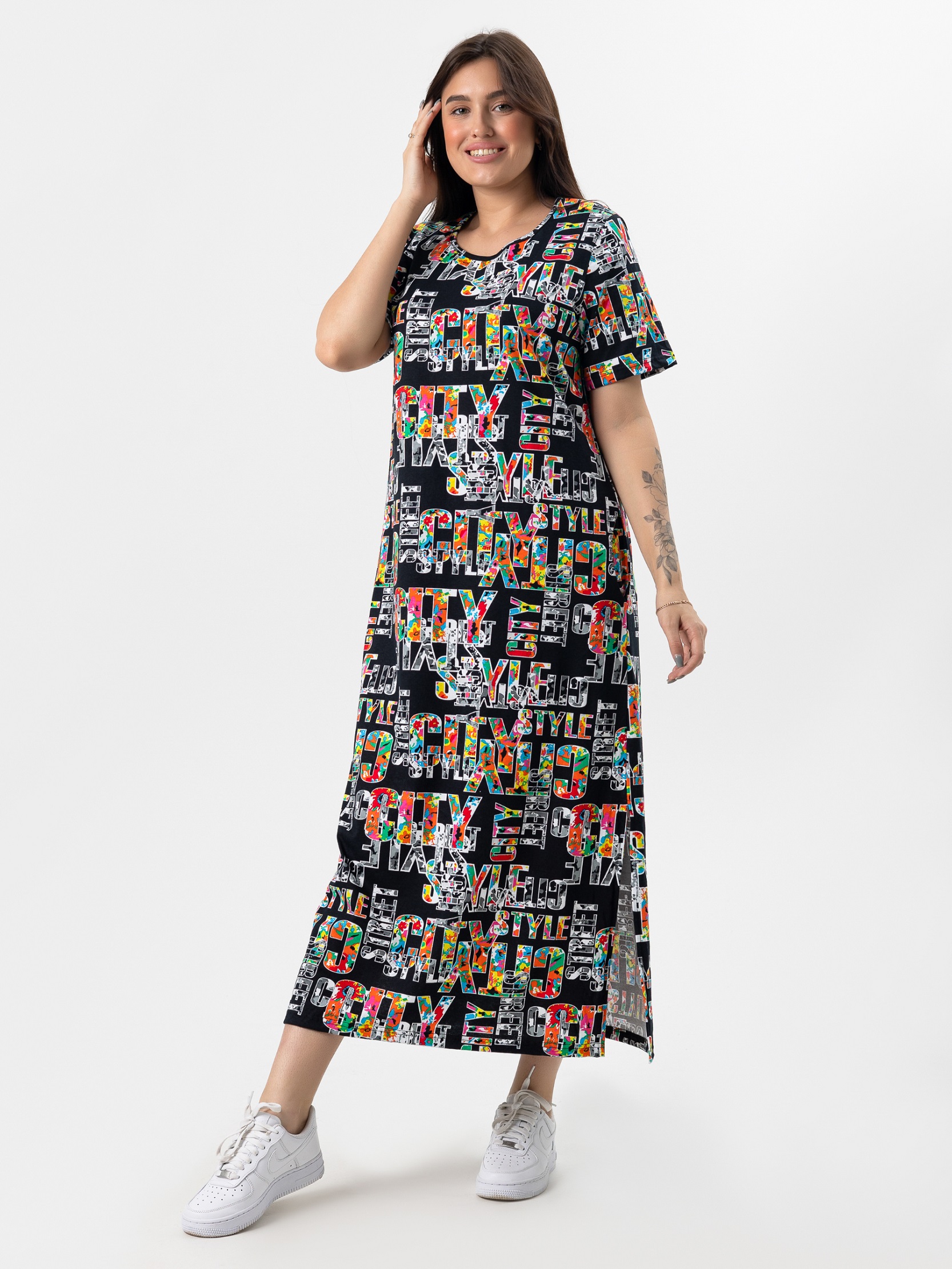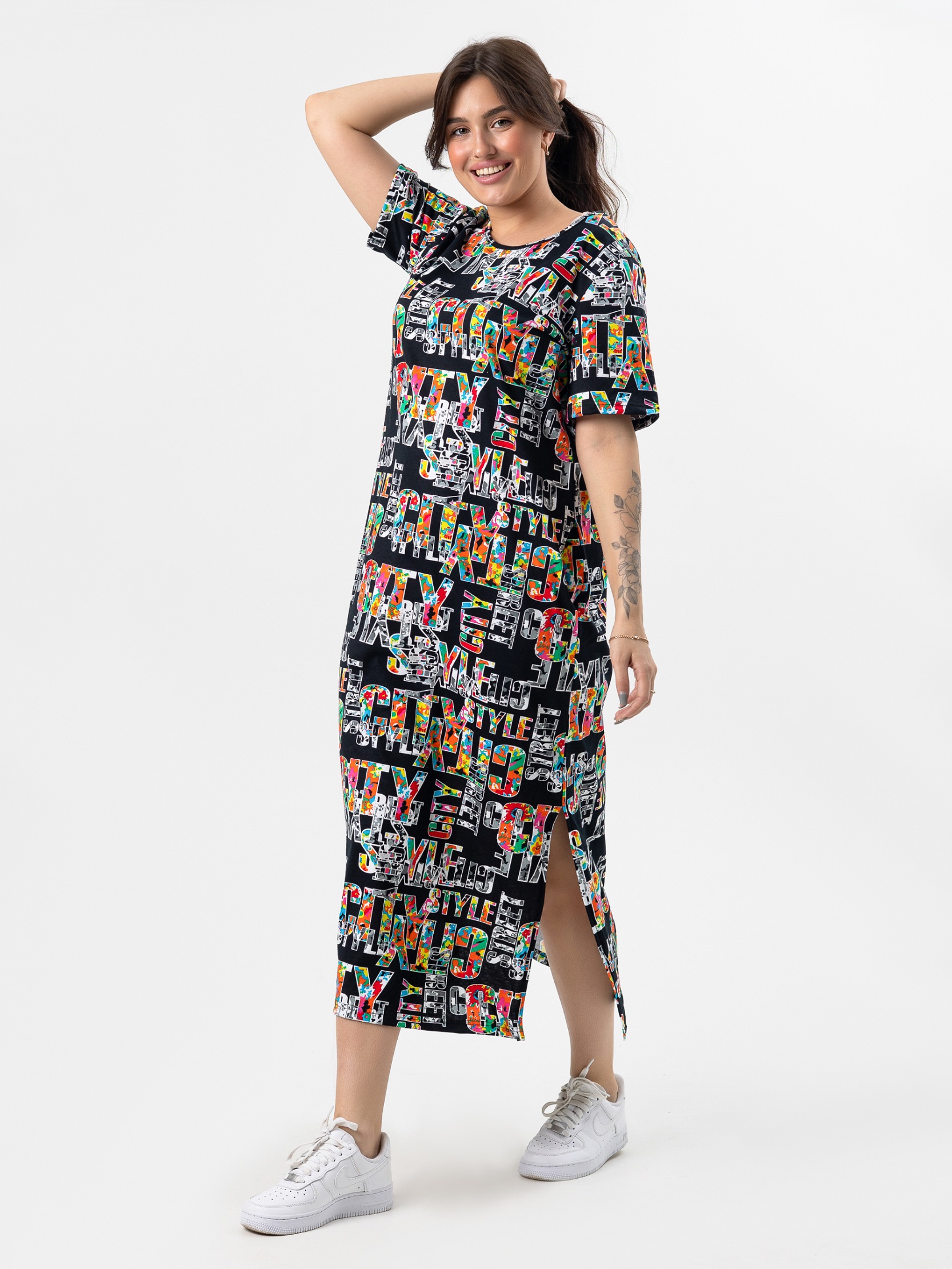 Главная >Каталог >Одежда из трикотажа >Платья трикотажные >Платье Черные Буквы (М-946)