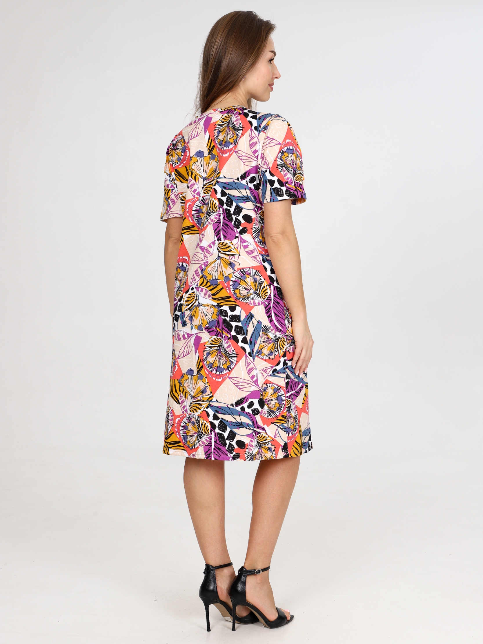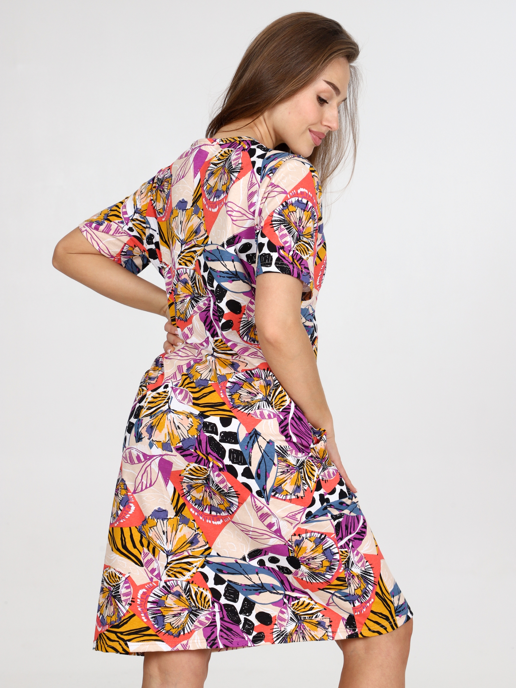 Платье -Туника женское больших размеров изготовлено из натурального мягкого хлопка. Хлопок — это натуральный материал, который хорошо дышит и приятен к телу, что делает его идеальным для повседневной одежды. Домашнее платье полуприлегающего силуэта длиной до колена. Рукав короткий. Изделие имеет два боковых кармана. Туника женская из хлопка подойдет для дома, отдыха, поездок, для повседневной носки. Домашнее платье из кулирки - прекрасный выбор для женщин, ищущих комфортную, свободную и стильную одежду. Благодаря широкому размерному ряду изделие можно подобрать как для стройных, так и для девушек и женщин больших размеров.