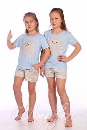 620 P—шт.Домашний костюм голубой "Совушка" (М-424)Размер: 42,44,46,48Опт